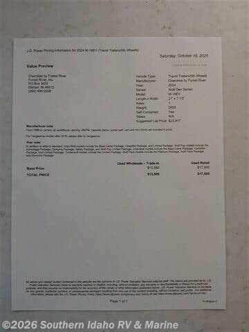 Request More Info on this 2024 Forest River Cherokee Wolf Den 16EVW Offered for sale by Southern Idaho RV & Marine