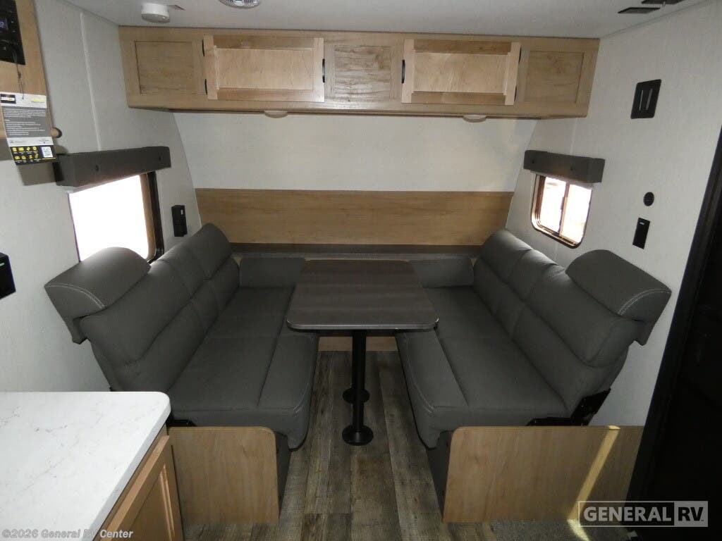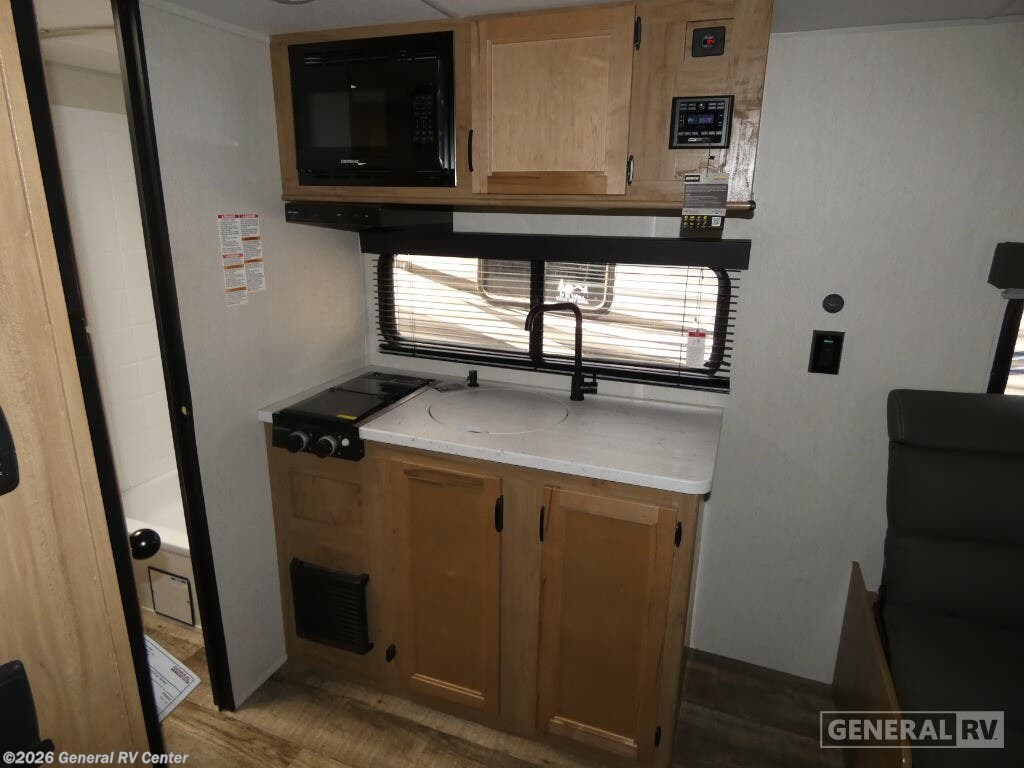 Experience the perfect blend of compact convenience and cozy comfort with the 2024 Forest River Cherokee Wolf Pup 13BC. This travel trailer is designed for those who crave adventure without sacrificing the comforts of home. At just over 18 feet in length, this RV is easy to tow and maneuver, making it ideal for both seasoned travelers and those new to the RV lifestyle. The clever floorplan maximizes space, featuring a front living area with convertible sofas that easily transform into a comfortable sleeping area for two. The removable table provides flexibility, allowing you to dine, work, or relax with ease. The center kitchen is equipped with essential amenities, including a two-burner cooktop and a full-size electric refrigerator, ensuring you have everything you need to whip up delicious meals on the road. The rear bath, complete with a shower curtain for privacy, offers the convenience of a home-like bathroom experience. Outside, the 15-foot powered retractable awning creates an inviting outdoor living space, perfect for enjoying the great outdoors. With ample storage, a stable step entry, and modern features like USB ports, this Wolf Pup is ready to accompany you on your next journey. For more details or to see it in person, visit your nearest General RV dealership.