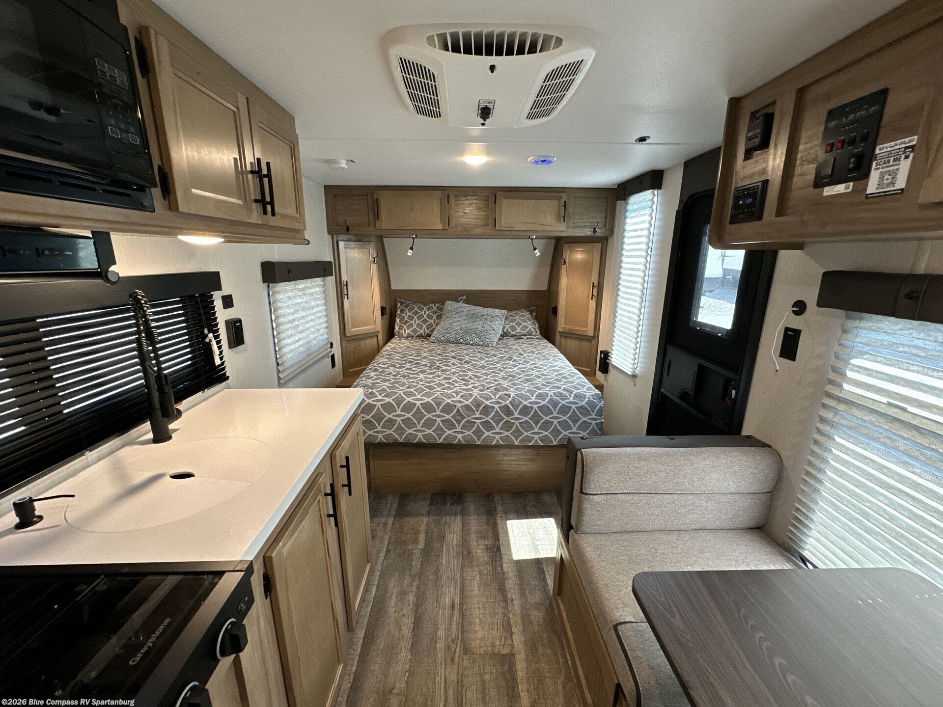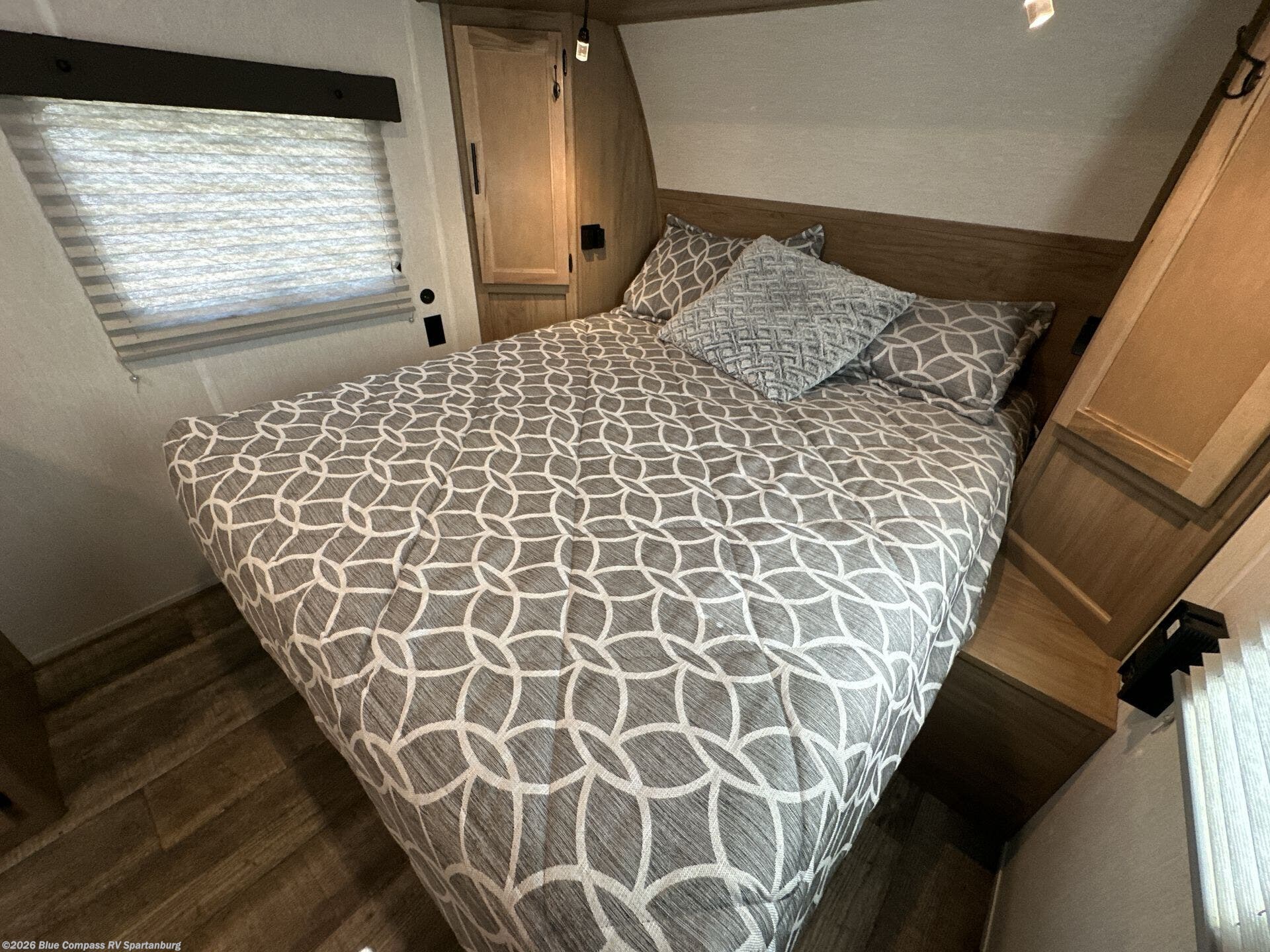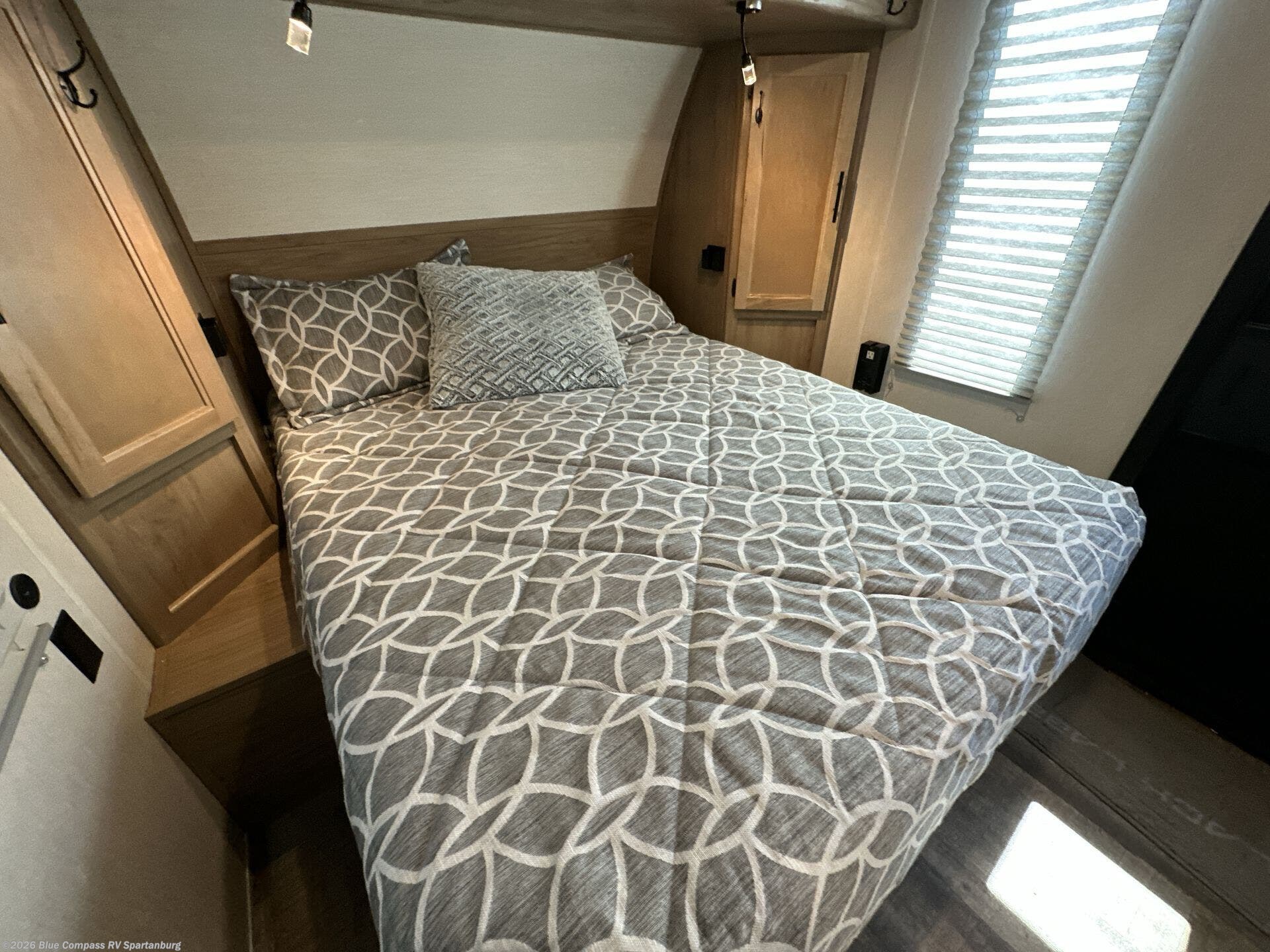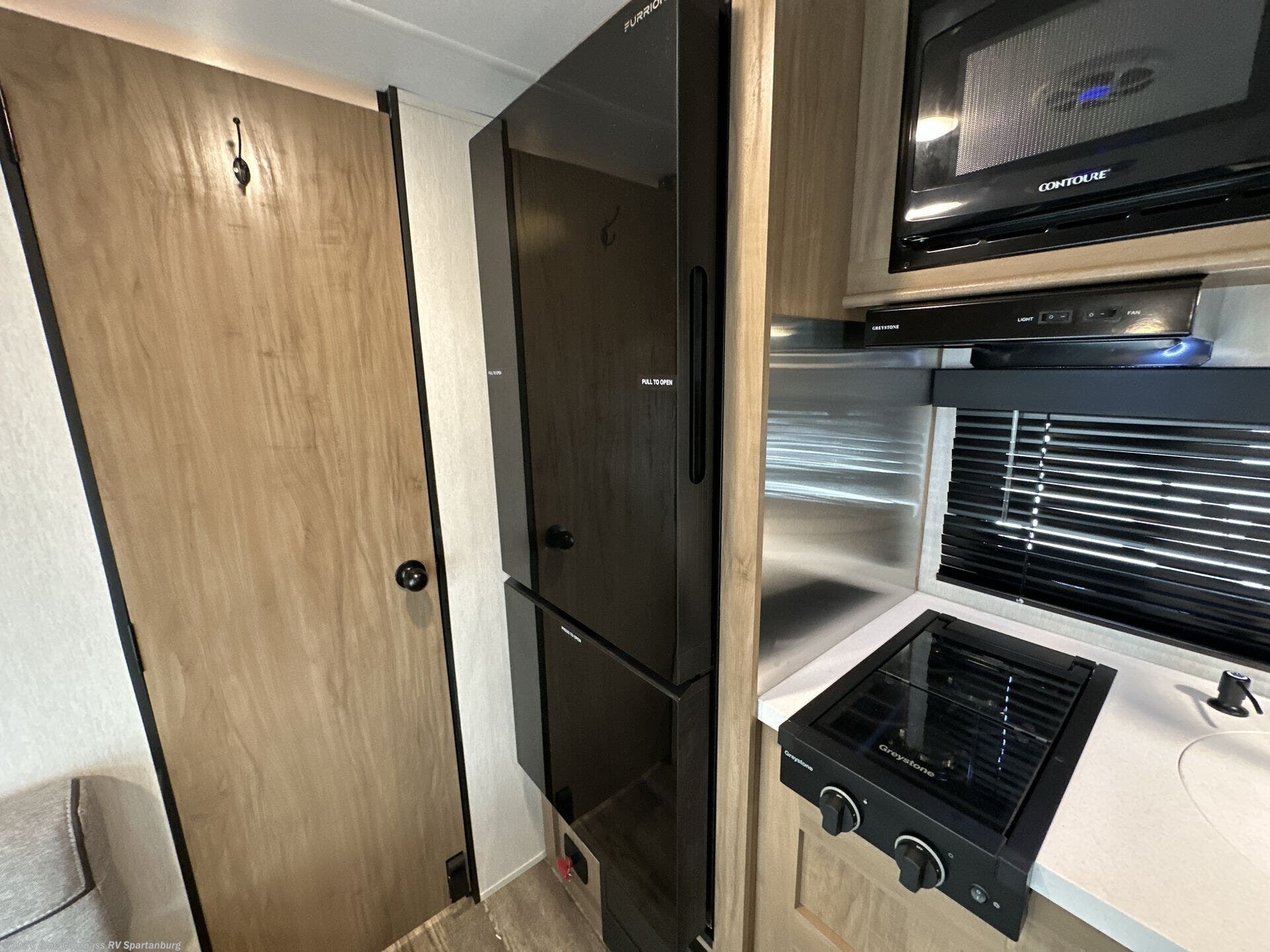 You will love camping in this travel trailer with a front queen bed. Freshen up each morning in the full rear bathroom with the tub/shower, a toilet, and sink. Fill your bellies with the perishables stored in the 11 cu. ft. 12V high efficiency residential refrigerator and cook them on the high output cooktop then enjoy them at the booth dinette. You could even prepare a meal while breathing in some fresh air at the outside mini kitchen while staying protected by the 12' power awning. Easily store all of your outdoor gear in the outside storage area too!