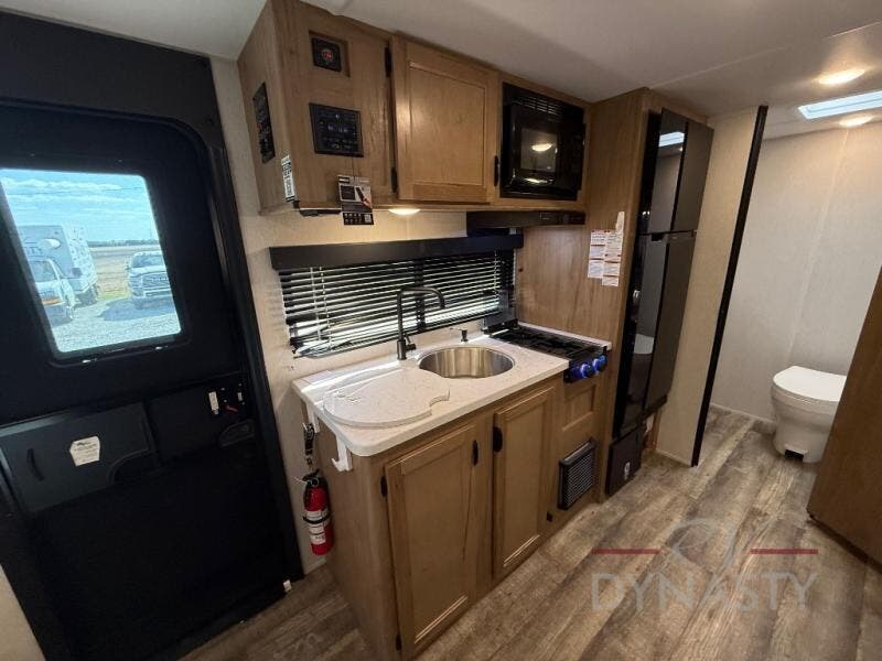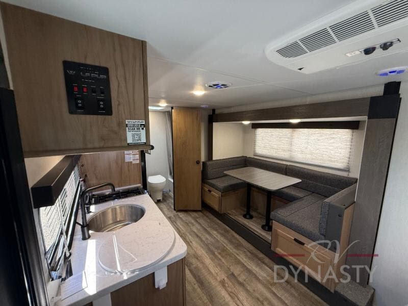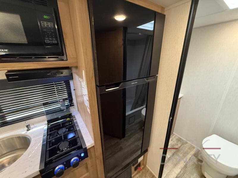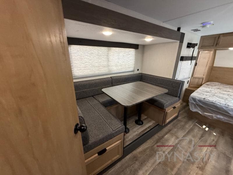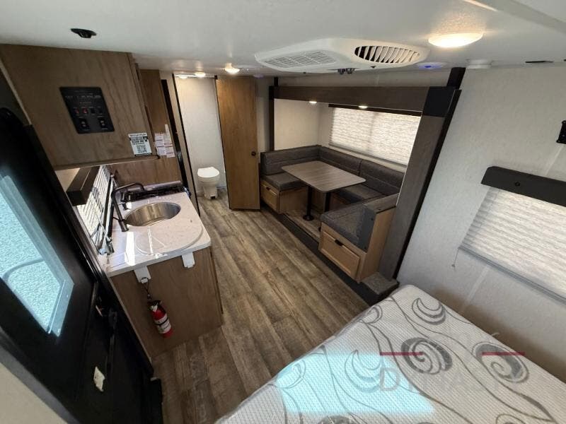 Every camping trip in this travel trailer is sure to be memorable. You will have a front queen bed to sleep on, while your guests take the U-shaped dinette when it's not being used to dine at. The kitchen provides a microwave oven, round single bowl sink, a range for cooking, and a 12 volt residential refrigerator to keep all of your perishables fresh. The rear bath features a tub/shower, toilet, and vanity with sink, plus a medicine cabinet to keep this space tidy.