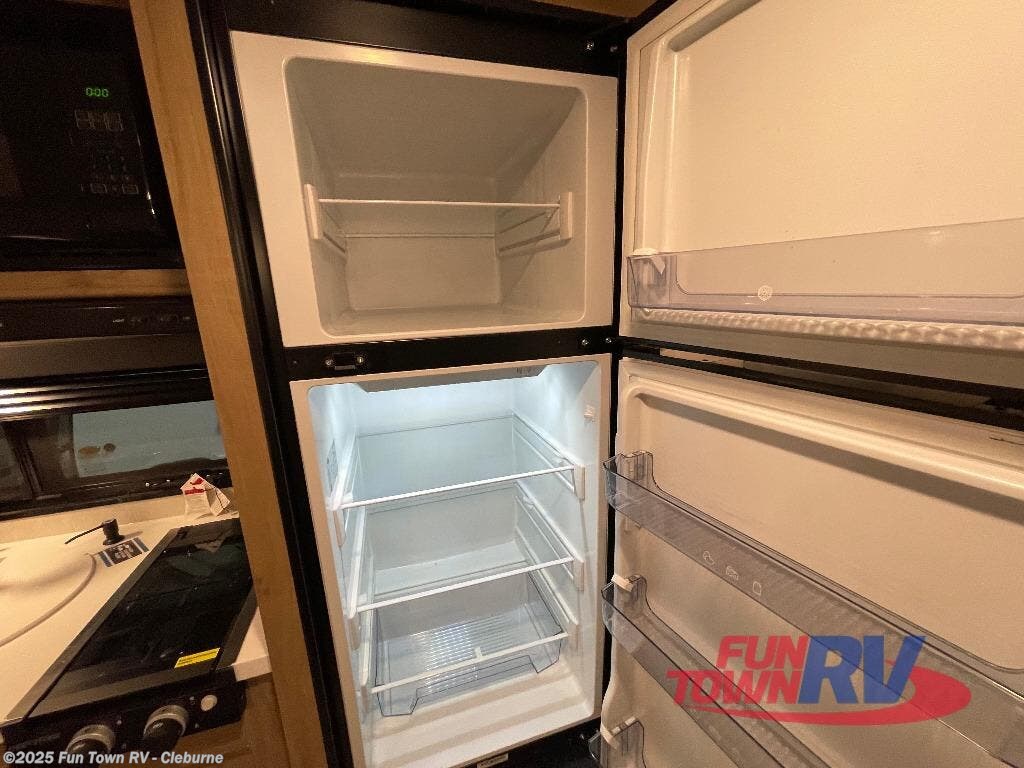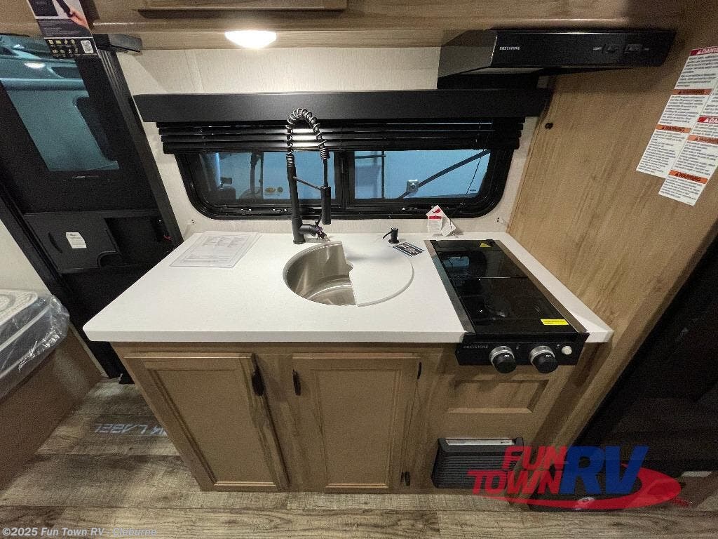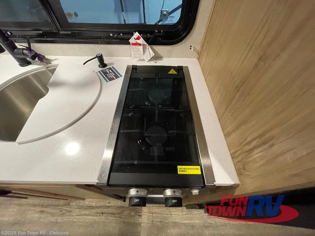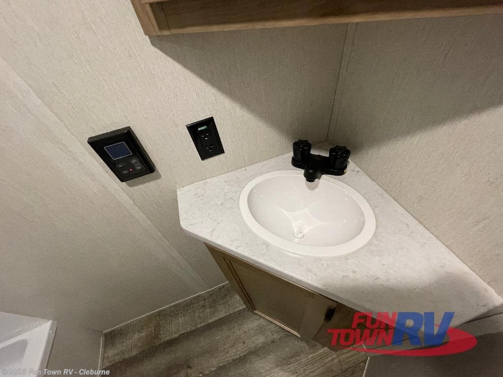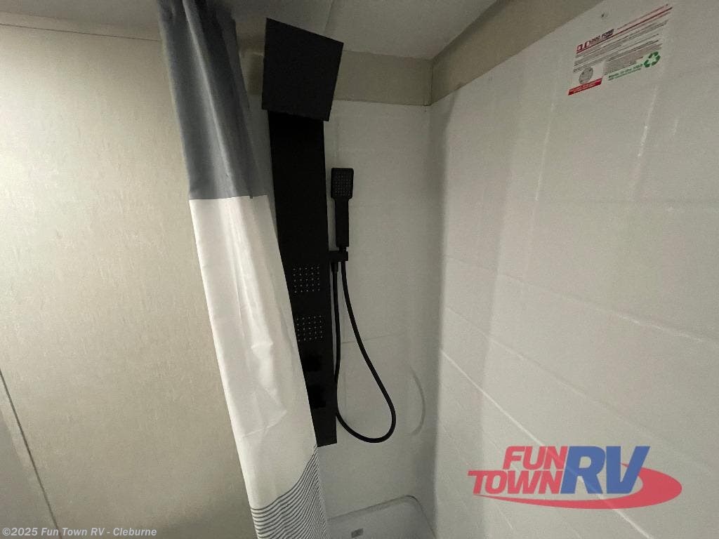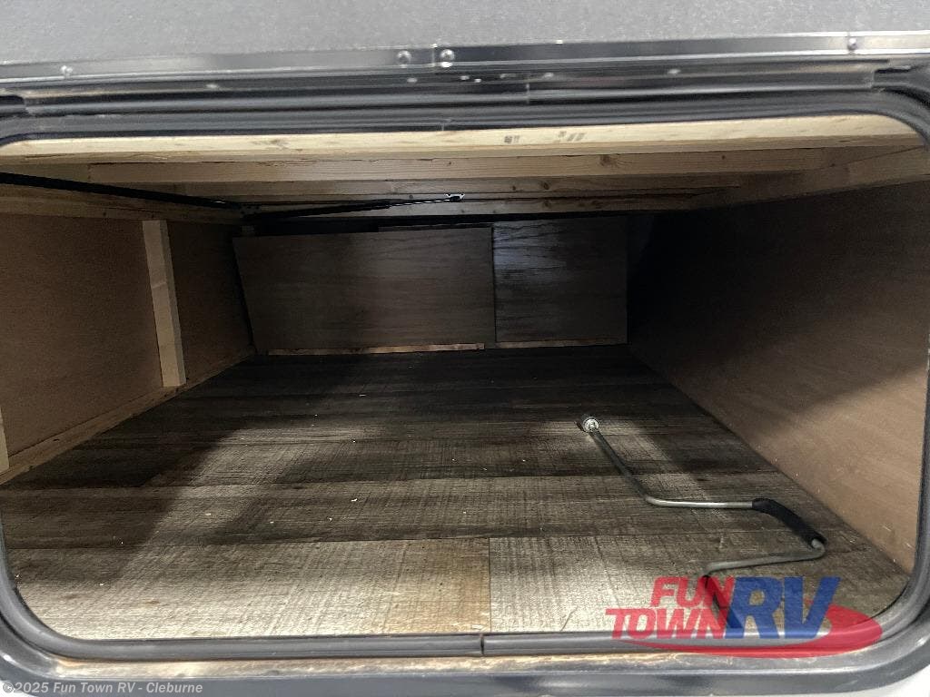 This family travel trailer is ready to head to the campground whenever you are! The kiddos can sleep on the set of double-size bed bunks and you can sleep on the front queen bed, plus the U-shaped dinette slide can also transform into an extra sleeping space when you aren't using it to enjoy a meal. You can prepare your delicious meals on the flushmount range or at the outside mini kitchen and stay protected by the power awning. The exterior not only has outside storage and an outside TV mount, but also features an outside storage plus door for access to the storage space underneath the bottom bunk bed. The rear corner bath allows everyone to stay clean and refreshed while you camp.
