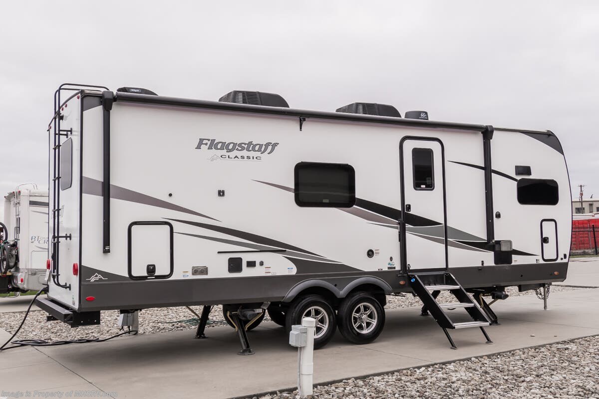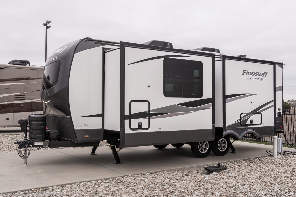 Used Forest River Travel Trailer for sale – 2024 Forest River Flagstaff Classic 826MBR is approximately 29’ 11” feet in length, 2 slides and features LCI stabilizers, aluminum wheels, dual A/C's, patio awning, LED running lights, black tank flush, water filtration system, exterior grill, exterior freezer, ladder, solar, inverter, leather seating, 7 foot ceiling, residential refrigerator, 3 burner gas range with oven, solid surface counter, theater seats and much more. For more details on this unit, our full inventory, brochures, window stickers, videos, photos, and customer reviews, visit or call 800-335-6054 for the Texas location or 334-288-0331 for our Alabama location. At Motor Home Specialist, we DO NOT charge any prep or orientation fees like you will find at other dealerships. Read Thousands upon Thousands of 5-Star Reviews at and See What They Had to Say About Their Experience at Motor Home Specialist. WHY PAY MORE? WHY SETTLE FOR LESS?