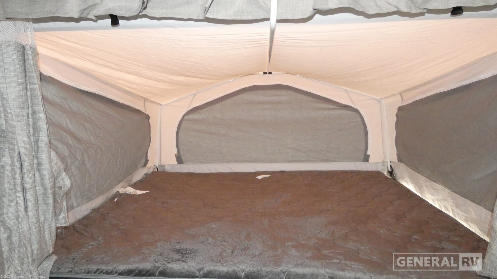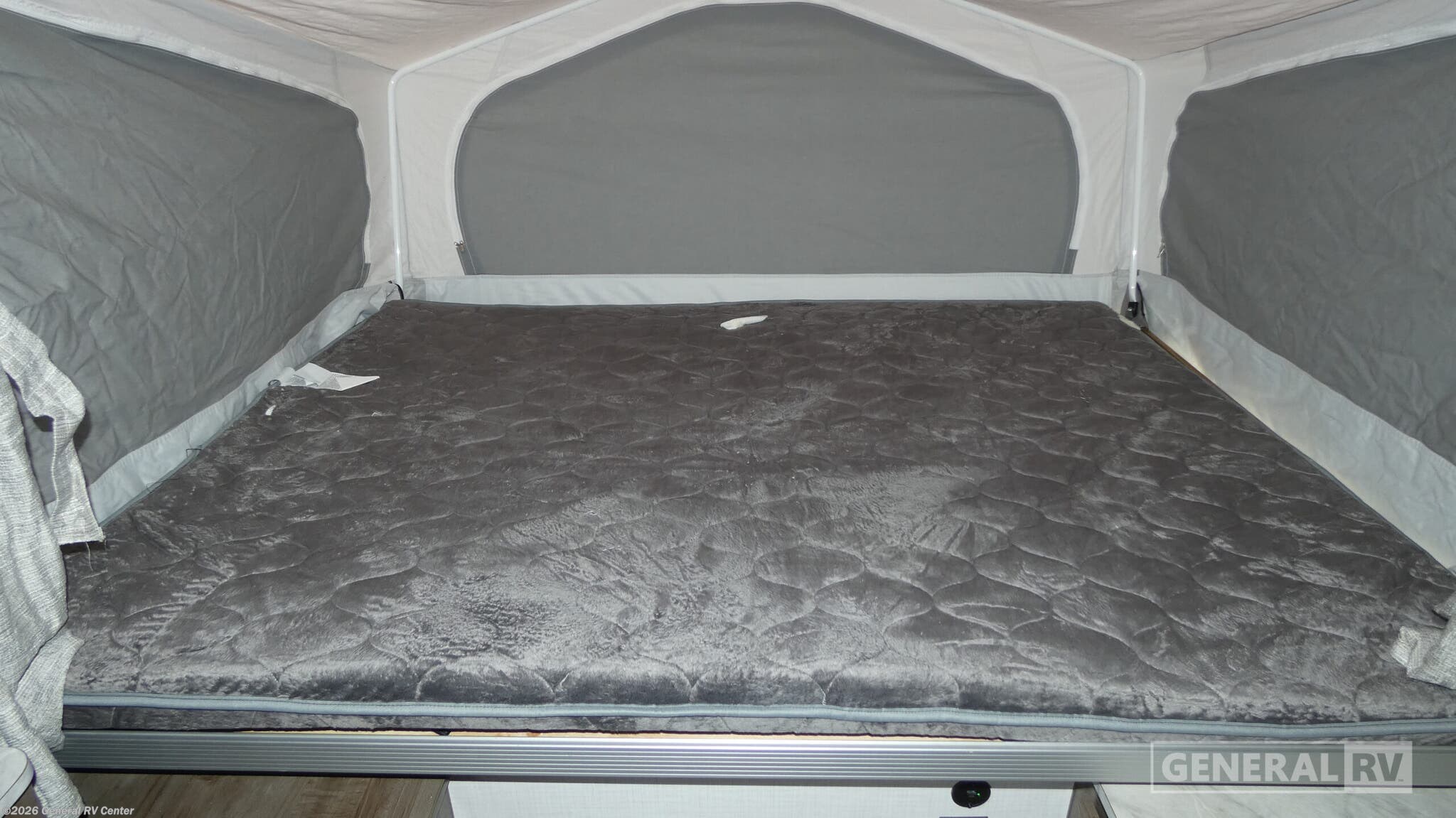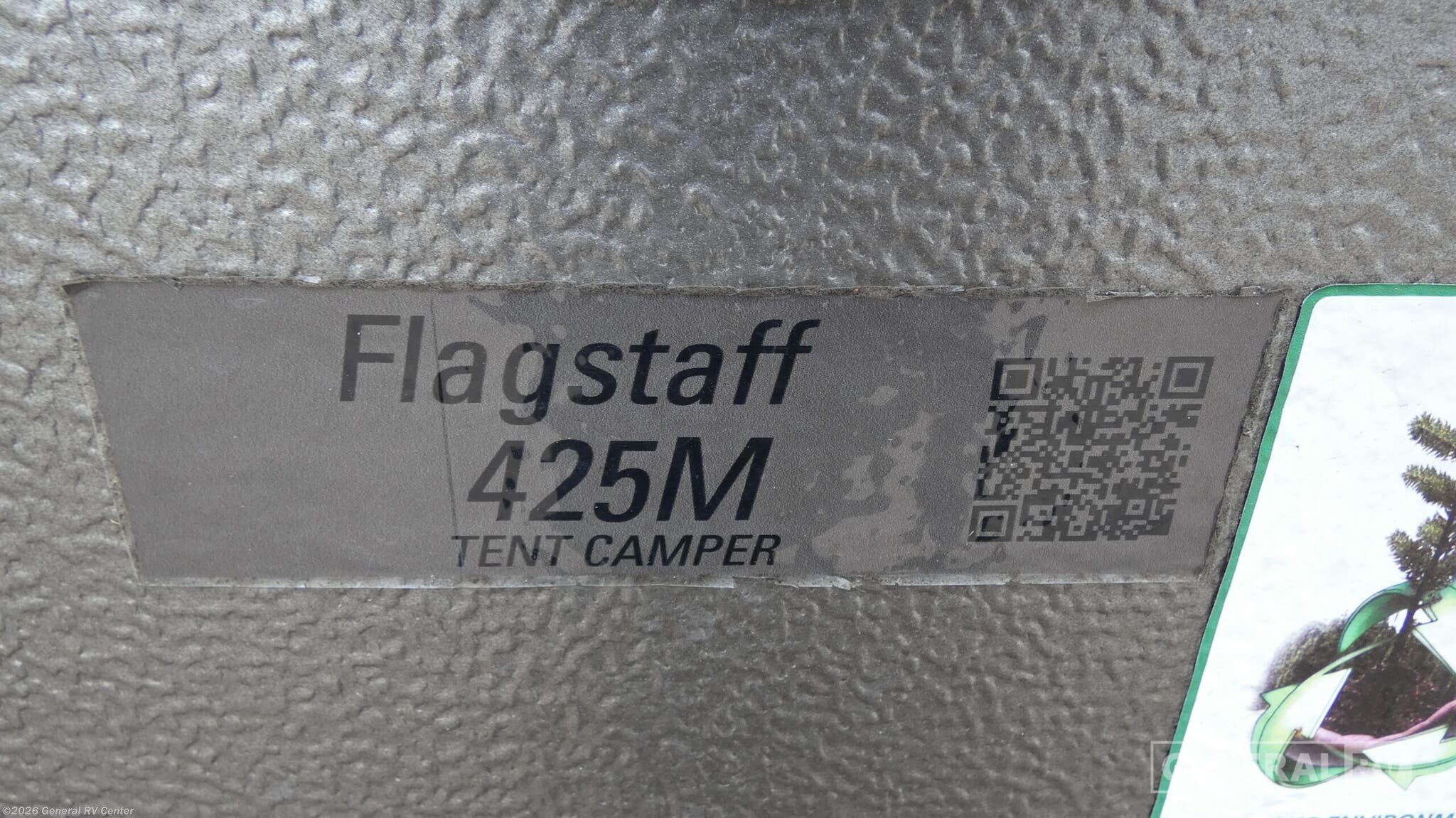 Forest River Flagstaff MAC Series folding pop-up camper 425M highlights: Dinette Slide Two Tent Beds Portable Toilet Hot Water Package Outside Griddle EZ-Reach Storage Trunk The first thing you're going to notice about this Flagstaff MAC Series folding pop-up camper is how spacious the interior is! The booth dinette sits on a single slide, so it can be moved out of the walkway which creates more room for you to just enjoy your time spent indoors. The L-shaped seating also offers some extra seating room while you're inside playing games or relaxing, and you can enjoy views of the campsite with the bay window. This camper also has a great abundance of storage space with interior cabinets, the lift-up storage, exterior storage within the slide, and the EZ-reach storage trunk under the 70" 80" tent end bed. Another feature that you'll find extremely helpful are the USB charging ports. Retire the family tent for one of these Forest River Flagstaff MAC Series folding pop-up campers! Each trip will be one to remember because it will be so easy to load up and head out, yet you will still have what you need to enjoy your time away. The Flagstaff MAC Series includes Vinolon Supreme tenting material, storage nets over the bunks for your belongings, and heated mattress bunk ends for maximum comfort. Each model has a power roof lift and four stabilizer jacks with sand pads for easy set-up, a one-piece screen door to keep the bugs out, and a sleek gray exterior. There are many more features that make the MAC Series campers the perfect camping trailer, like the exterior awning with LED lighting, 20,000 BTU furnace for cool nights, included water filter, plus more!