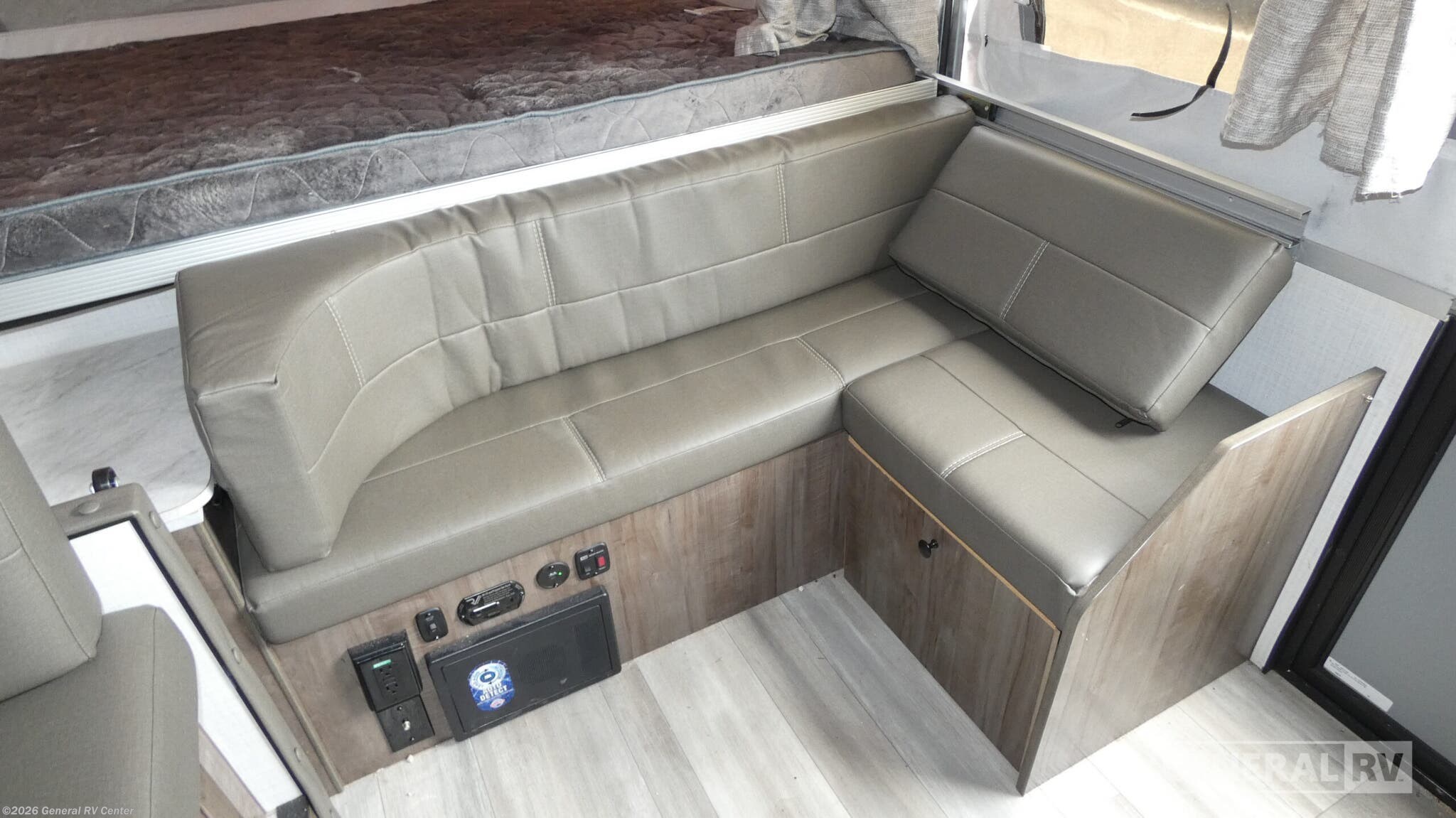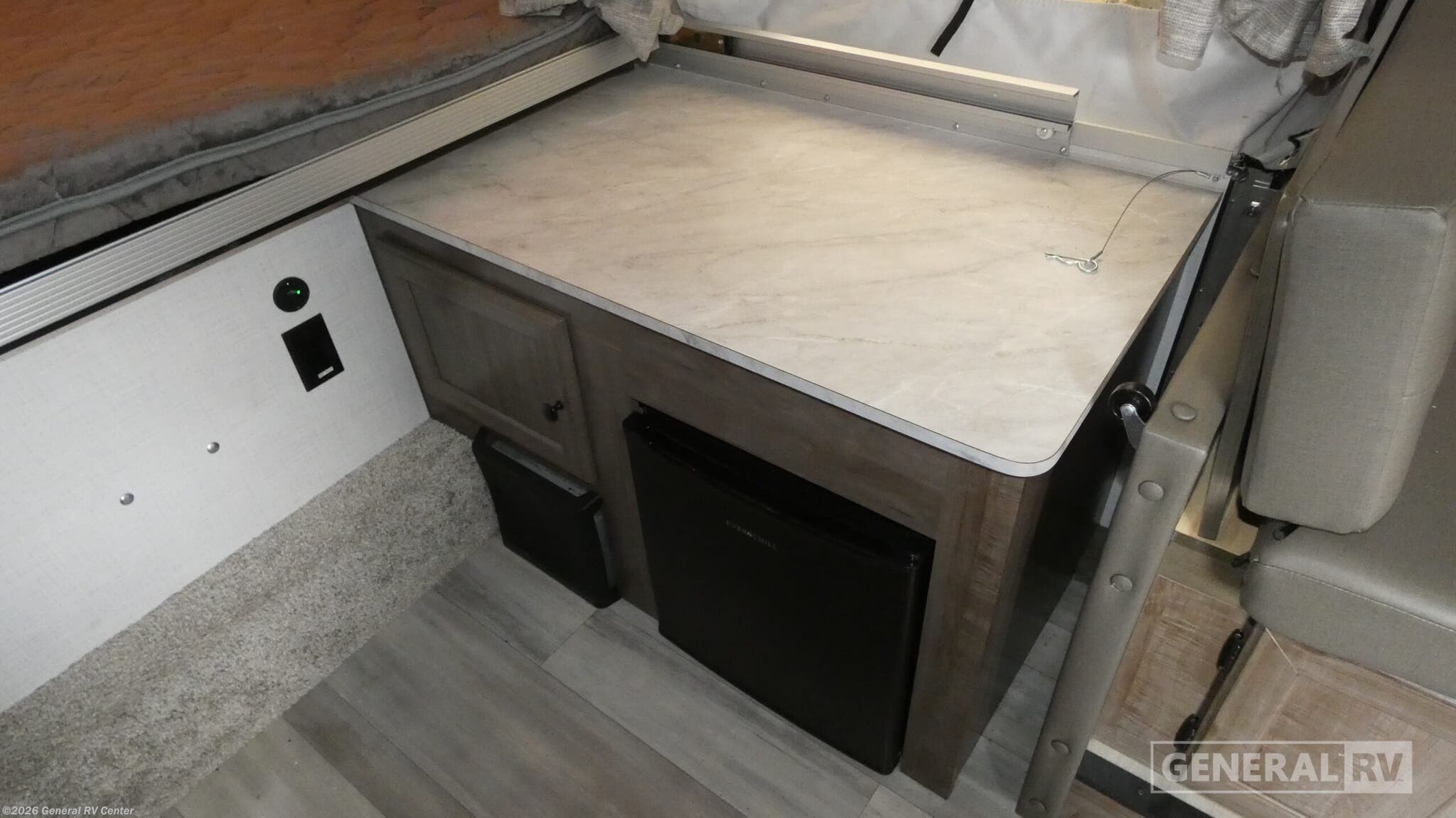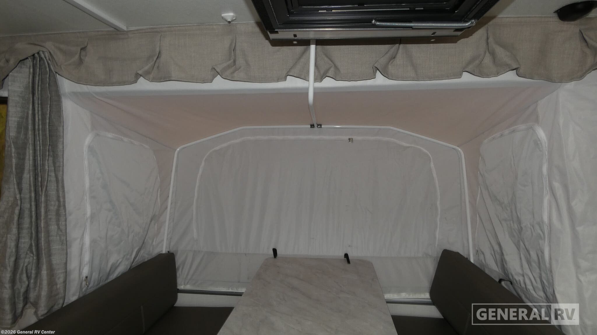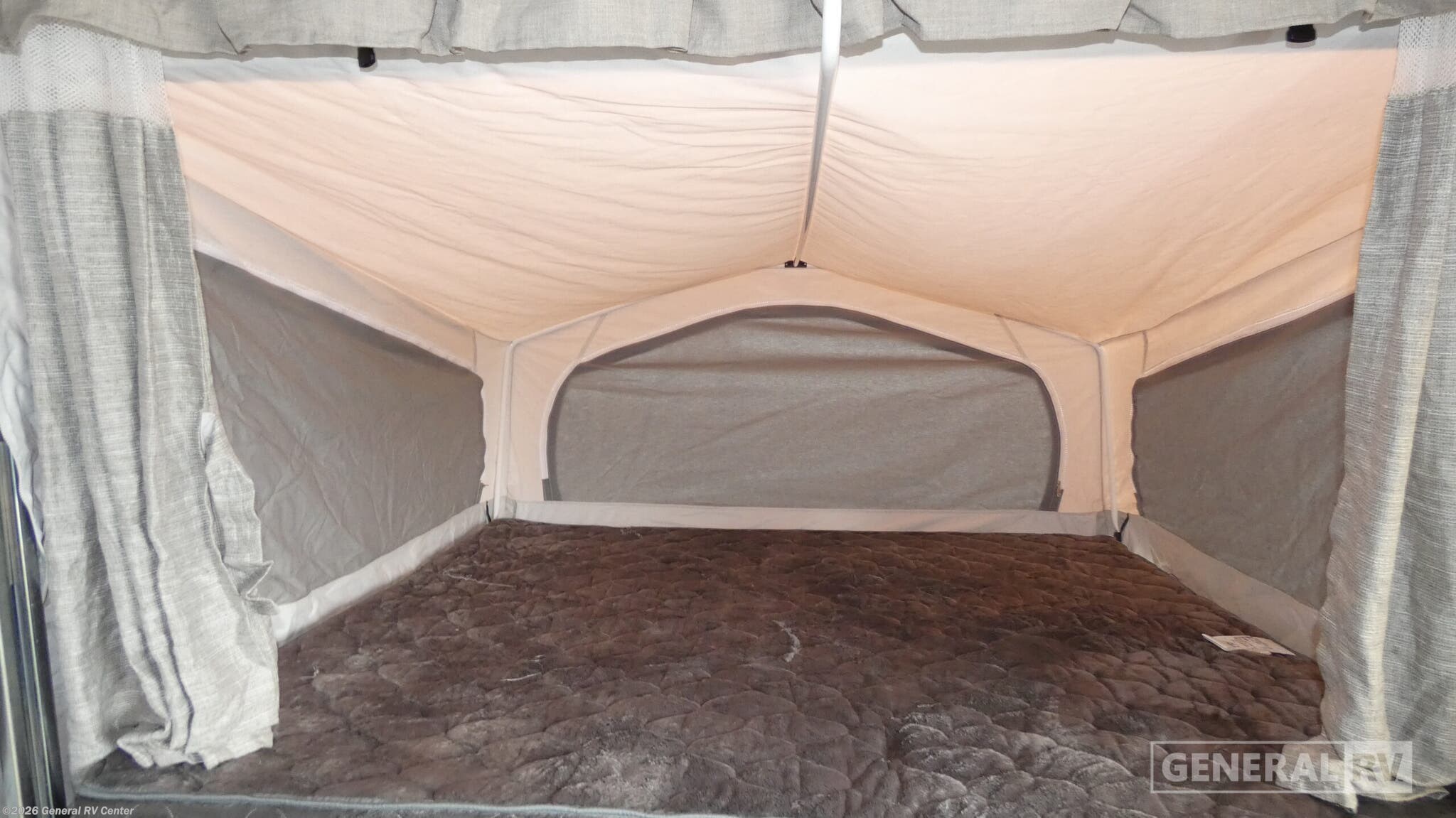 Forest River Flagstaff MAC Series folding pop-up camper 425M highlights: Dinette Slide Two Tent Beds Portable Toilet Hot Water Package Outside Griddle EZ-Reach Storage Trunk The first thing you're going to notice about this Flagstaff MAC Series folding pop-up camper is how spacious the interior is! The booth dinette sits on a single slide, so it can be moved out of the walkway which creates more room for you to just enjoy your time spent indoors. The L-shaped seating also offers some extra seating room while you're inside playing games or relaxing, and you can enjoy views of the campsite with the bay window. This camper also has a great abundance of storage space with interior cabinets, the lift-up storage, exterior storage within the slide, and the EZ-reach storage trunk under the 70" 80" tent end bed. Another feature that you'll find extremely helpful are the USB charging ports. Retire the family tent for one of these Forest River Flagstaff MAC Series folding pop-up campers! Each trip will be one to remember because it will be so easy to load up and head out, yet you will still have what you need to enjoy your time away. The Flagstaff MAC Series includes Vinolon Supreme tenting material, storage nets over the bunks for your belongings, and heated mattress bunk ends for maximum comfort. Each model has a power roof lift and four stabilizer jacks with sand pads for easy set-up, a one-piece screen door to keep the bugs out, and a sleek gray exterior. There are many more features that make the MAC Series campers the perfect camping trailer, like the exterior awning with LED lighting, 20,000 BTU furnace for cool nights, included water filter, plus more!