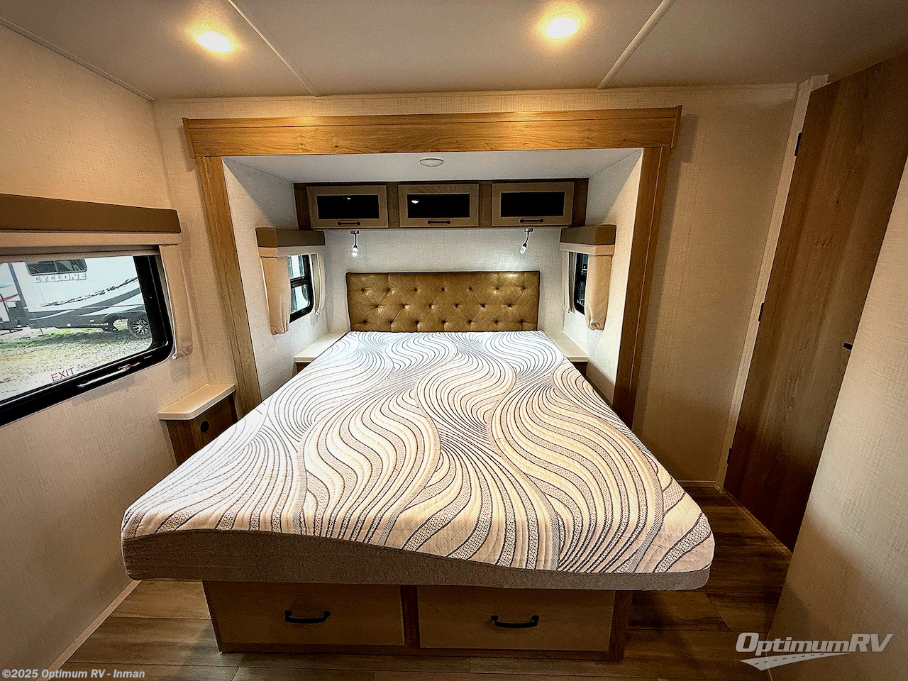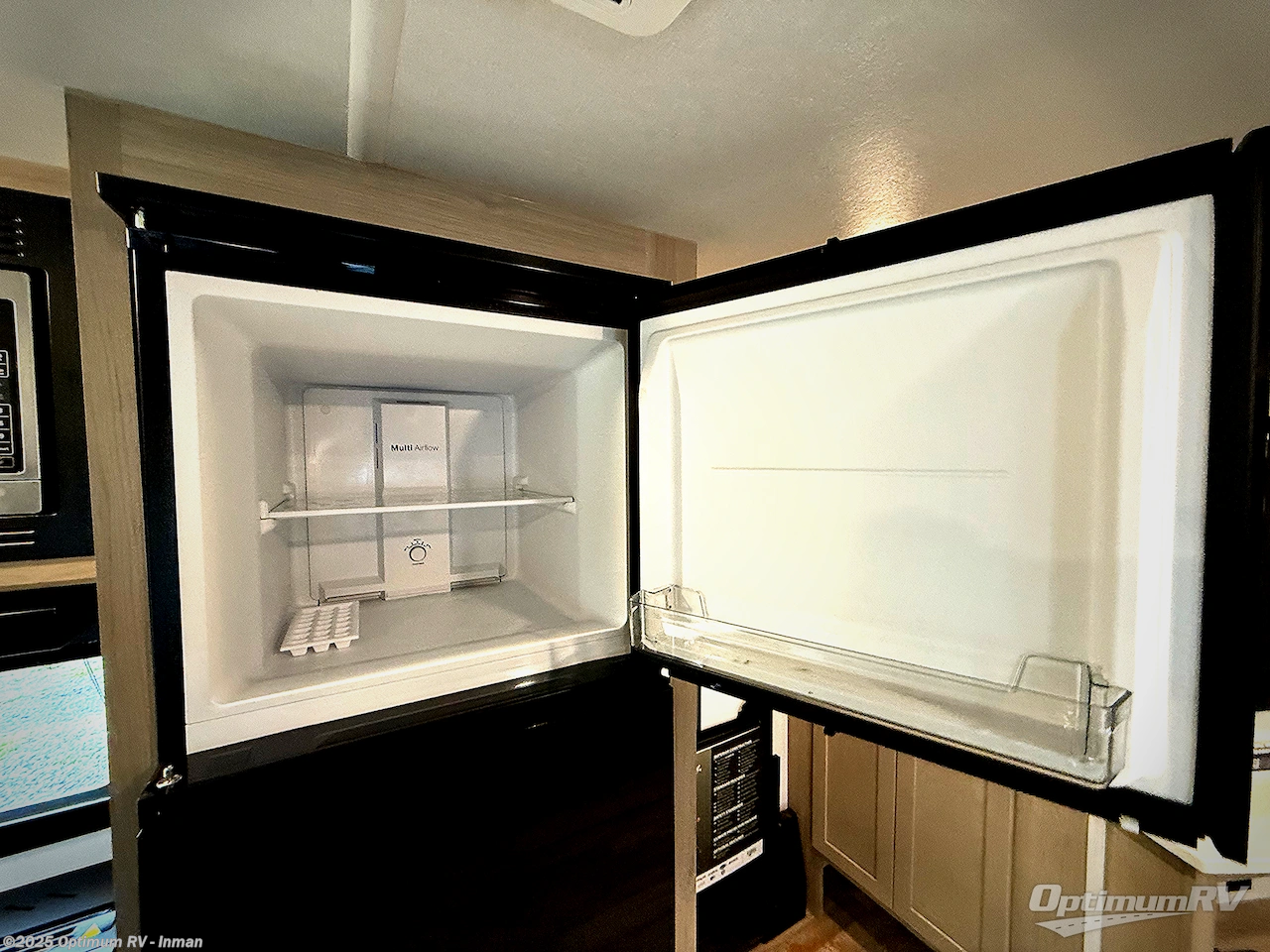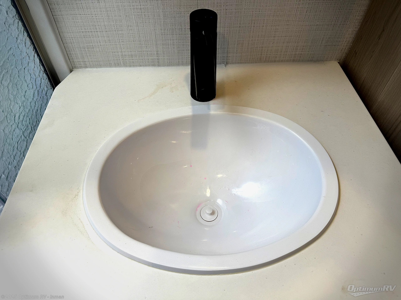 This is the perfect couples trailer with a spacious living and kitchen area and a rear bedroom which includes the second exterior entry/exit door! The bedroom also provides a slide out queen bed, a wardrobe and an optional TV, plus windows for great views and access to the double entry bathroom. The front kitchen gives the cook counter space and cabinetry for dishes and such, plus all the appliances needed to make warm meals and store leftovers. You can dine at the booth dinette, relax on the 67" theater seating and watch the Smart TV while enjoying the fireplace.