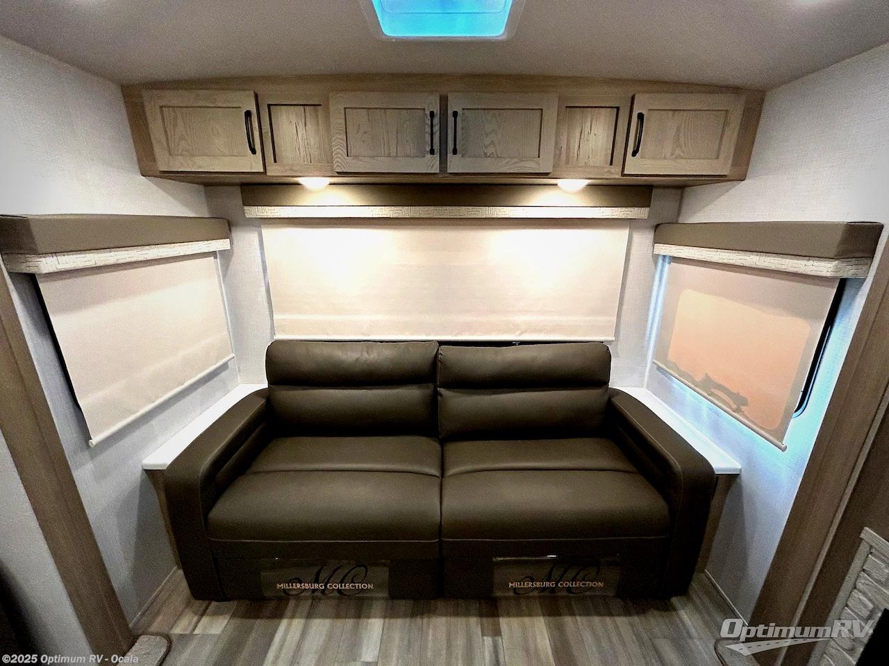 If you enjoy entertaining friends while camping, this trailer offers seating for nine in the combined living and kitchen area on the hide-a-bed sofa, the theater seats and the booth dinette. Everyone can visit, watch the Smart TV and enjoy the fireplace all while the cook is preparing snacks in the kitchen with full amenities. The full bathroom has two entries for convenience, and the front bedroom offers a queen bed slide for more floor space or choose a king option, plus plenty of storage. And the two 11' awnings offer an outdoor living area after you add your camping chairs.