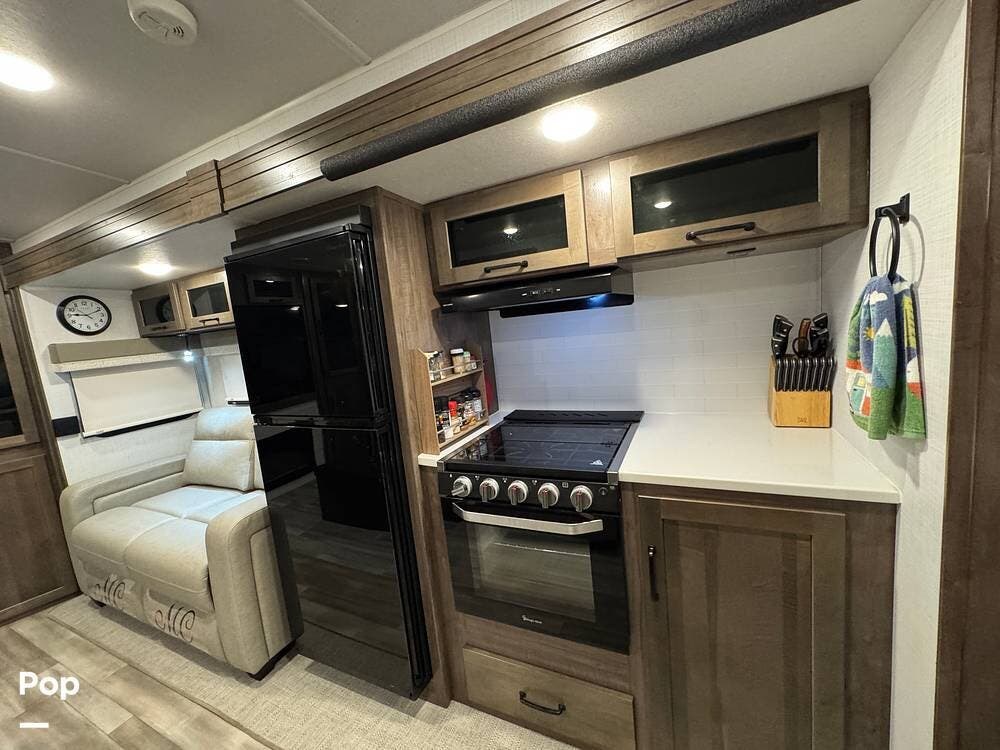Designed for both weekend getaways and extended stays, this beautifully equipped unit features three spacious slideouts that create an open rear living layout with residential-style comfort.