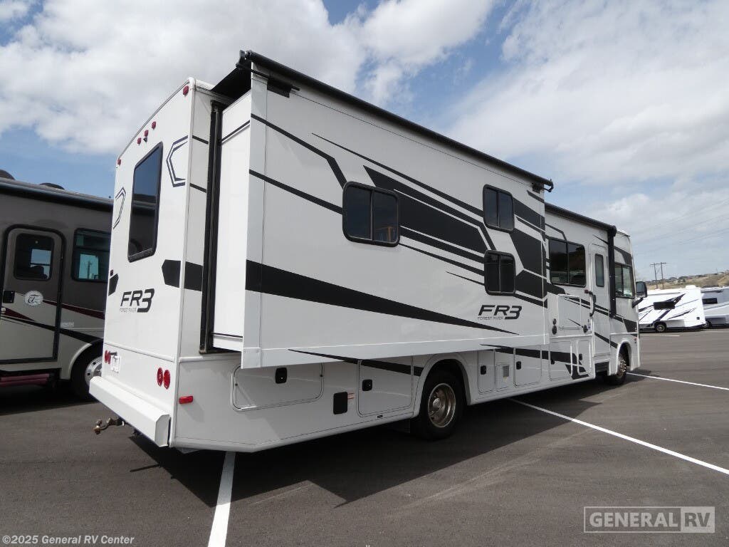 Forest River FR3 Class A gas motorhome 32DS highlights: Two Sleeper Sofas Full Bathroom Bunk LED TV Power Cab Bunk Exterior 32" 12V TV Two Countertop Extensions As you travel in this FR3 Class A gas motorhome, you can enjoy the molded ABS ergonomic cockpit dash with a Sony 9.6" dash radio, a multi-port USB/12V charging station, and a passenger flip-over work station. At night, you will easily fall asleep on your own king-size bed in the rear bedroom which includes a 32" LED 12V TV and plenty of wardrobe storage for all your things, and near by there is a jackknife sleeper sofa with bunk above for your family and friends. The power bunk over the cab also offers a fun place for the grandkids to sleep. When you aren't outside enjoying the exterior 32" LED 12V TV and entertainment center under the power awning, you can watch the 40" LED 12V TV inside while sitting on the living room jackknife sleeper sofa or dining at the wrap-around booth dinette. With each FR3 Class A gas motorhome by Forest River, you will find an easy-to-drive coach with a spacious interior allowing you to gather with friends and family with convenience and style found throughout! Each is built with vacuum-bonded construction, a one-piece fiberglass roof with extended rain spouts, a steel firewall and A-pillar extension, Bi-LED headlamps and lower LED fog lights, and grey Rotocast storage boxes with drains, plus more! Inside, you will enjoy black hardware, appliances, plumbing fixtures, and a glass shower door frame. Plus, you will also find a stainless steel kitchen sink with a bamboo cutting board and roll-up dryer, heavy-duty full-extension ball bearing drawer guides, dual-access dinette storage with doors, and nightstands with charging stations to keep your cellphones ready for whatever is next. Make your selection today!
