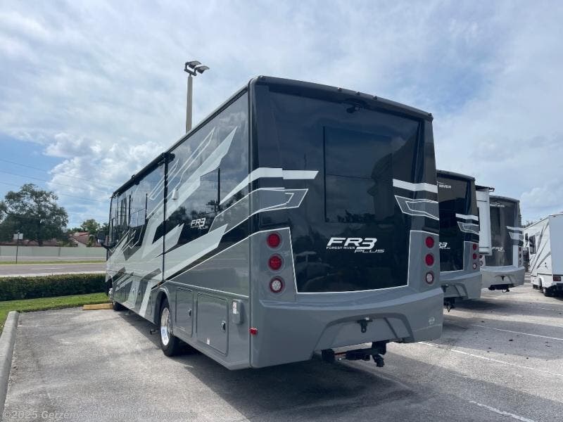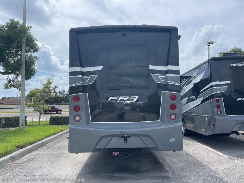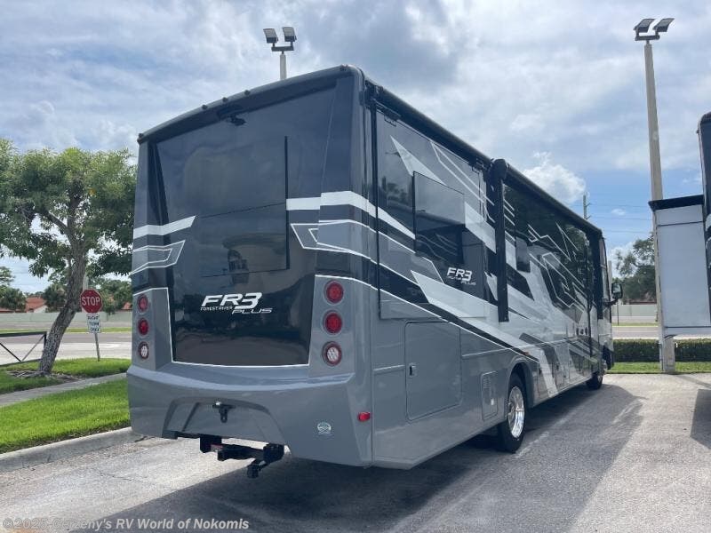 With each FR3 Class A gas motorhome by Forest River, you will find an easy-to-drive coach with a spacious interior allowing you to gather with friends and family with convenience and style found throughout! Each is built with vacuum-bonded construction, a one-piece fiberglass roof with extended rain spouts, a steel firewall and A-pillar extension, Bi-LED headlamps and lower LED fog lights, and grey Rotocast storage boxes with drains. Inside, you will enjoy black hardware, appliances, plumbing fixtures, and a glass shower door frame. You will also find a stainless steel kitchen sink with a bamboo cutting board and roll-up dryer, heavy-duty full-extension ball bearing drawer guides, dual-access dinette storage with doors, and nightstands with charging stations to keep your cellphones ready for whatever is next. Make your selection today!