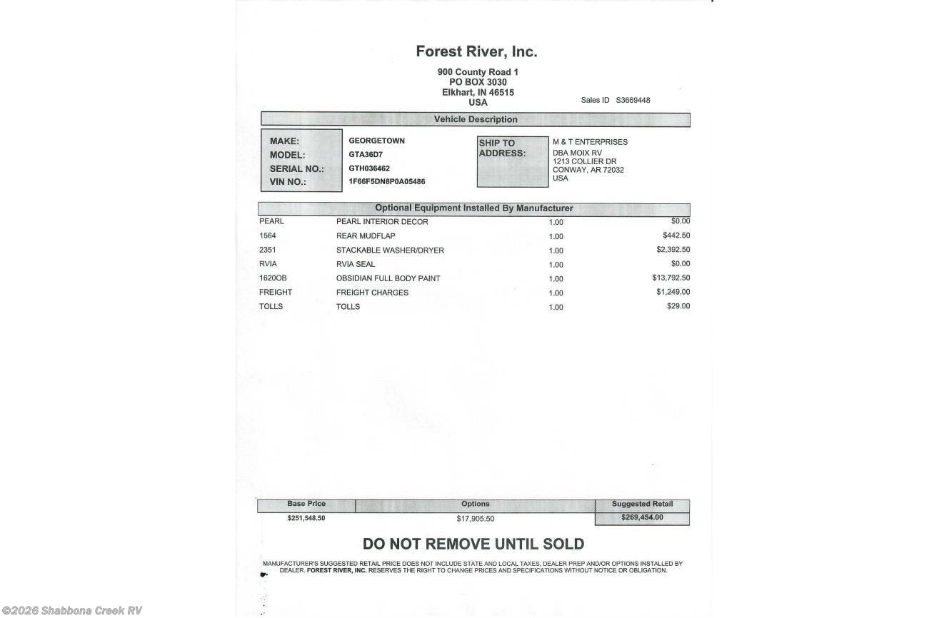 Request More Info on this 2024 Forest River Georgetown 36D7 * Offered for sale by Shabbona Creek RV