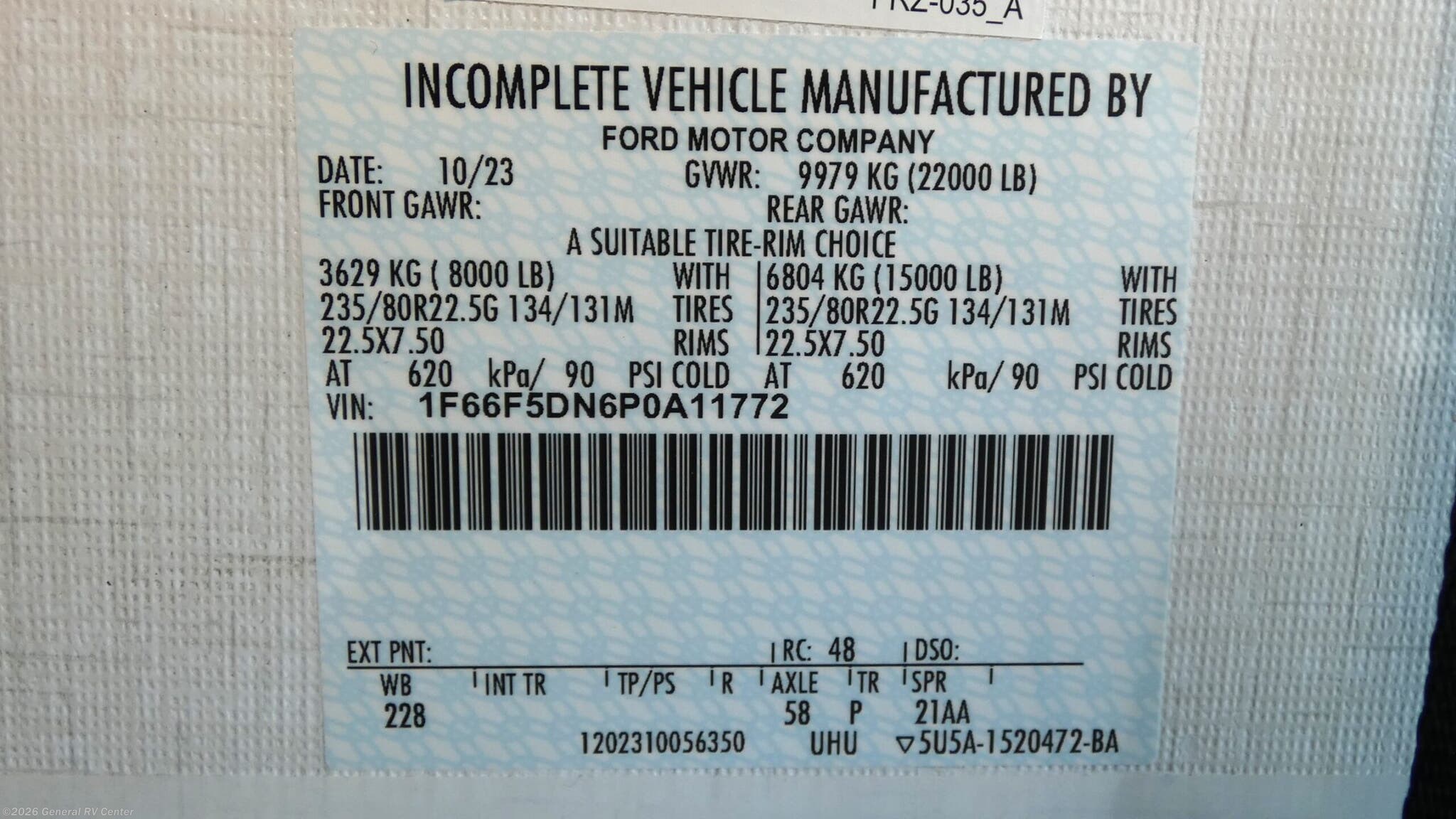 - VIN1F66F5DN6P0A11772