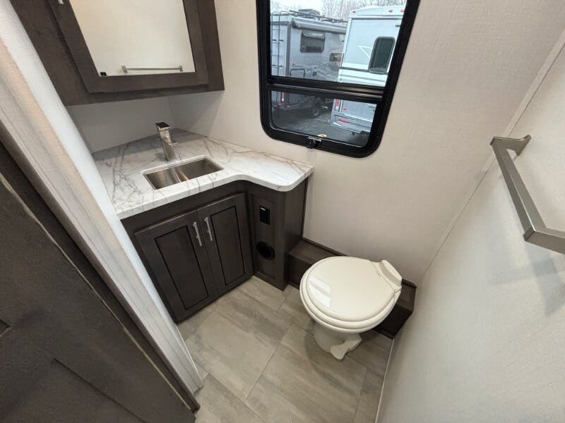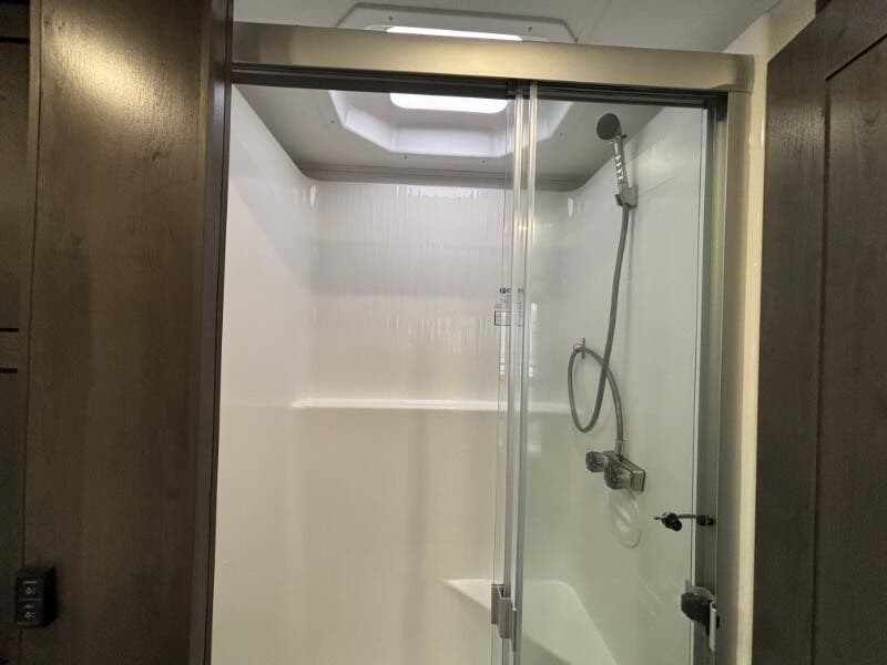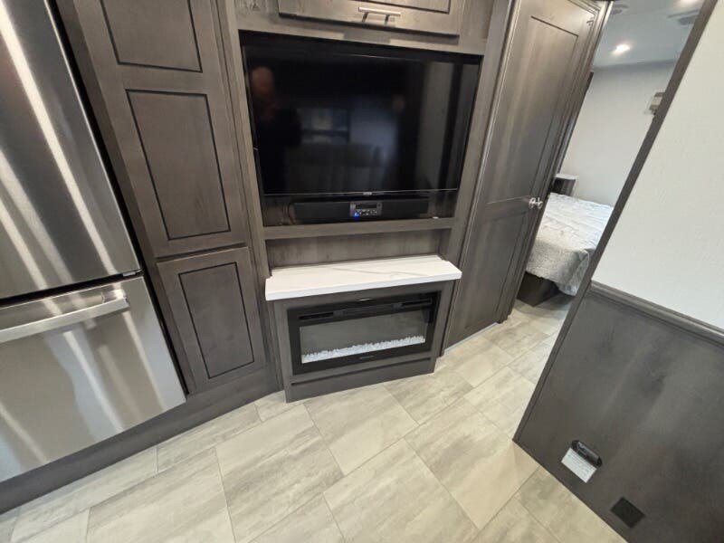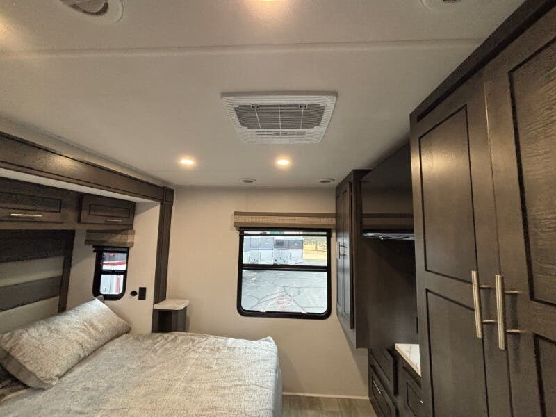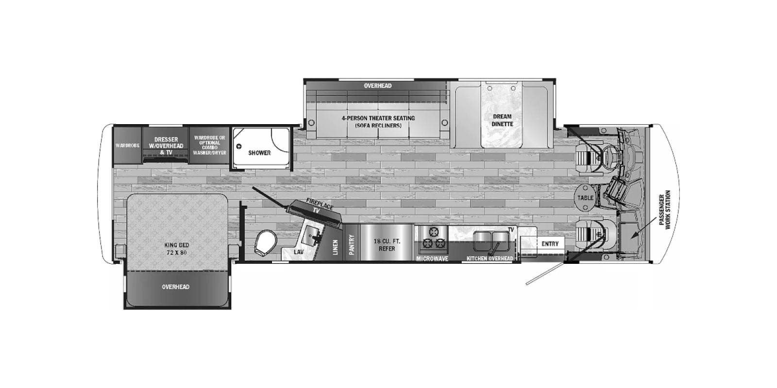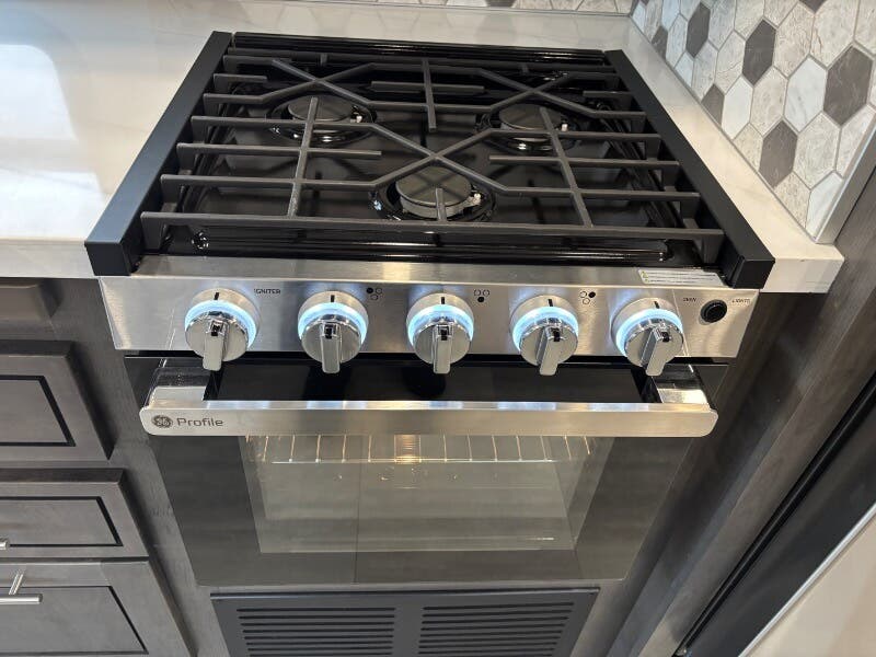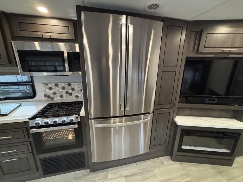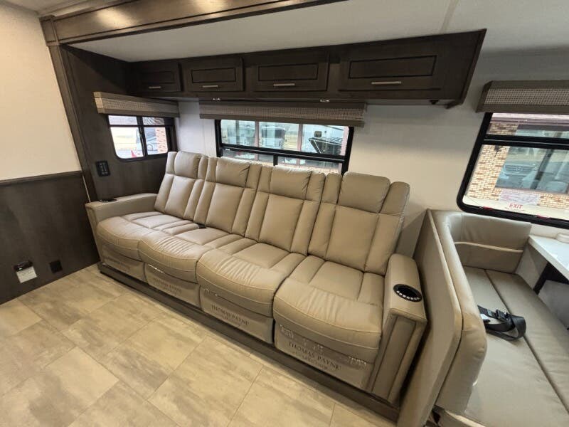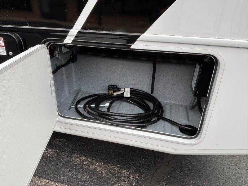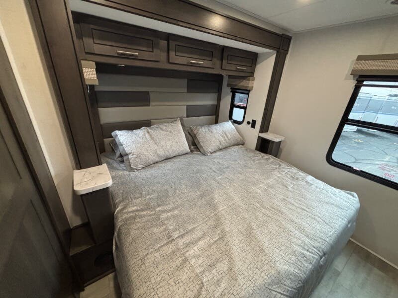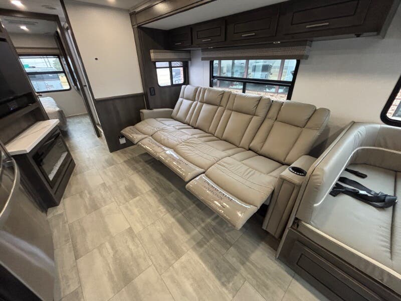 Features Include: Power Drivers Seat, Frameless Windows, Maxx Fan, 110v GFCI Outlets, 18-inch Oven, Winegard 360 Plus, WiFi 4G LTE Prep, Satellite Prep, Sleeping, King Bed, 7-inch Coil Mattress, CPAP Prep, Washer Dryer Prep, Bathroom, Medicine Cabinet, Exhaust Fan, Mechanicals, 24.5-Gal LP Tank, 6.0 Yamaha Generator, 50-Amp Service Cord, Auto Transfer Switch, Chrome Package, Pass Through Storage, Slide-out Awnings