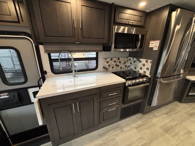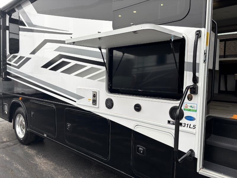 The 2024 Forest River Georgetown 5 Series GT5 31L5 is a sophisticated and feature-rich Class A RV designed to maximize comfort and adventure on your travels. Here's a closer look at what this exceptional vehicle has to offer: This RV is powered by a robust Ford 7.3L V8 gas engine delivering 350 horsepower and 468 lb-ft of torque. Built on a dependable Ford F-53 chassis, it includes a 5000# tow hitch with a 7-way plug, making it ideal for towing additional travel necessities. **Cab Features:** - Euro Loft Power Overhead Bunk - Sony 10-inch infotainment system with USB and Bluetooth connectivity - Supports Apple CarPlay and Android Auto - Deluxe swivel cab seats with headrests and a power driver's seat - Passenger-side workstation and cockpit conversation table - Power windshield shade and manual cockpit side sunshades - Tilt telescopic steering wheel - Emergency start switch and hydraulic jack control - Color side and rearview cameras with heated remote chrome mirrors **Living Spaces:** - Encased power patio awning with LED light - Rubber entry grab handle and power entry step with 3 tread steps - Spacious 82-inch ceiling height with seamless residential vinyl flooring - LED lighting and frameless windows throughout - Day and night shades with decorative window valances - Equipped with quality Thomas Payne furniture **Dining and Kitchen:** - Maxx fan for ventilation - Raised panel cabinet doors and dream dinette with solid surface tabletop - Pantry pull-out drawers for ample storage - Solid surface countertops with decorative tile backsplash - Pull out cutting board and 110v GFCI outlets - Undermount stainless steel sink with pull-out spray wand faucet - Stainless steel appliances, including an 18cf 3-door refrigerator, a recessed cooktop with glass cover, 18-inch oven, and a microwave **Electronics:** - Precision Plex System with app compatibility - Firefly Multiplex Touch Screen with app functionality - Winegard 360 Plus, Wifi 4G LTE Prep, and Satellite Prep - Entertainment with a 40-inch LED TV with soundbar and outdoor entertainment center **Sleeping Amenities:** - Luxurious king bed with 7-inch coil mattress and designer bedspread - 32-inch flip-up LED TV in the bedroom - Nightstand with 110v outlet and USB ports - CPAP prep and washer/dryer prep available **Bathroom Features:** - Medicine cabinet and thermal foil countertop surface - Undermount stainless steel sink and clear glass shower door - Porcelain macerating toilet and exhaust fan **Mechanical and Utility Features:** - Equipped with a 24.5-gallon LP tank, 115w solar with controller, and a 6.0 Yamaha Generator - 50-amp service cord with an auto transfer switch - 2000w pure sine inverter and progressive dynamics converter - Dual furnace ducted heat with 20k or 35k options and AC units with heat pumps **Coach Build:** - MORryde steel truss package with a chrome package for a sleek look - Durable construction including steel firewall, aluminum-framed structure, and Vacu-Bond laminate - 2-inch fiberglass slam latch doors and storage compartments with LED lighting - Slide-out awnings and hydraulic 4-point leveling system for convenience Tailored for both luxury and practicality, the 2024 Forest River Georgetown 5 Series GT5 offers an exquisite travel experience, making it a perfect choice for those who seek comfort and reliability in their road adventures. Whether you're a weekend wanderer or a full-time explorer, this RV has all the amenities to make it feel like a home away from home. ?????