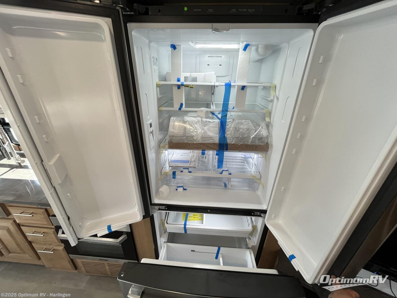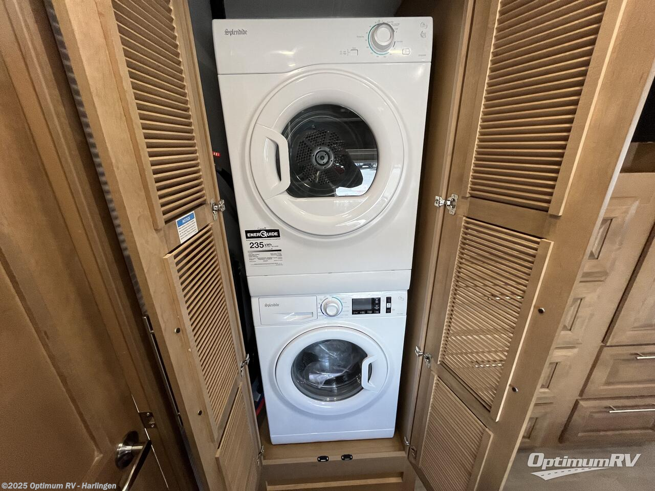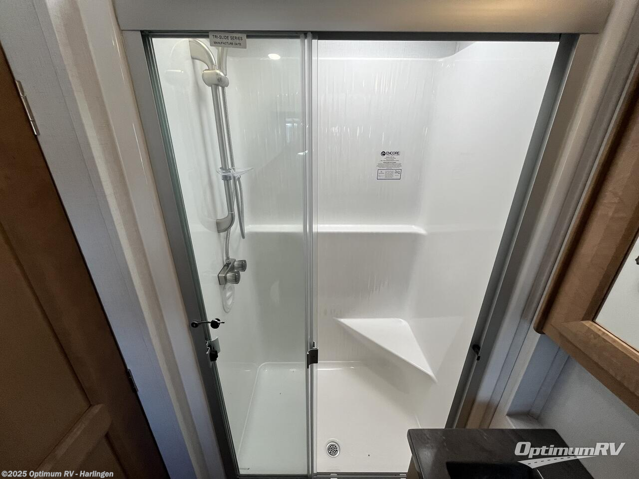 Comfort and convenience is found all throughout this motorhome! Starting with the full rear master bath that has a 42" x 30" shower with a seat and a dual sink vanity, plus it leads into the private bedroom. Inside the bedroom is a 72" x 80" king bed slide with overhead cabinets across from a dresser with overhead cabinets and a 32" LED TV, a wardrobe, and another wardrobe that is prepped to add an optional stackable washer and dryer. The half bathroom is conveniently near the fully equipped kitchen so you can get back to creating your best home cooked meals fast. Relax in true comfort each night by either playing games at the booth dinette or on the theater seating that comes with power recline, heat, and massage!