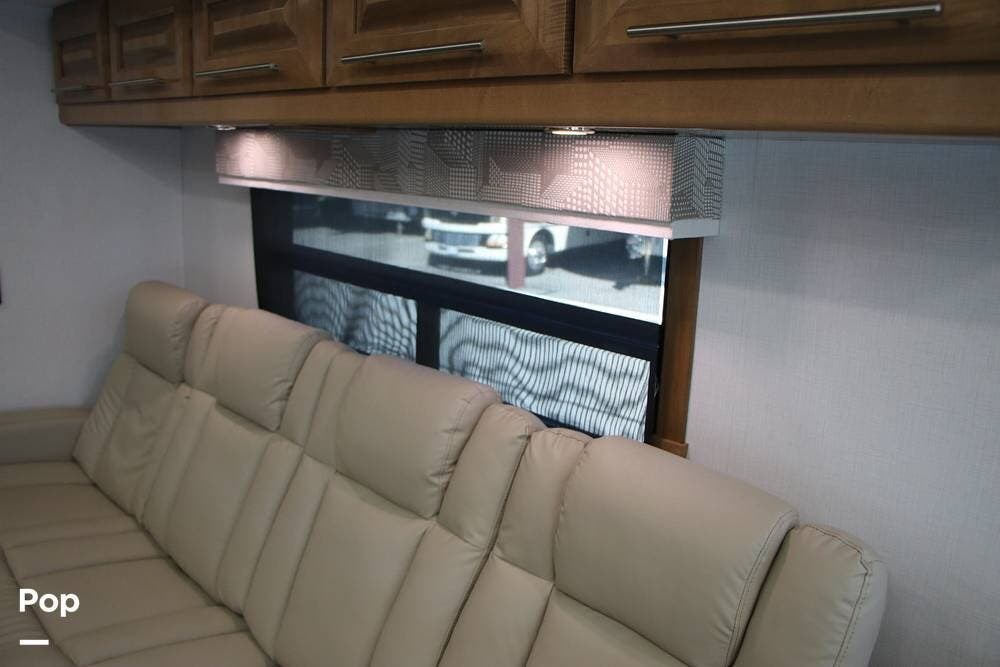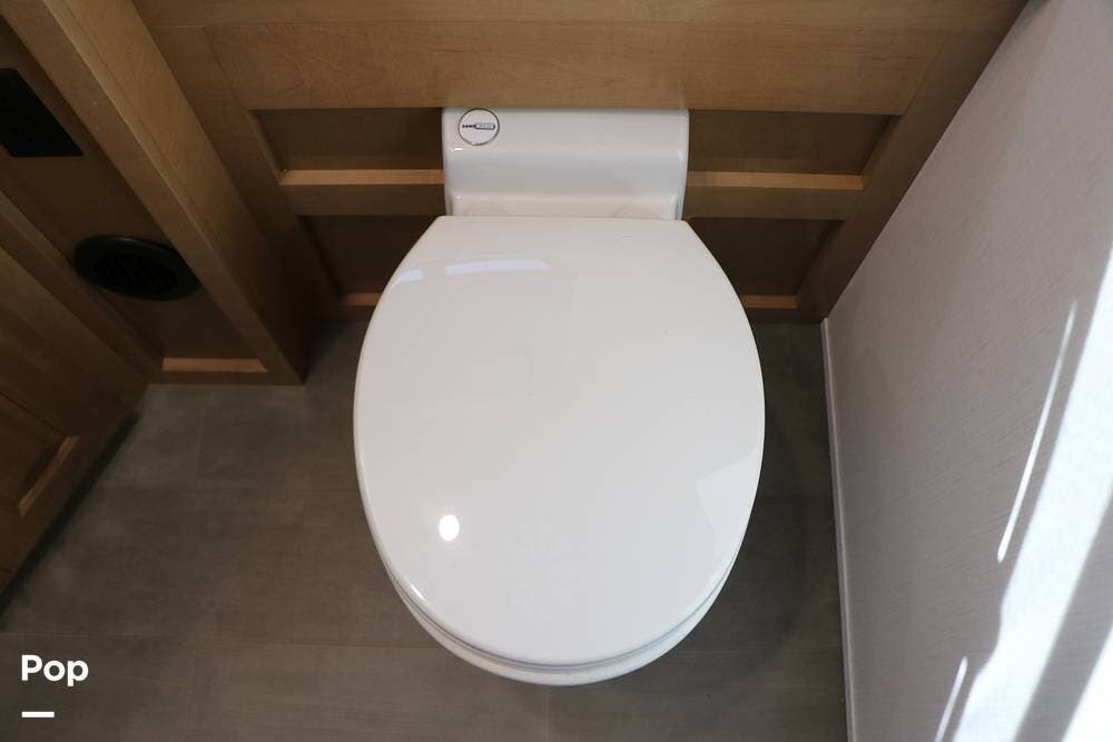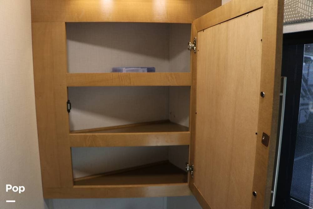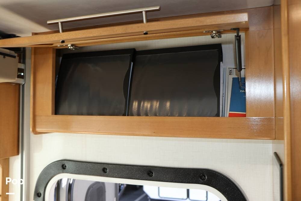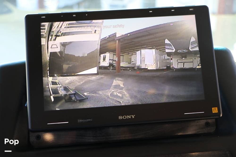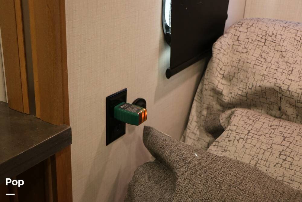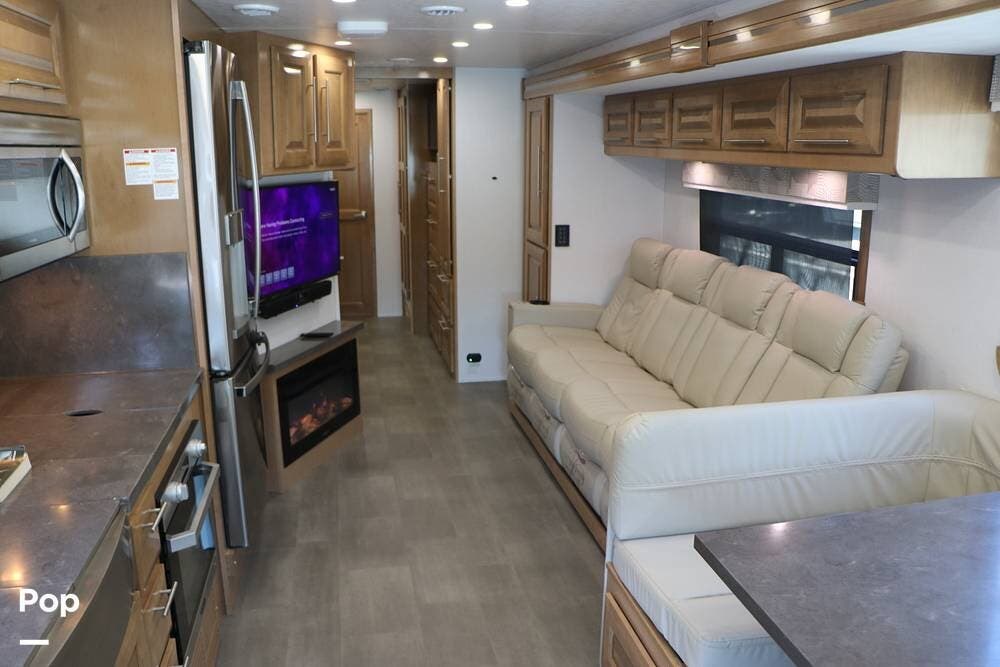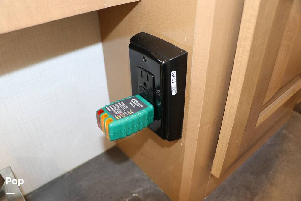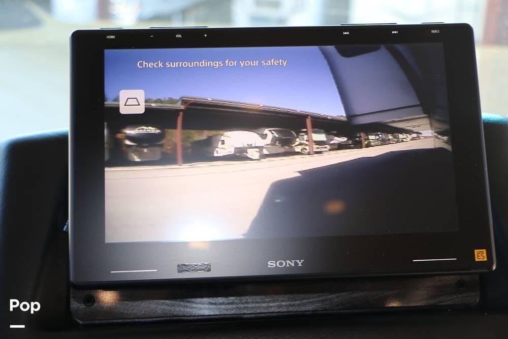 The entertainment center features a large flat screen TV, stereo sound bar, and electric fireplace that can be used for heating or just ambiance. The Dinette quickly converts into a third sleeping area if needed. The Euro Bed over the driver and passenger captains' chairs quietly drops and raises at the touch of a button.