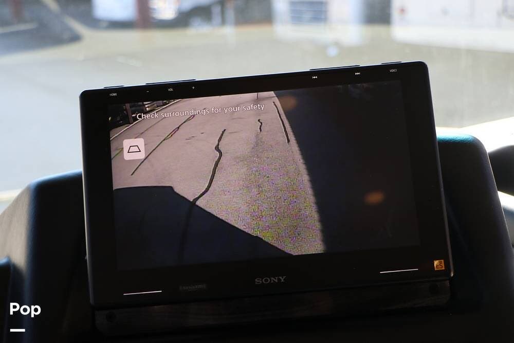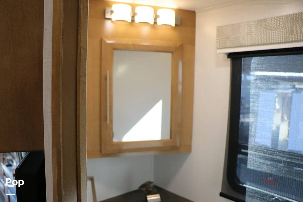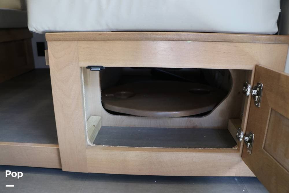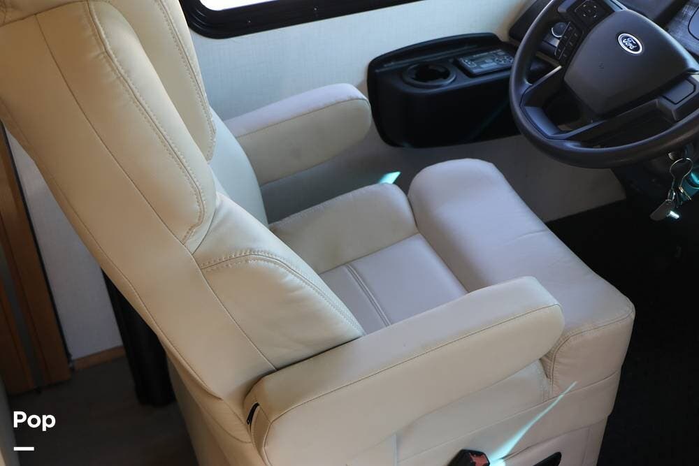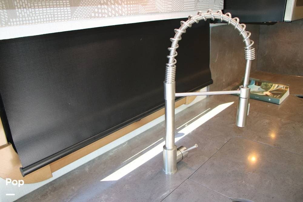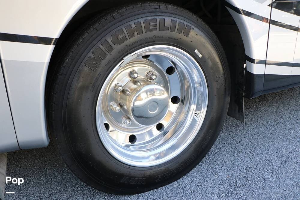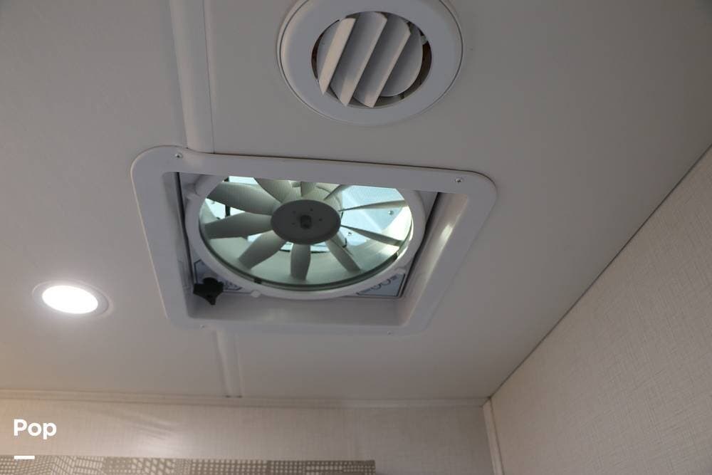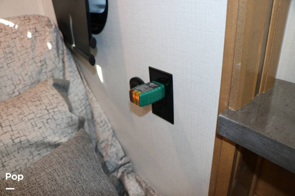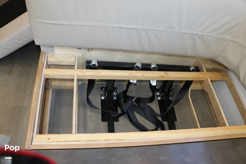 The entertainment center features a large flat screen TV, stereo sound bar, and electric fireplace that can be used for heating or just ambiance. The Dinette quickly converts into a third sleeping area if needed. The Euro Bed over the driver and passenger captains' chairs quietly drops and raises at the touch of a button.