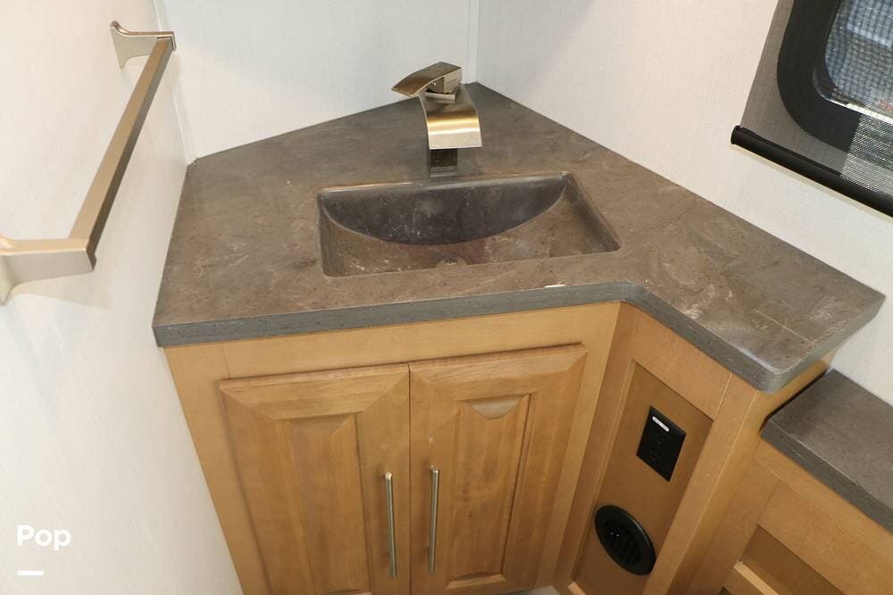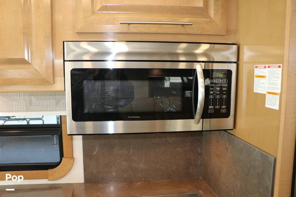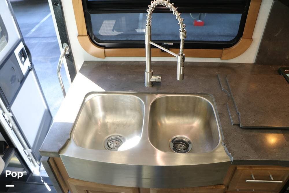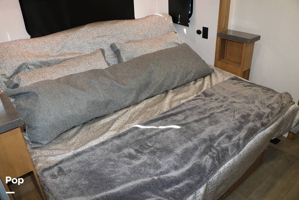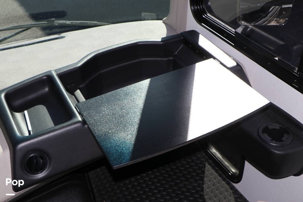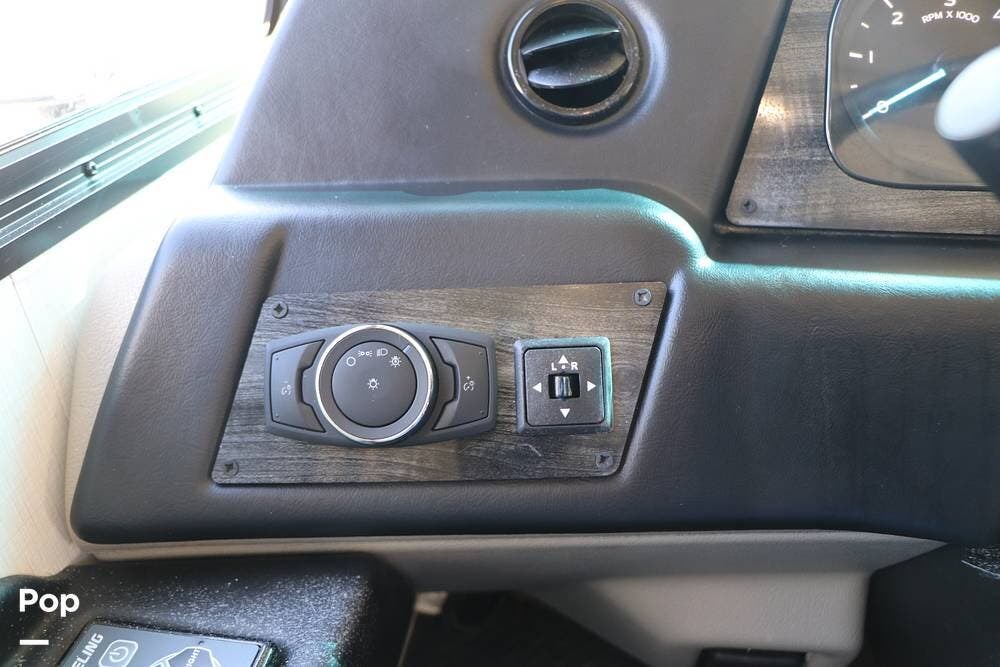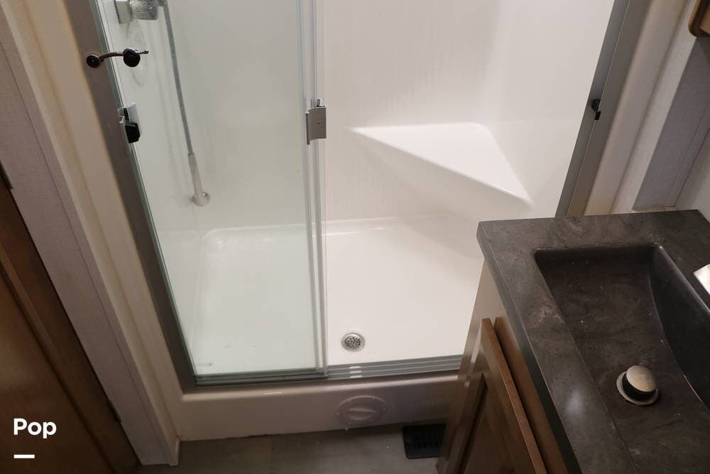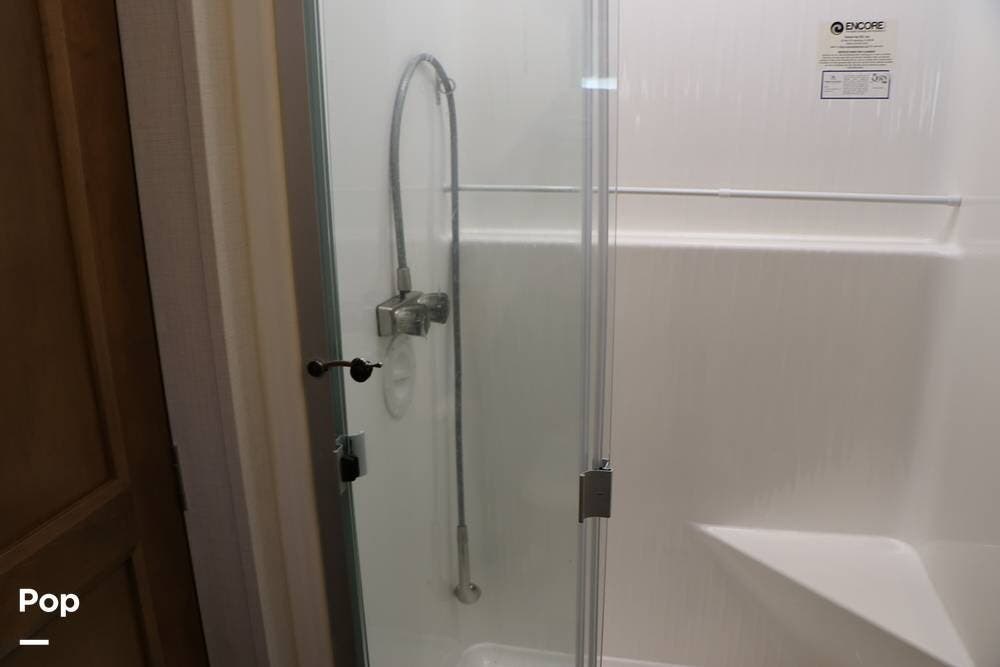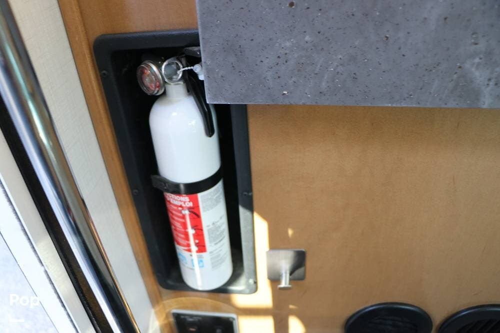 The entertainment center features a large flat screen TV, stereo sound bar, and electric fireplace that can be used for heating or just ambiance. The Dinette quickly converts into a third sleeping area if needed. The Euro Bed over the driver and passenger captains' chairs quietly drops and raises at the touch of a button.