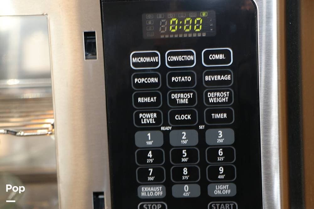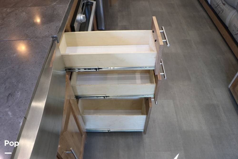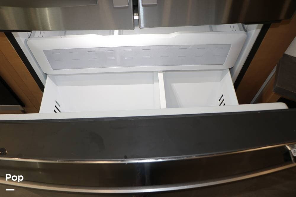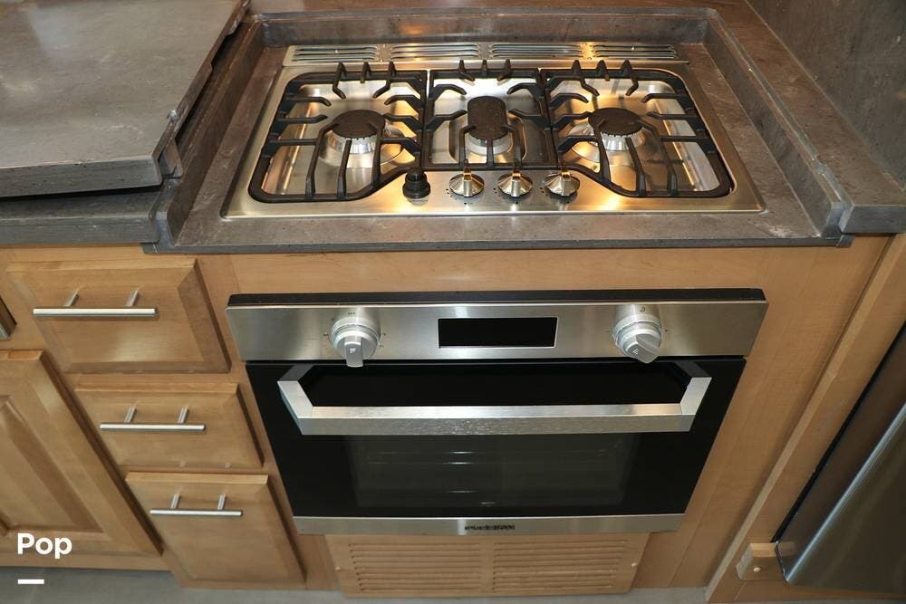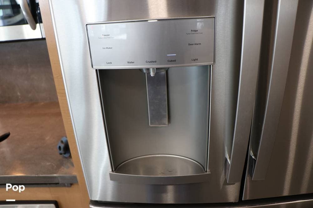 The Galley is fully equipped with a Residential Refrigerator Freezer with an indoor dispenser for water and ice. The Convection Microwave oven over the three-burner gas stove top with matching covers and the Double Kitchen Sink with Gooseneck faucet and matching covers, plus two counter extensions that can be quickly raised or lowered.