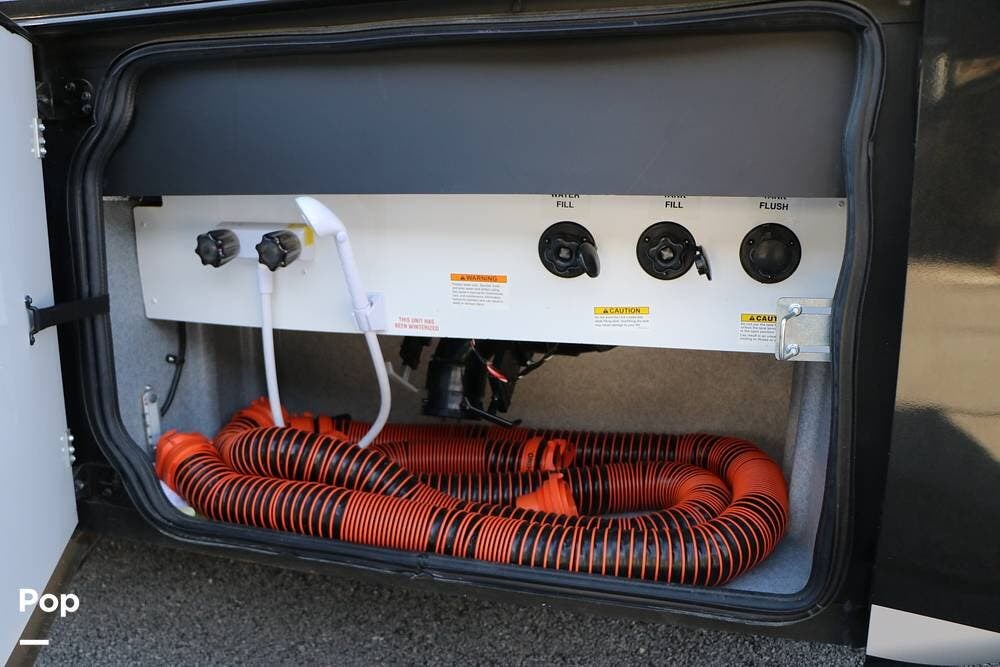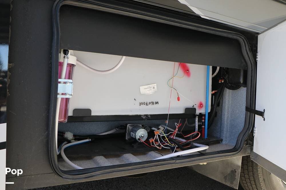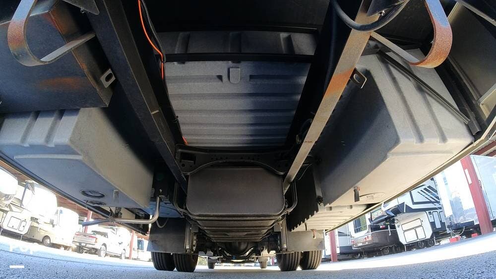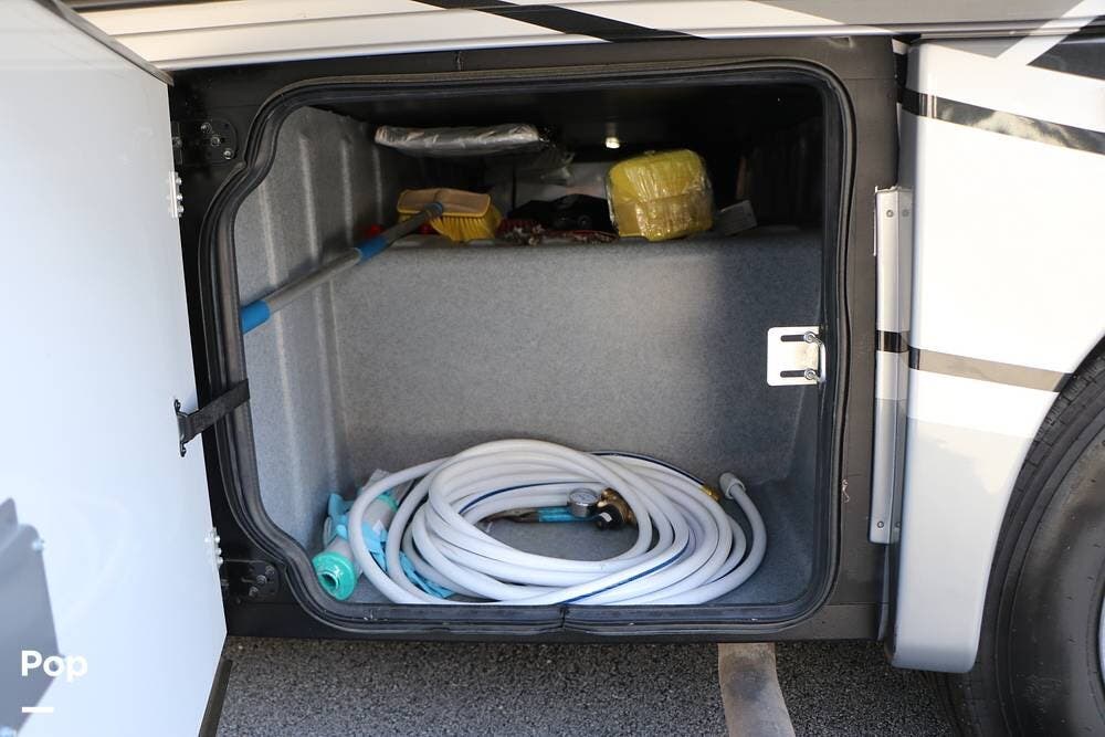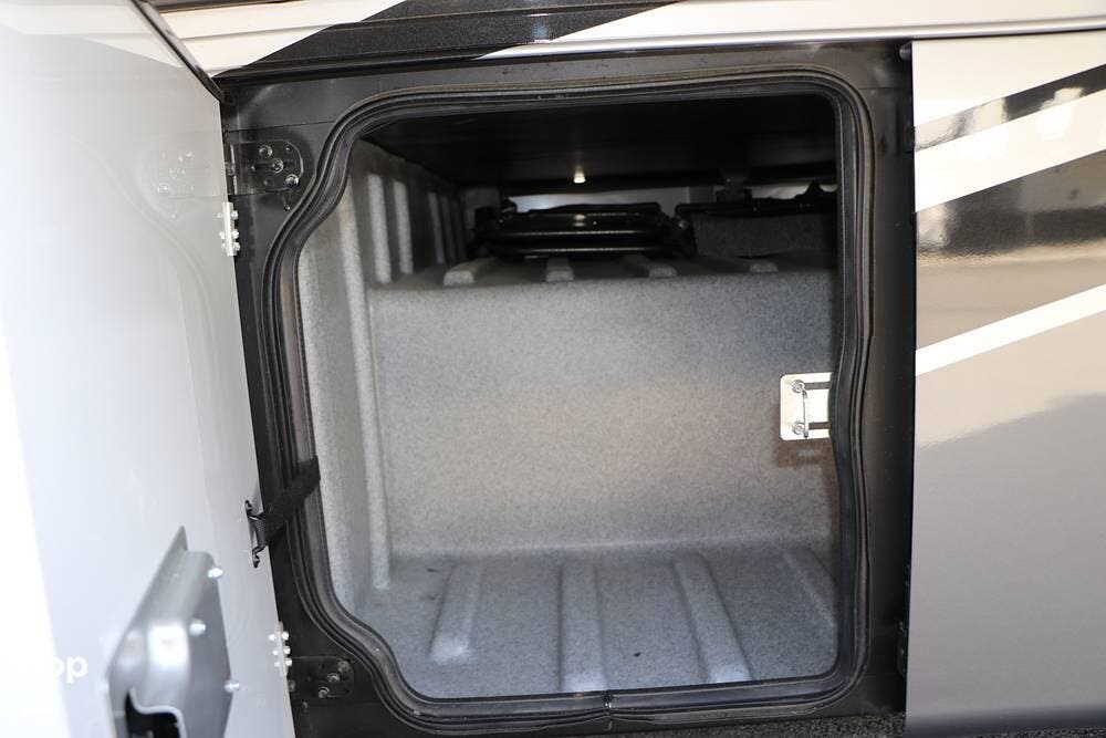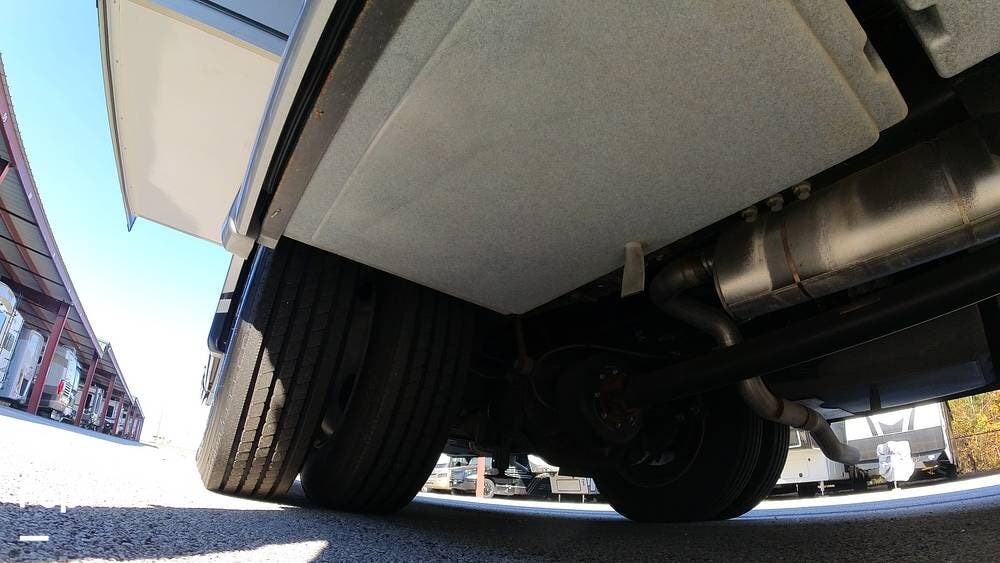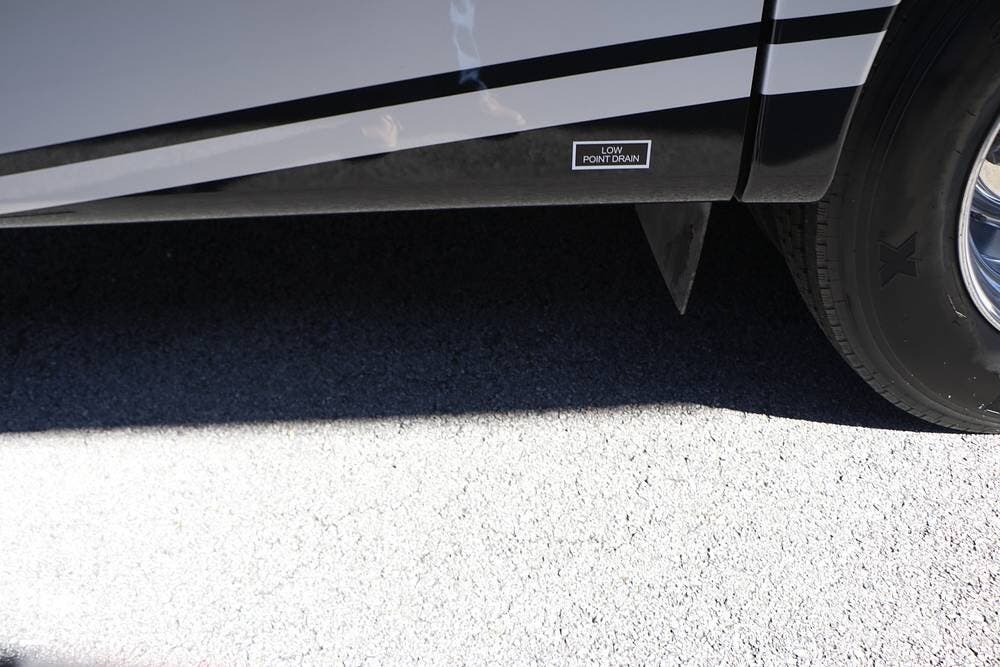 There are large storage bays around the exterior of the RV, and all of the RV systems are clearly marked and easily accessible.