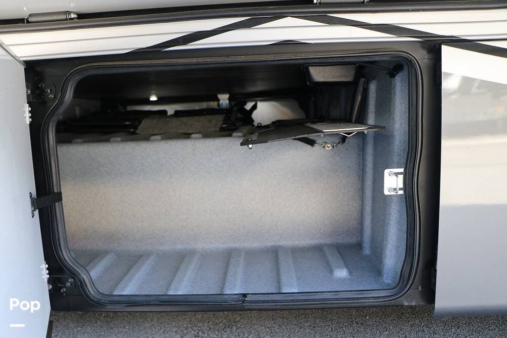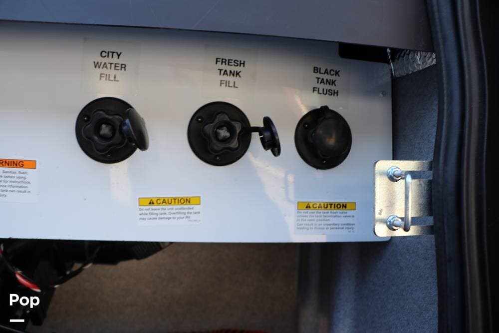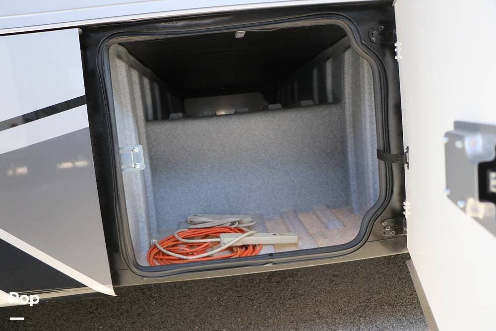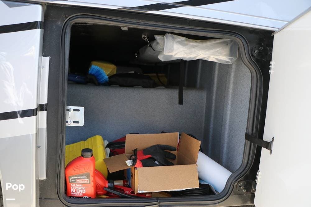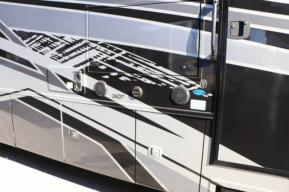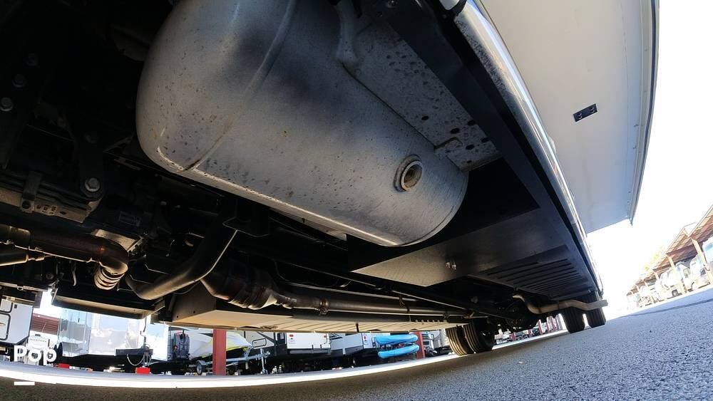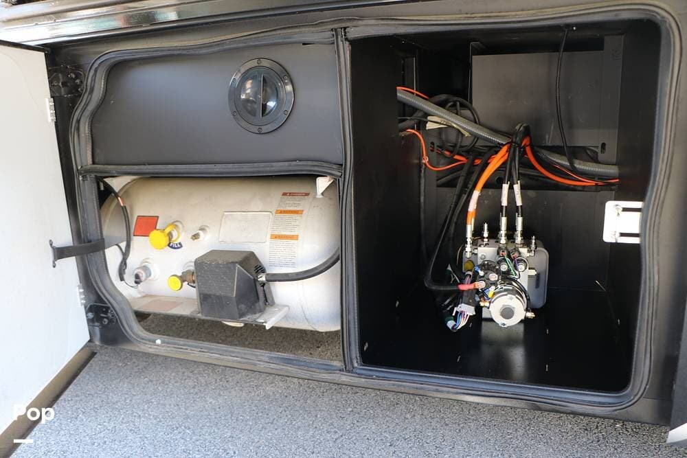 There are large storage bays around the exterior of the RV, and all of the RV systems are clearly marked and easily accessible.