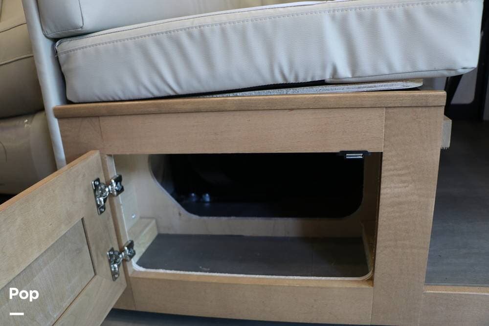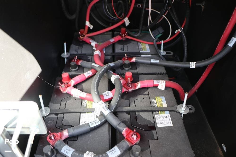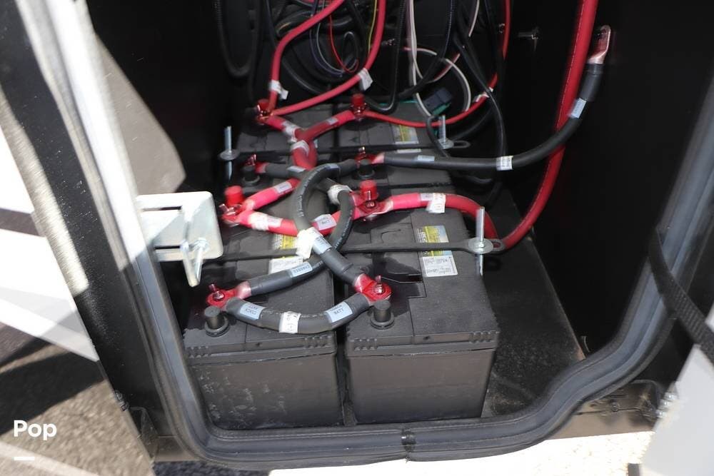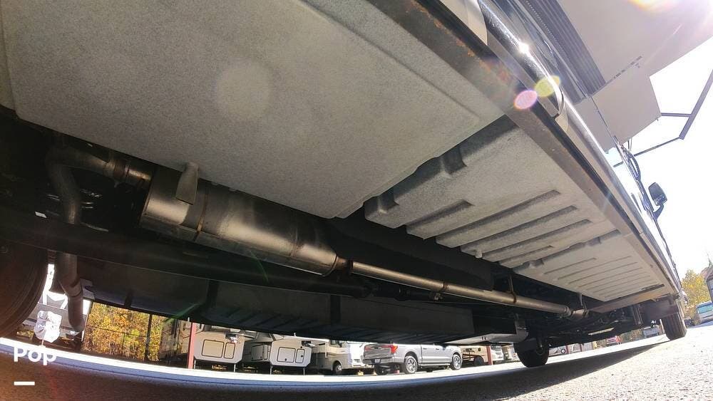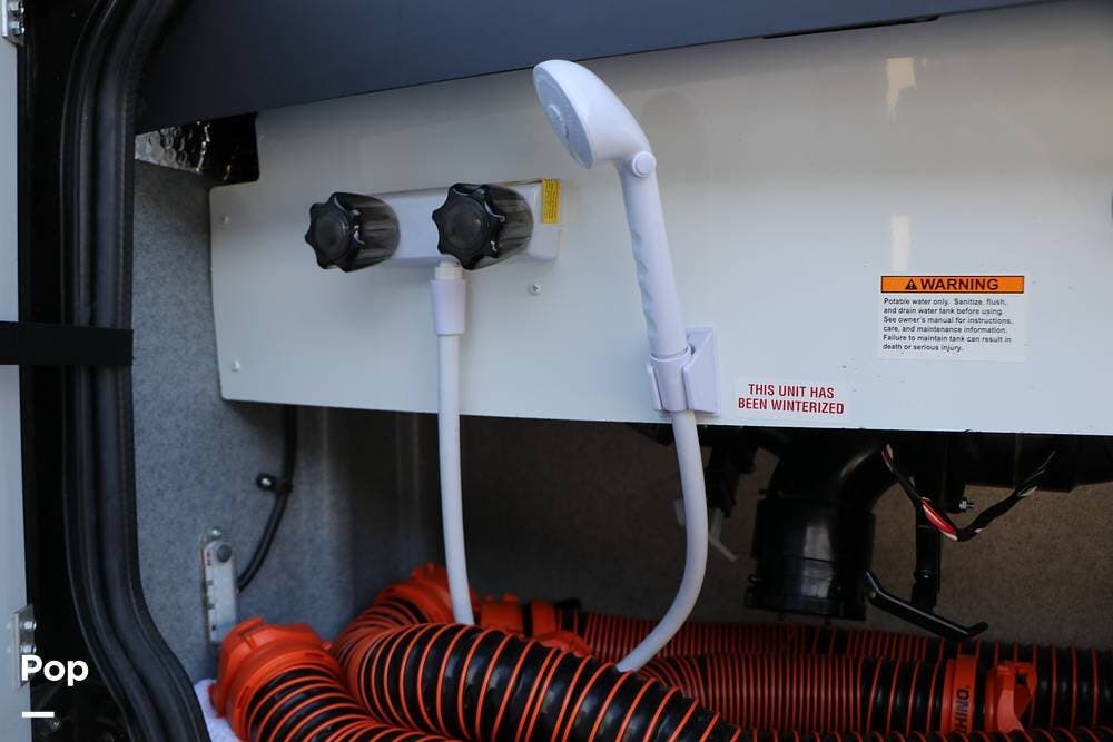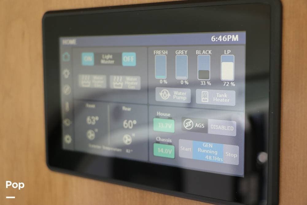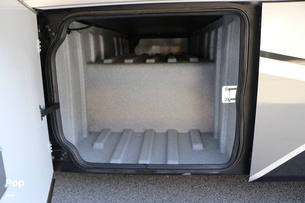 There are large storage bays around the exterior of the RV, and all of the RV systems are clearly marked and easily accessible.