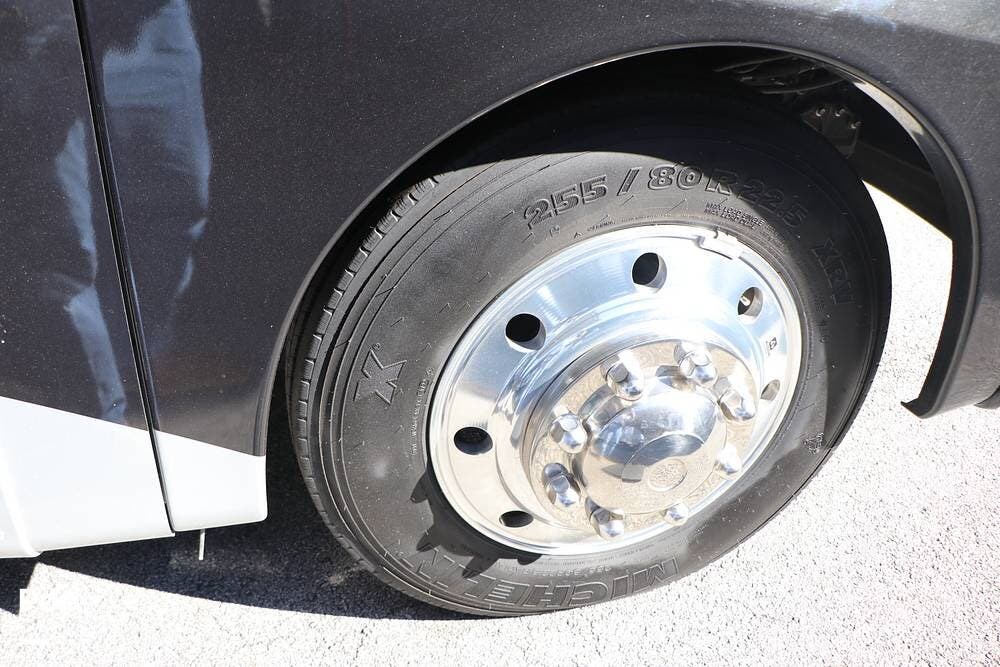 It is built on the Ford F53 Chassis and powered by the Ford 7.3L V8 engine, delivering 335 hp. It has 22.5 Inch tires, the Arctic Package, a 200 Watt Solar Panel on the roof, and a Controller and Battery charger to keep the house batteries fully charged when on the go.