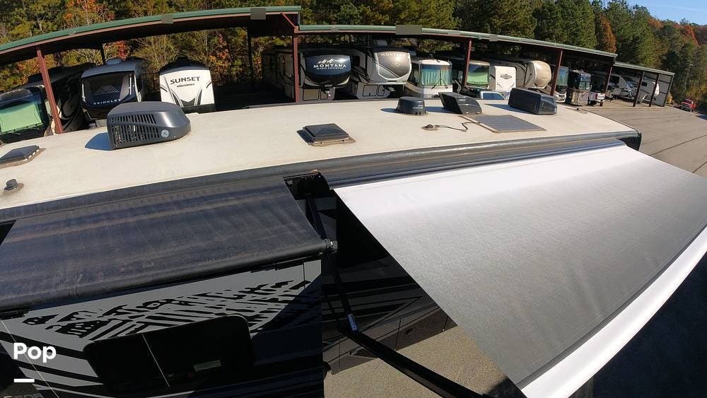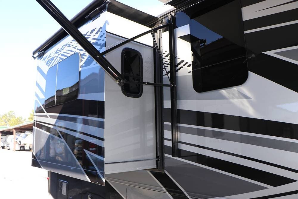 Outside the large Power Patio Awning and Exterior Entertainment Center - makes this RV a great one for entertaining - or tailgating at your favorite teams' events.