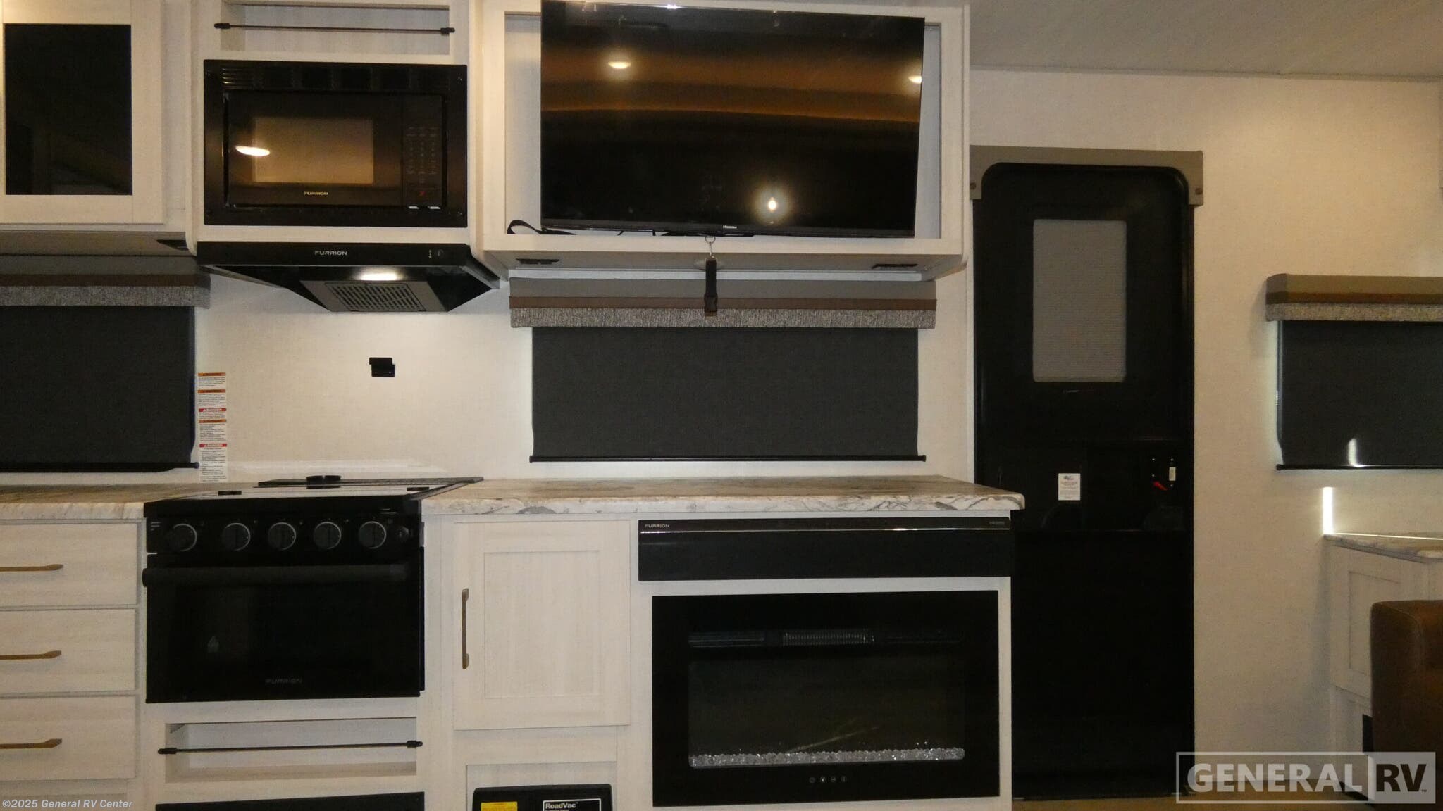 Forest River Grand Surveyor 253RLS highlights: - Fireplace - Custom King Bed - Pull-Out Dinette Drawers - Large Slide Out - Outdoor Kitchen - Dual Entry Doors Camping your favorite site has never been more relaxing than in this travel trailer. You can comfortably sleep five to six each night with the custom king bed in the front master bedroom, plus the tri-fold sofa and booth dinette in the rear living area. There is also a walk-through bath that will easily accessible for everyone to use. Whip up your best meals on the residential range, or head outdoors to cook on the gas griddle included within the outdoor kitchen. You'll also find a sink and a refrigerator, and a 21' power awning with LED lights to create the perfect outdoor living space. After a day outdoors, you can relax by the fireplace or watch a movie on the HD TV, and there is a large kitchen pantry to stock up on snacks! With any Grand Surveyor travel trailer by Forest River you will enjoy turn-key ready-to-go features and quality construction! Each model includes Azdel composite walls and a gel coated fiberglass front cap with an automotive style tinted windshield for a sleek look. There are friction hinge black glass entry door(s), an adjustable platform step with a night light, plus Goodyear tires and a power tongue jack for easy towing. The interior will have you feeling right at home with roller shades, residential faucets, sinks, and bathroom vanity, plus Surf(x) seamless countertops throughout. You can also plan for adventure with a 2" rear accessory and exterior spray port, and there are slam latch baggage doors throughout to keep all your gear secure. Other stand-out features include a central vacuum system, a 200 watt solar panel with a 30 amp controller, a tankless water heater, carpet-free interiors, and the list goes on!