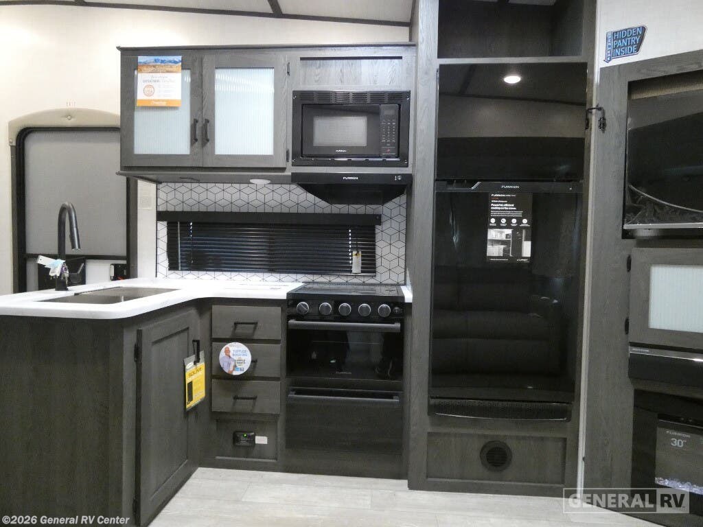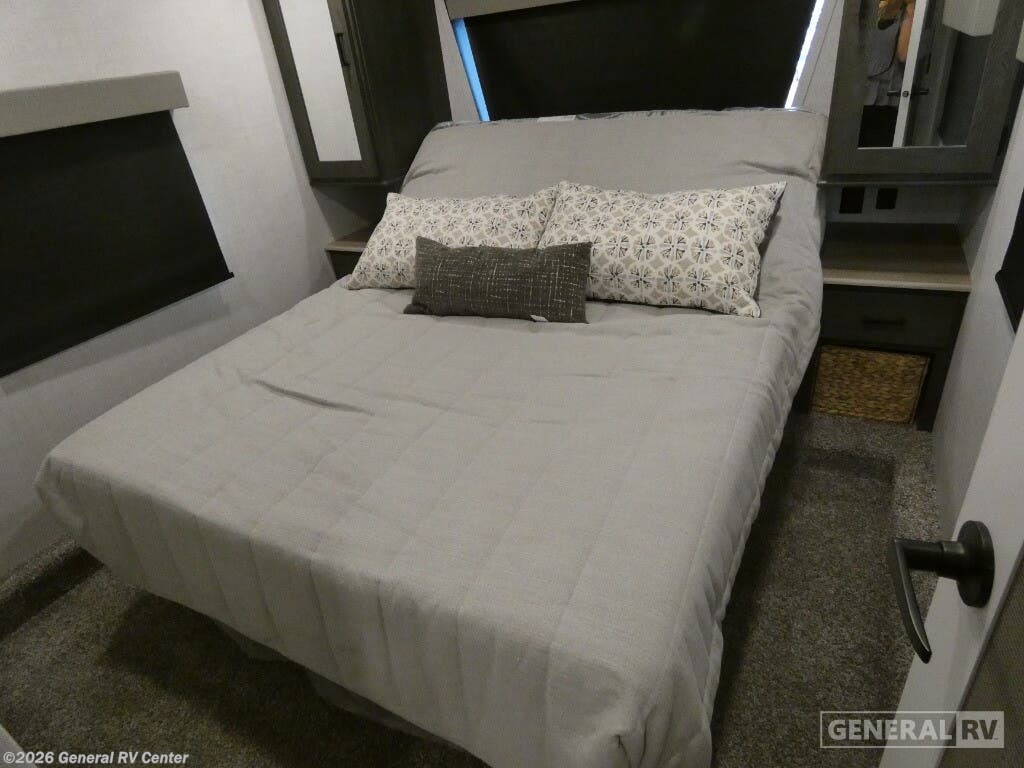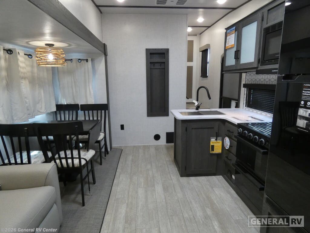 Experience the ultimate in family-friendly travel with the 2024 Forest River Impression 290VB. This spacious fifth wheel is designed to accommodate up to ten sleepers, making it perfect for large families or group adventures. The heart of this RV features a versatile center kitchen and living area, equipped with a full-size electric refrigerator and a three-burner cooktop, ensuring you can whip up delicious meals on the go. The carpet-free living space is complemented by a tri-fold HAB sofa and a free-standing table, creating a cozy environment for dining and relaxation. At the rear, discover a dedicated bunkhouse with flip-down bunks and a versatile queen bed, offering a private haven for the kids or guests. The front master bedroom boasts a comfortable queen bed and ample storage, including washer and dryer prep, making extended trips a breeze. An 18 ft. powered retractable awning provides a perfect outdoor entertaining space, complete with an outside kitchen for al fresco dining. With a robust cargo capacity and premium Goodyear Endurance tires, this RV is ready for any adventure. For more information, visit your nearest General RV Dealership location.