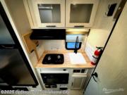This is the perfect couples unit that features everything that you need to enjoy traveling and exploring yet keeping your tow length and weight down. The unique rear entry makes this unit easy to access, and just inside the rear door there is a private toilet area for quick access when you are outside and you need the bathroom. A front queen bed that is 60" x 74" provides a great night's rest, and can easily convert to a booth dinette when needed for inside seating and meals. The two burner cooktop, sink, and refrigerator allow you to make easy camp meals inside if you'd like.