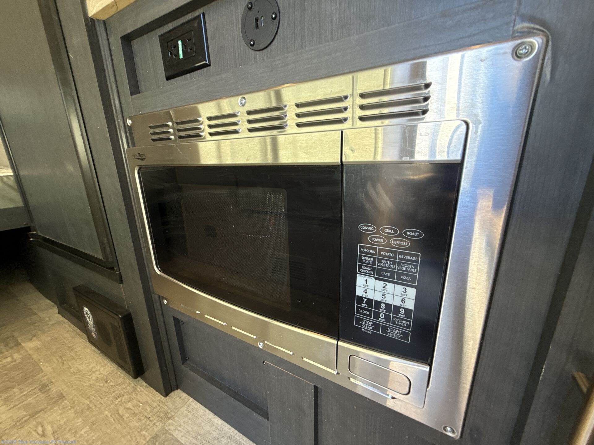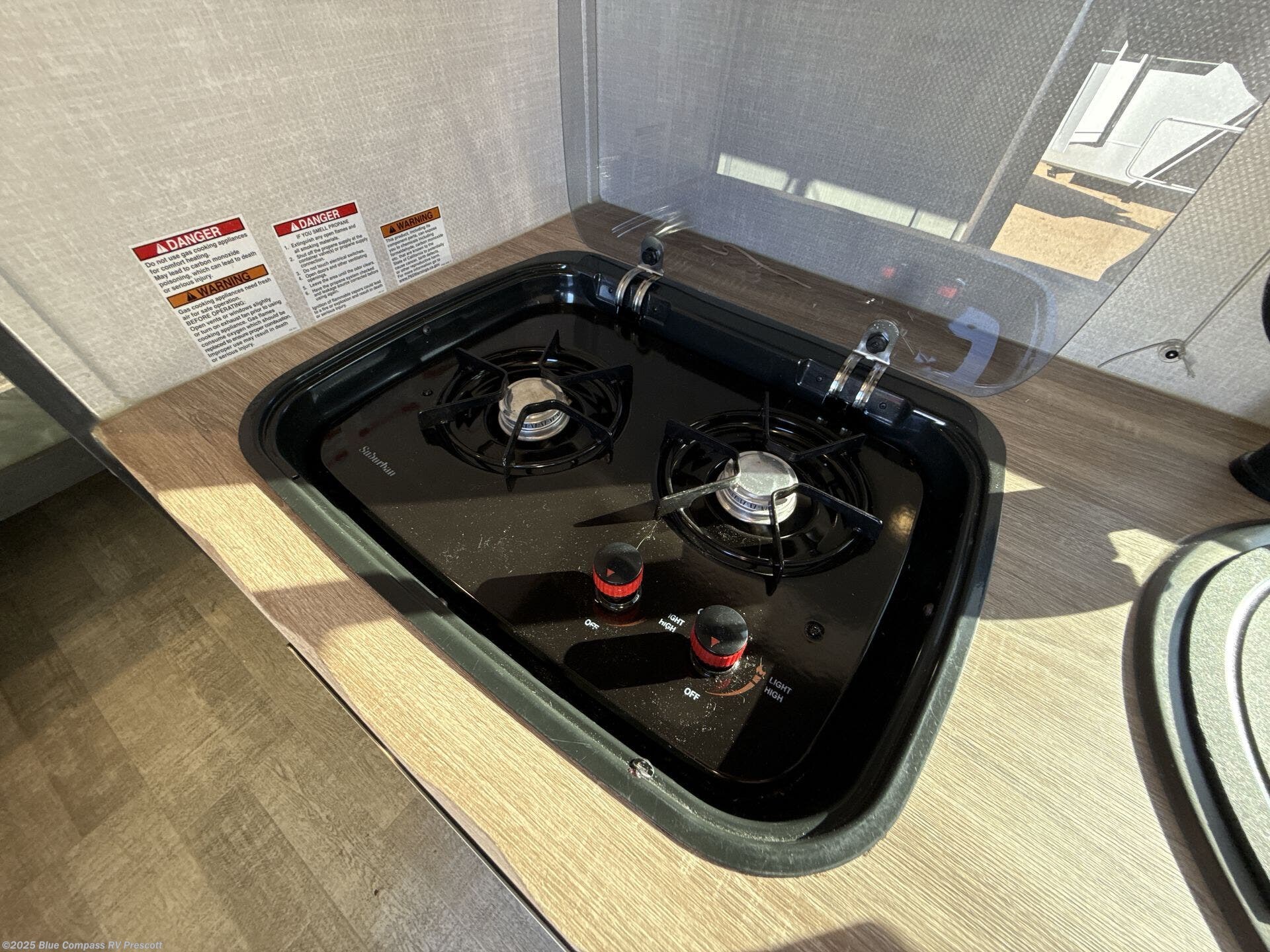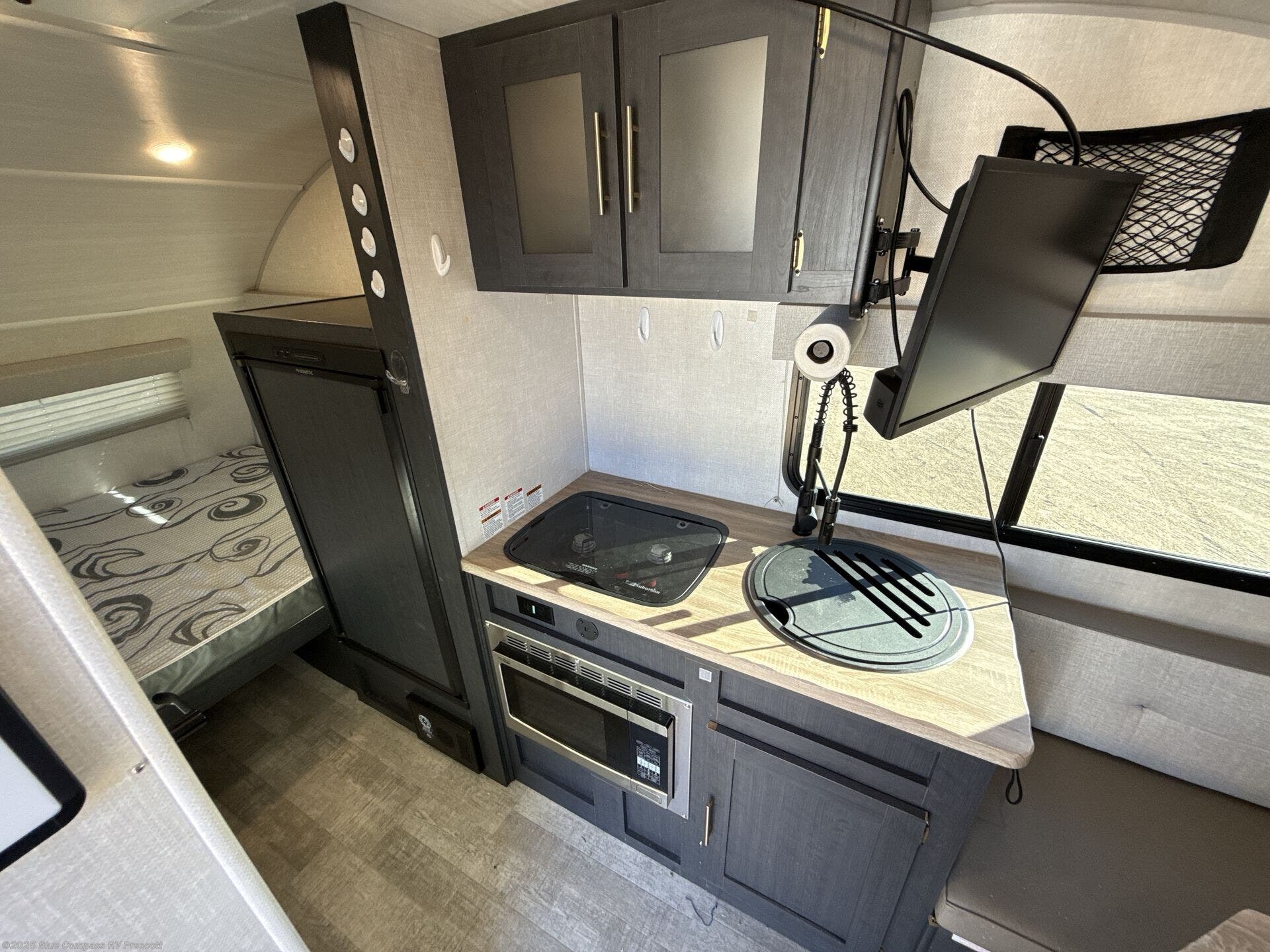 With any R Pod Classic travel trailer by Forest River, you will enjoy at home-comforts and lightweight towing. There are magnetic door catches that will easily keep the door open when you're packing hiking gear or bringing in your luggage. Each model includes 30 Amp service with a detachable power cord, a 20 lb. propane tank with a cover, and a high efficiency roof-mounted air conditioner that will keep you cool during the summer camping months. Inside, you'll find a two burner recessed cooktop with a flush mount glass cover, a convection microwave, and new Cosmetic Graphite interior for a modern look you will love.