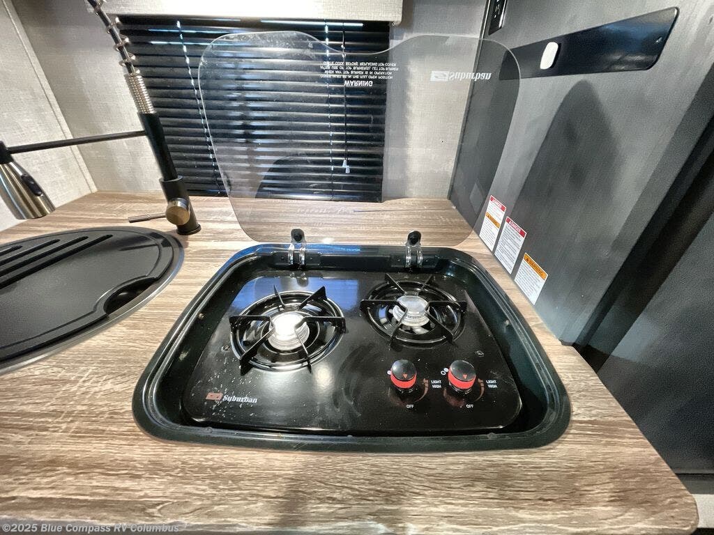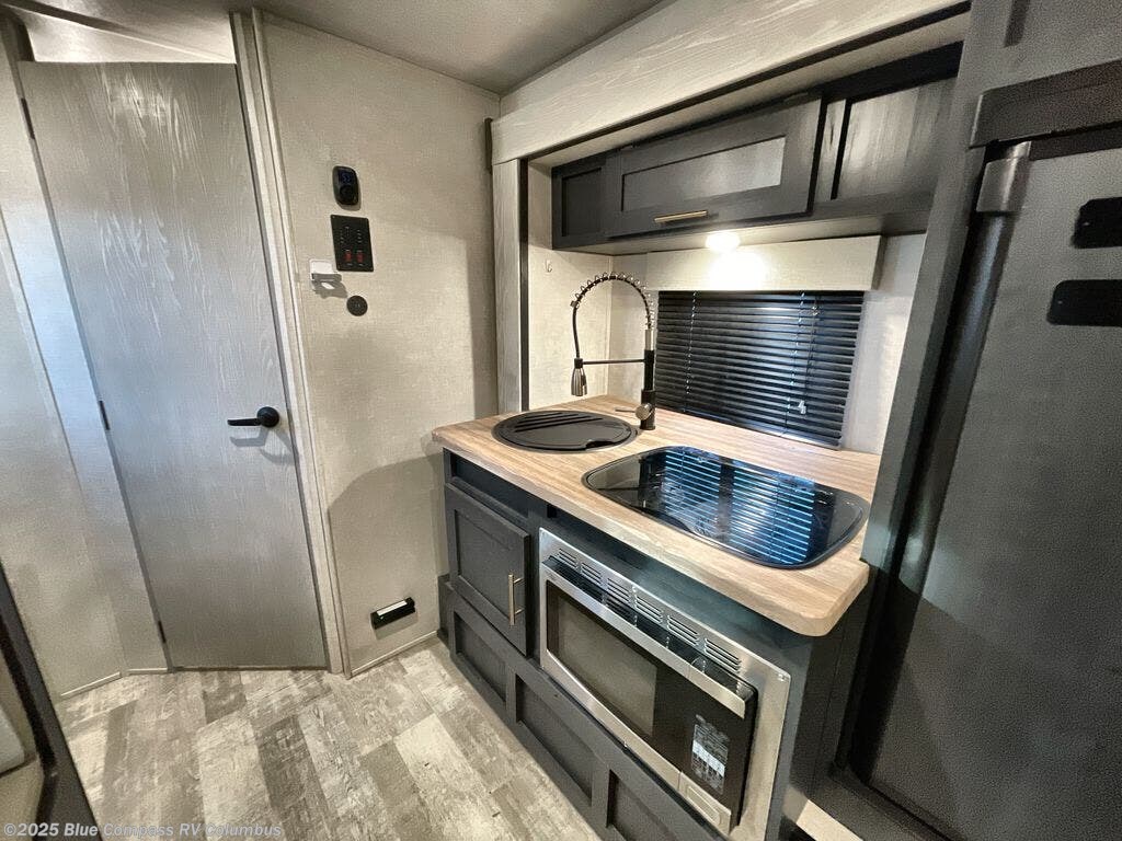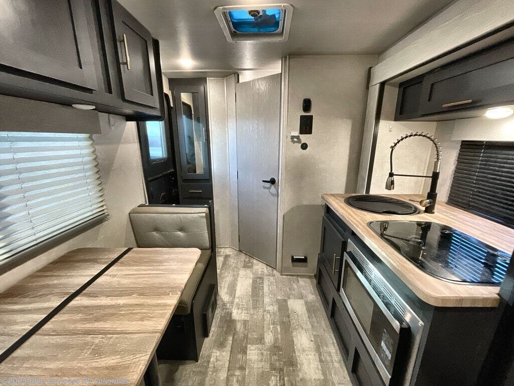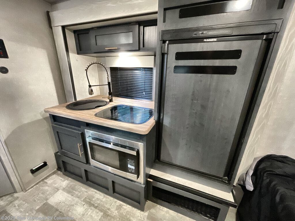 With any R Pod Classic travel trailer by Forest River, you will enjoy at home-comforts and lightweight towing. There are magnetic door catches that will easily keep the door open when you're packing hiking gear or bringing in your luggage. Each model includes 30 Amp service with a detachable power cord, a 20 lb. propane tank with a cover, and a high efficiency roof-mounted air conditioner that will keep you cool during the summer camping months. Inside, you'll find a two burner recessed cooktop with a flush mount glass cover, a convection microwave, and new Cosmetic Graphite interior for a modern look you will love.