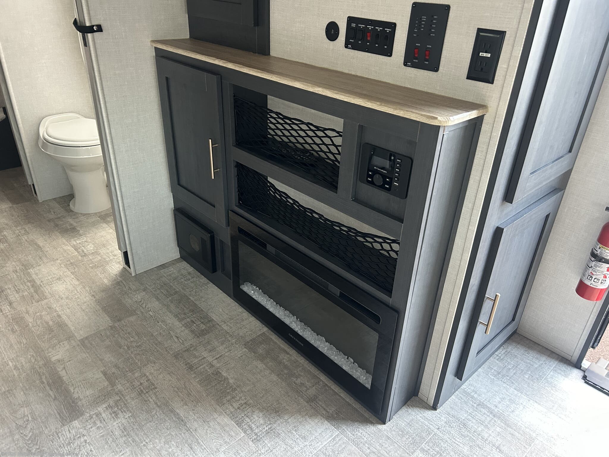 Booth Dinette, Central Vacuum, Fireplace, Medicine Cabinet, Queen Bed, Roof Vents, Shower, Toilet