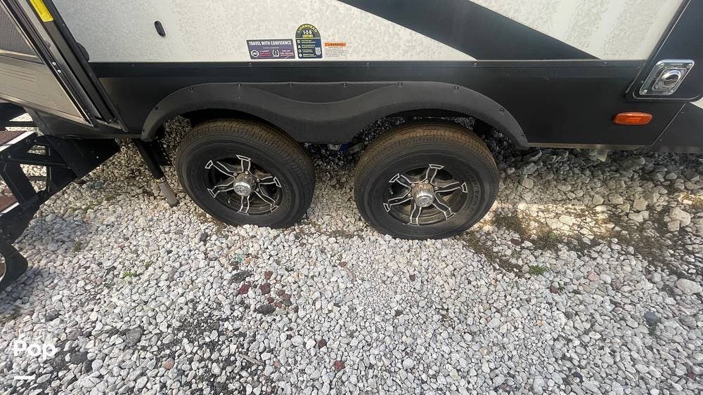 This trailer is built to last with a sleek fiberglass exterior and one-piece TPO roofing. It's 9,995-pound GVWR and 1,214-pound hitch weight ensure stability, while the single slideout creates a spacious interior that sleeps up to four.