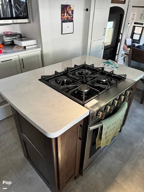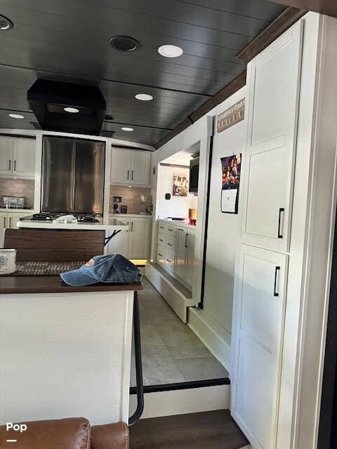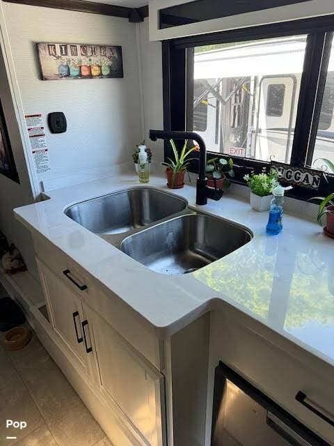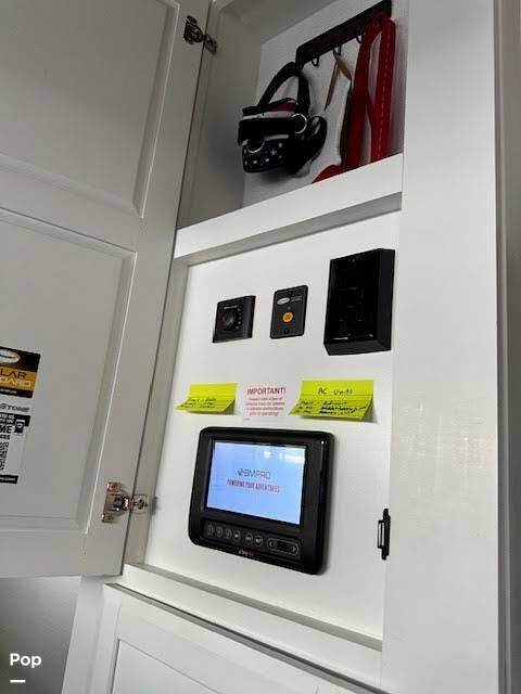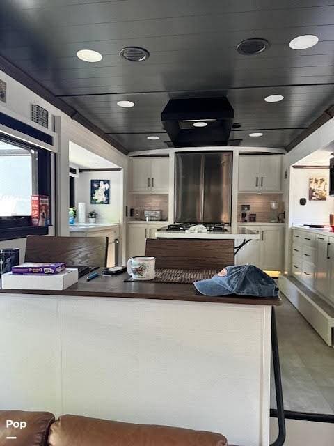 Inside, the master suite features a comfortable queen bed and a dedicated Cadet heater for added warmth on cooler nights. The thoughtfully designed interior flows seamlessly from the expansive kitchen and living area to the private bedroom, delivering a true residential feel with modern styling and premium craftsmanship.