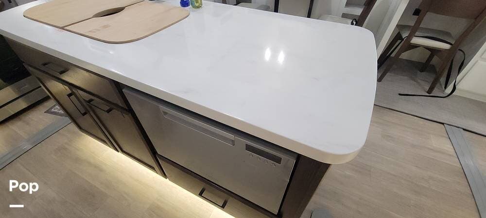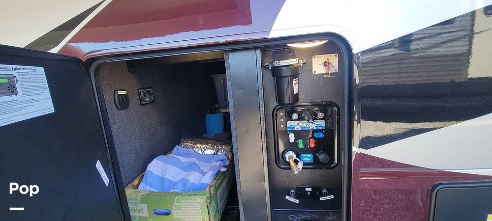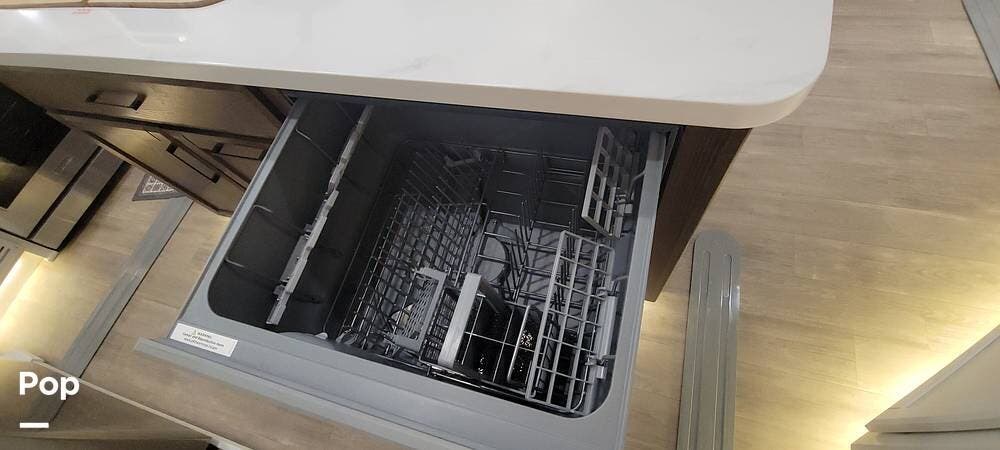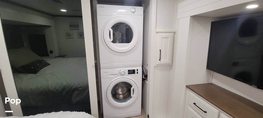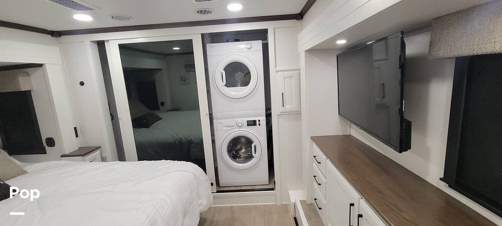 It has the Luxury Package (Mandatory): Which, features 6-point hydraulic leveling, 4-camera prep, King Wi-Fi router, Splendide stackable washer/dryer, Fisher & Paykel dishwasher, and a Truma Aqua Go hot water heater.