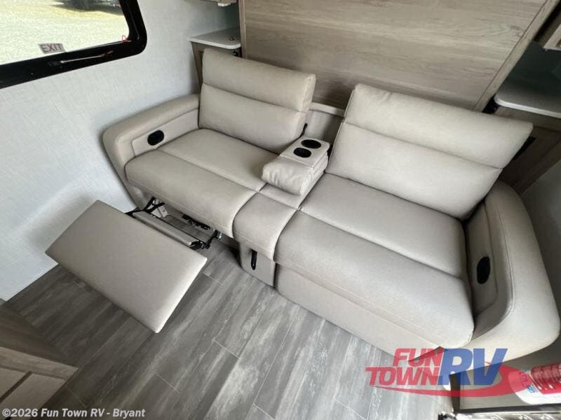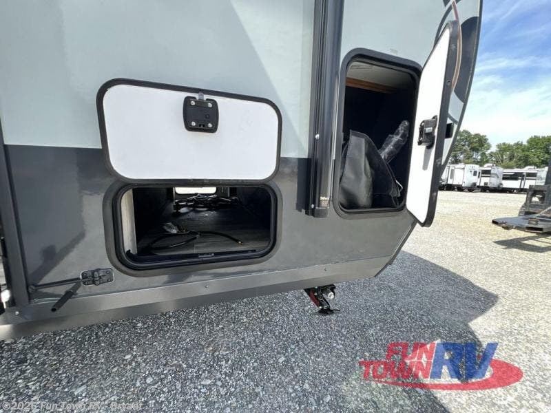 You will love how versatile this travel trailer is thanks to the Murphy bed up front. After you've had a great night's rest, just fold it up to relax on the 72" sofa. This will give the chef more space in the morning to prepare breakfast on the three burner cooktop or in the microwave oven. There is a 32" booth dinette to dine at, or you may just want to take your plate outdoors under the 14' power awning. The full rear bath includes a large linen closet to store clean towels and there is a Showermiser Water Saver you are sure to appreciate. You will appreciate a pass-through storage, plus additional exterior storage so you can bring along hiking gear, water tubes, and fishing poles! The optional Power Package available on this model includes three 200W solar panels, a 30 Amp solar charge controller, two Mastervolt smart remotes, and more off-grid features!