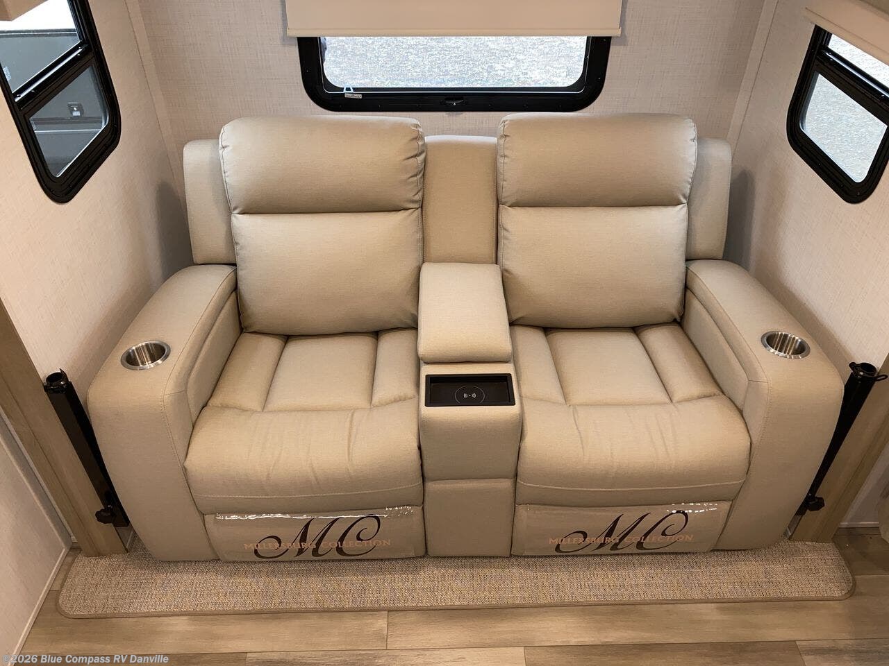 Enjoy the camping season with your spouse, friend, or significant other in this cozy travel trailer for two. Each morning, you can have your coffee on the 67" theater seats with a table within the slide out, then head outdoors to make pancakes on the outdoor griddle with an LP hookup. The interior kitchen includes a three burner cooktop, a microwave oven, plus a 12 volt refrigerator for perishables. An entertainment center with a fireplace will make your space feel more like home, and what's better than sleeping on your own queen bed with dual bedroom wardrobes for your clothes!?