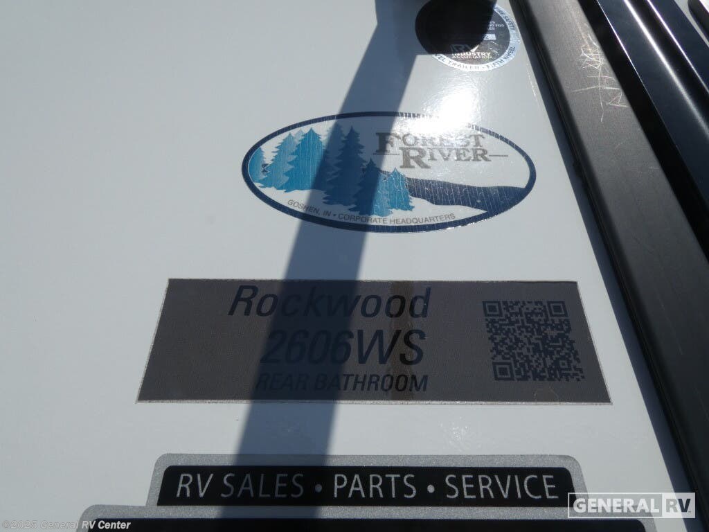 Forest River Rockwood Ultra Lite travel trailer 2606WS highlights: Rear Bath Theater Seating Booth Dinette 21' Power Awning Exterior Griddle This trailer is the perfect couple's retreat with its private bedroom up front which includes a queen bed, a slide out wardrobe and ent center. The spacious rear full bathroom provides a shower and linen storage, and a space savings sliding door. The cook will have full amenities with ample counter space, a walk-in pantry for food storage, and a three burner range to cook meals on. If the weather is nice outside, you can make dinner on the exterior griddle, and there is a 21' power awning with LED lights to relax under. Or you can stay inside to enjoy the fireplace and Smart TV! You will also appreciate the pass thru storage with a steel sliding tray to easily access gear! Each Rockwood Ultra Lite travel trailer by Forest River includes superior construction with a high gloss front cap, laminated white fiberglass sidewalls, and tinted frameless windows for a sleek look. You will love how easy it will be to charge a few electronics with the 200W roof solar panel with an 1800W inverter, and the AIR 360+ omnidirectional antenna with WiFi prep will let you stay connected to the outside world as you camp. The torsion axle, Rubber-Ryde suspension will make towing smooth and hassle-free, along with the nitrogen filled, Goodyear Endurance tires and the tire pressure monitor system. Interior comforts include designer kitchen backsplash, solid wood cabinet doors with hidden hinges, and night roller shades to name a few. Choose a Rockwood Ultra Lite travel trailer today!