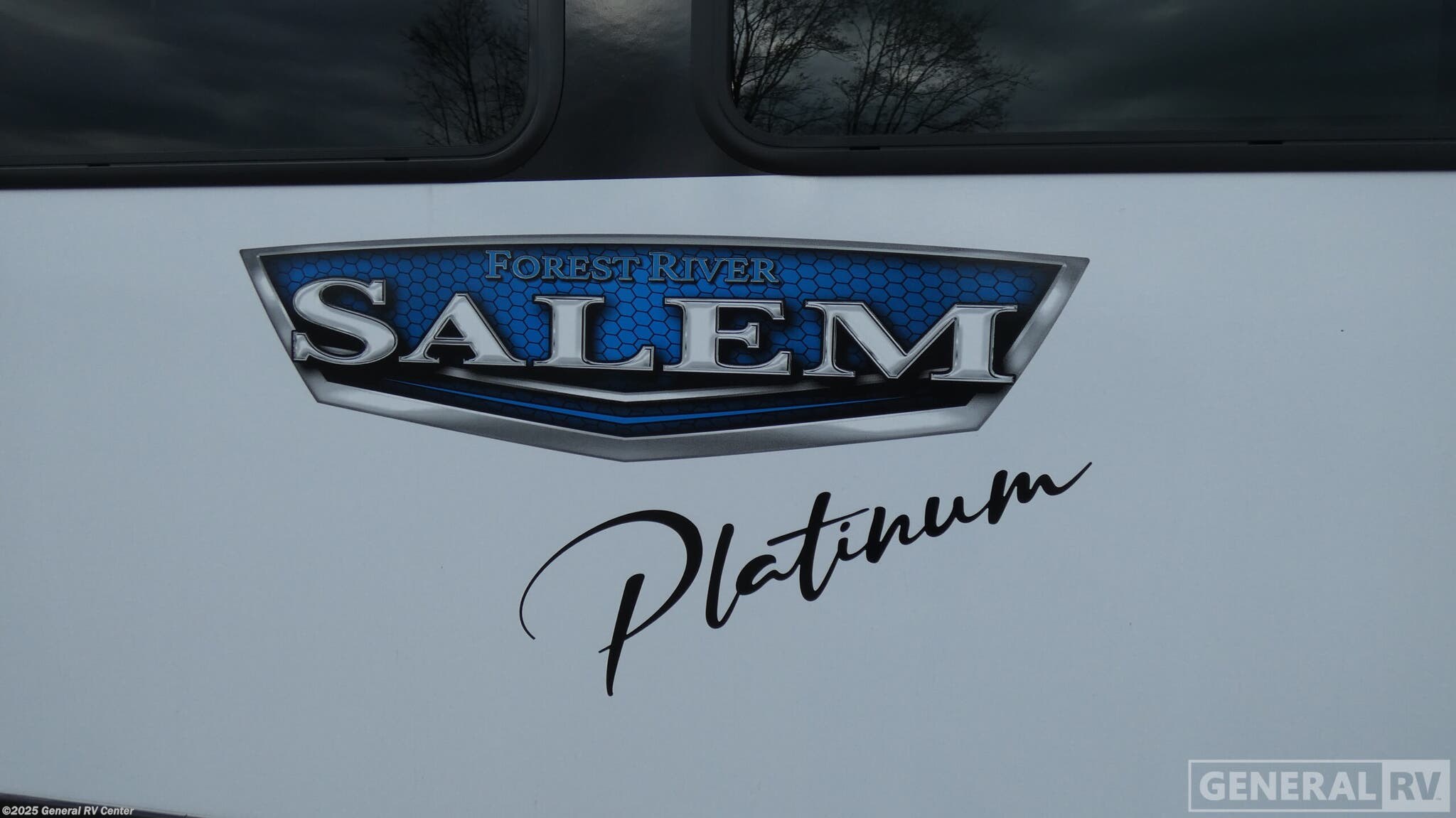 ## Forest River Salem Platinum travel trailer 27REX highlights - Fireplace - Private Bedroom - Kitchen Island - Dual Lounge Chairs - Spacious Full Bath - Smooth Fiberglass Exterior This Salem Platinum travel trailer is full of wonderful amenities that will make every trip enjoyable! You are sure to love the smooth fiberglass exterior. The large opposing slides are what create an open and spacious environment so that you can sit back on the Versa Lounge, one of the two lounge chairs, or booth dinette while you soak in the ambiance from the fireplace. The pieces can be moved around to suite you just right. You can also head outside where you will find two awnings for your protection and a pass-through storage compartment for your gear. The front private bedroom features a comfortable Versa-Tilt custom king bed, dual closets above nightstands, and another wardrobe that allows washer/dryer prep in case you want to add units plus so much more!. Enjoy years and years of memories with any one of these Forest River Salem travel trailers! They are built with a Dicor PVC roof membrane, a powder coated I-beam frame, and an aerodynamic front radius profile for an easier tow. The triple seal slide out system prevents water from seeping inside and keeps it outside where it belongs. The Best In Class Value Package includes upgraded designer furniture, seamless countertops with no T-mold, and two zone residential soundbars with FM, Bluetooth, HDMI and USB. You will also appreciate the heated and enclosed Accessi-Belly with removable underbelly panels, the power tongue jack with an LED light, and the designated CPAP storage.
