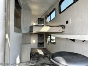 Your family of four will enjoy this Salem View bunk model featuring 105 square feet of window space for unbelievable views of your surroundings. A Versa Slide features a refrigerator, pantry, and entertainment center with a door leading to a bunk space including a set of 30" x 70" bunks with top flip-up bunk, storage cubbies for your things, and a desk with bar stool for any office work that you may need to do while you travel. All is neatly tucked away within the slide behind a shiplap featured entertainment wall with fireplace opposite the sectional sofa which is great for relaxing and entertaining family and friends indoors. The rear kitchen area offers 18 linear feet of countertop space with four bar stools, plus a three burner range and double sink. Your refrigerator and pantry will hold all of your perishables and dry goods, and those are nearby within the Versa slide. Up front, a private bedroom with Versa-Tilt custom king bed which provides 14-1/2" of additional walking around space, plus you will find a wardrobe that has been prepped for a washer and dryer if you choose to add, as well as dual nightstands beneath wardrobes on either side of the bed. A large pass-through storage compartment offers plenty of space for your outdoor gear, and if you enjoy outdoor cooking, you might want to add the outside kitchen option as well.