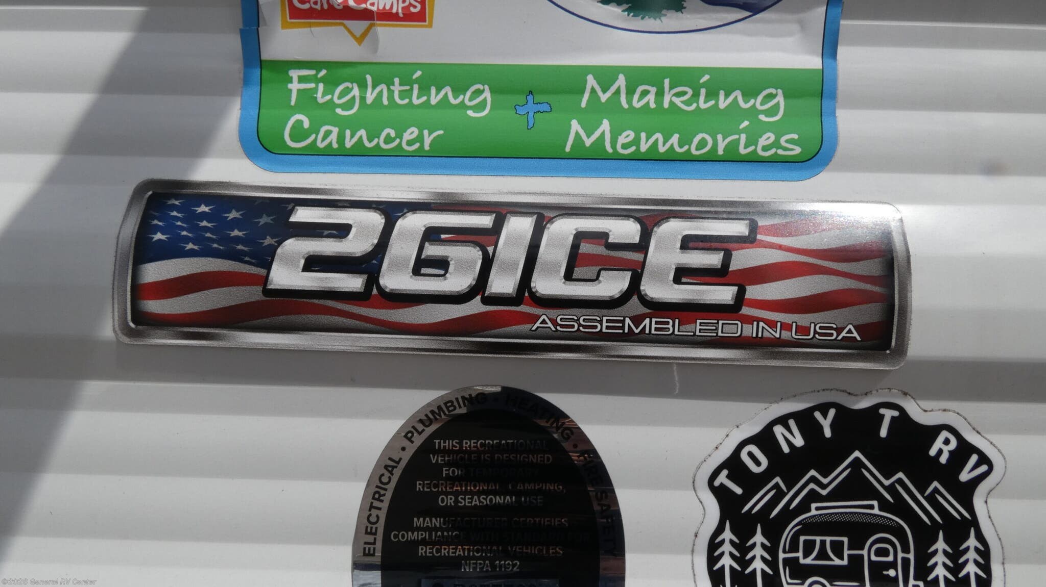 Forest River Salem Cruise Lite travel trailer 26ICE highlights: Front Private Bedroom Large Slide Out Pull-Out Drawers 16' Power Awning Fireplace Pass-Through Storage You're sure to make camping memories in this spacious travel trailer! You can easily sleep eight people each night thanks to the double-size bunks, the custom king bed with Versa Tilt in the front bedroom plus the Versa-Lounge within the large slide out! The three burner cooktop and microwave oven will let you make meals each day, and you'll appreciate the hidden pantry with shelves behind the fireplace. There is also a booth dinette where you can dine together or play a game of cards after dinner is cleaned up, or you may just find yourselves outdoors under the 16' power awning with LED lights. And don't overlook the full bath, complete with a tub/shower that will make bath time easier if you have little ones. Each one of these Forest River Salem Cruise Lite travel trailers offer quality and value with a full list of great features! They are built with a Dicor PVC roof membrane, a powder coated I-beam frame, a cambered chassis, and a triple seal slide system. The aerodynamic front radius profile makes it easier to tow these units, and the diamond plate rock guard will keep your unit protected while traveling down the road. Some of the new features you will enjoy are the upgraded shower head and upgraded high-rise spring kitchen faucet, the 60K tankless water heater, upgraded slide out fascia, and more!