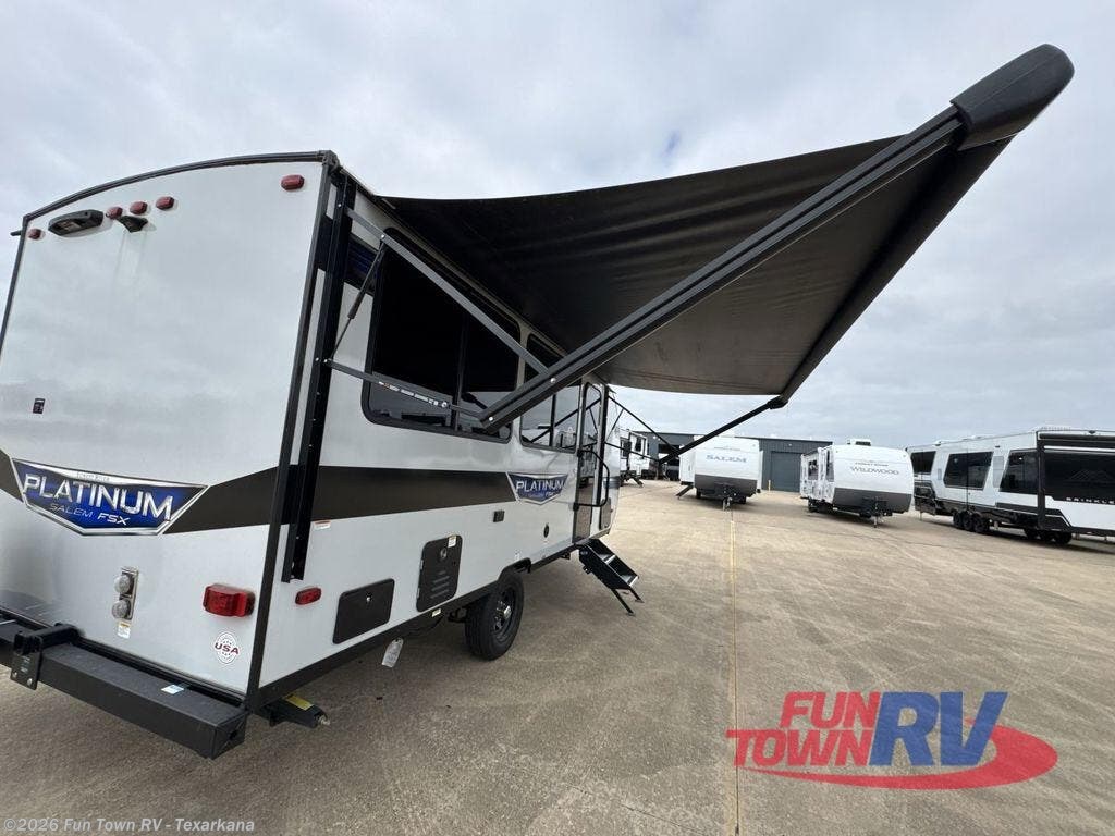 The Forest River Salem FSX travel trailers and toy hauler travel trailers are ultra comfortable and lightweight, perfect for first time or seasoned campers alike! You will love how easy it will be to relax with residential features that will make your space feel just like home, and the durable construction means you can enjoy your RV for years to come. There are a wide variety of floorplans to choose from, including couple's trailers, bunk models, and toy haulers, all with full bath and kitchen amenities and plenty of storage for all your gear!