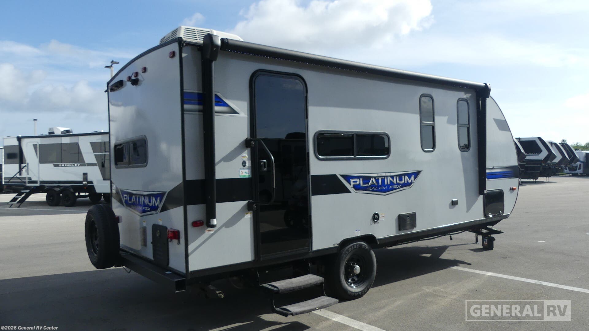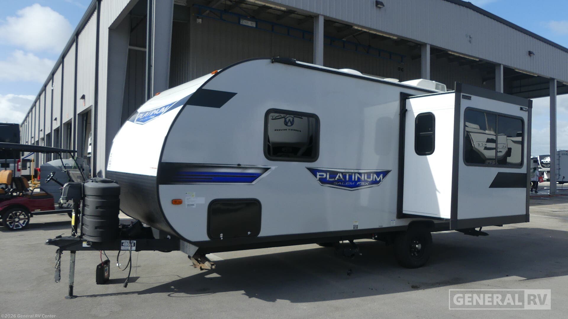 Forest River Salem FSX Platinum travel trailer 163RDSKX highlights: Walk-Through Bath Front Private Bedroom Single Slide Out Outside Kitchen Kitchen Skylight You're going to love every minute spent in this couple's trailer. The queen bed in the front private bedroom will provide a great night's rest, and there are dual wardrobes to easily get dressed in the morning. Head to the kitchen through the bath, then prepare eggs and bacon on the two burner cooktop. There is theater seating here to enjoy your coffee at each morning, or you may want to get some work done at the mobile workstation! The Forest River Salem FSX travel trailers and toy hauler travel trailers are ultra comfortable and lightweight, perfect for first time or seasoned campers alike! You will love how easy it will be to relax with residential features that will make your space feel just like home, and the durable construction means you can enjoy your RV for years to come. There are a wide variety of floorplans to choose from, including couple's trailers, bunk models, and toy haulers, all with full bath and kitchen amenities and plenty of storage for all your gear!