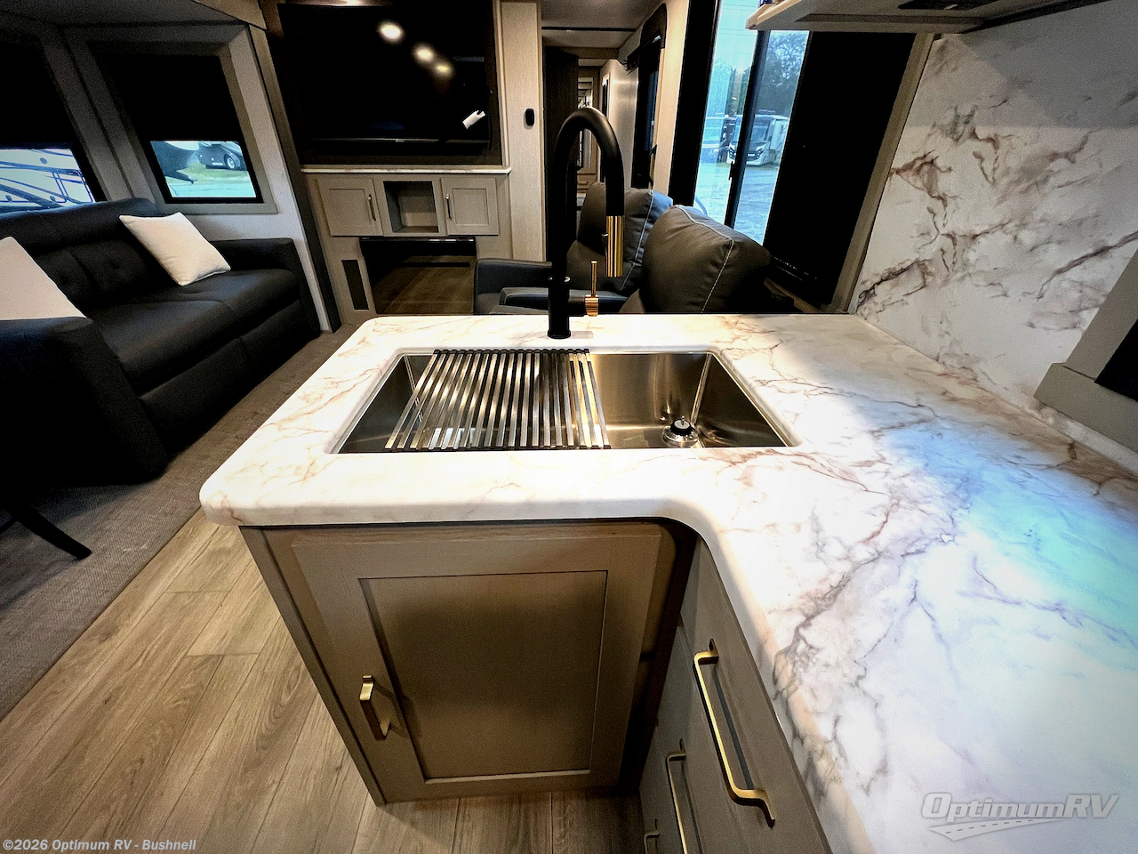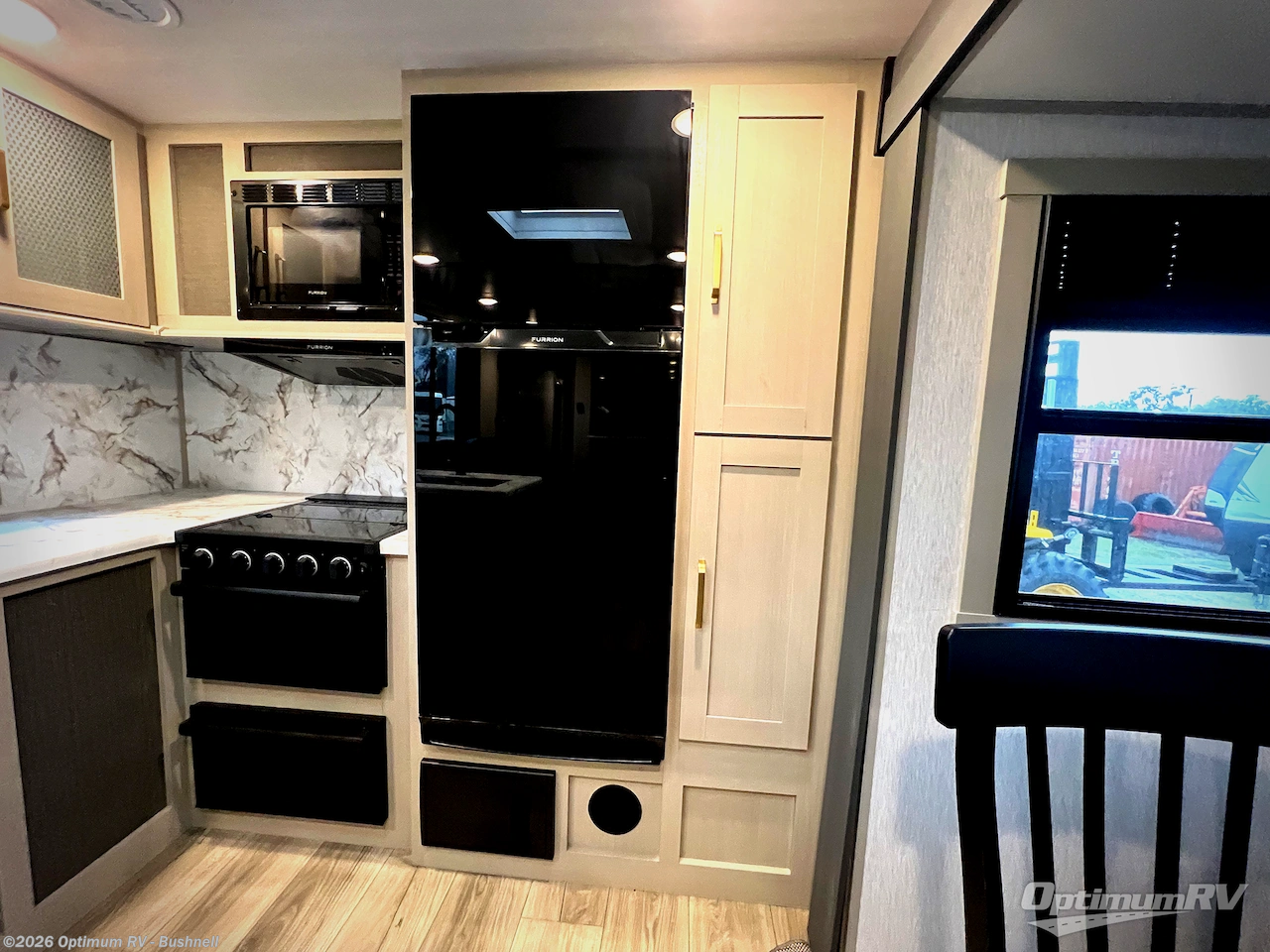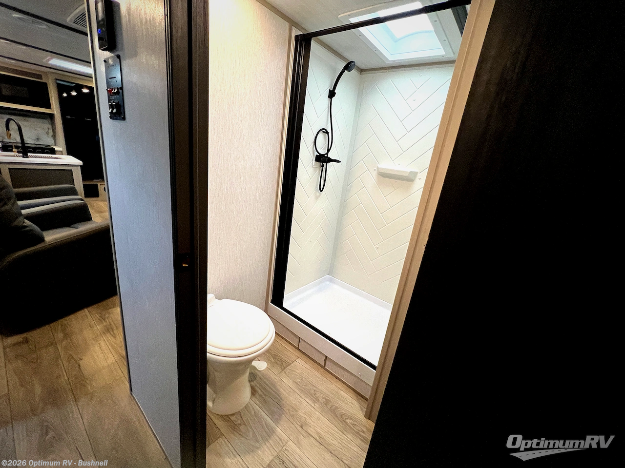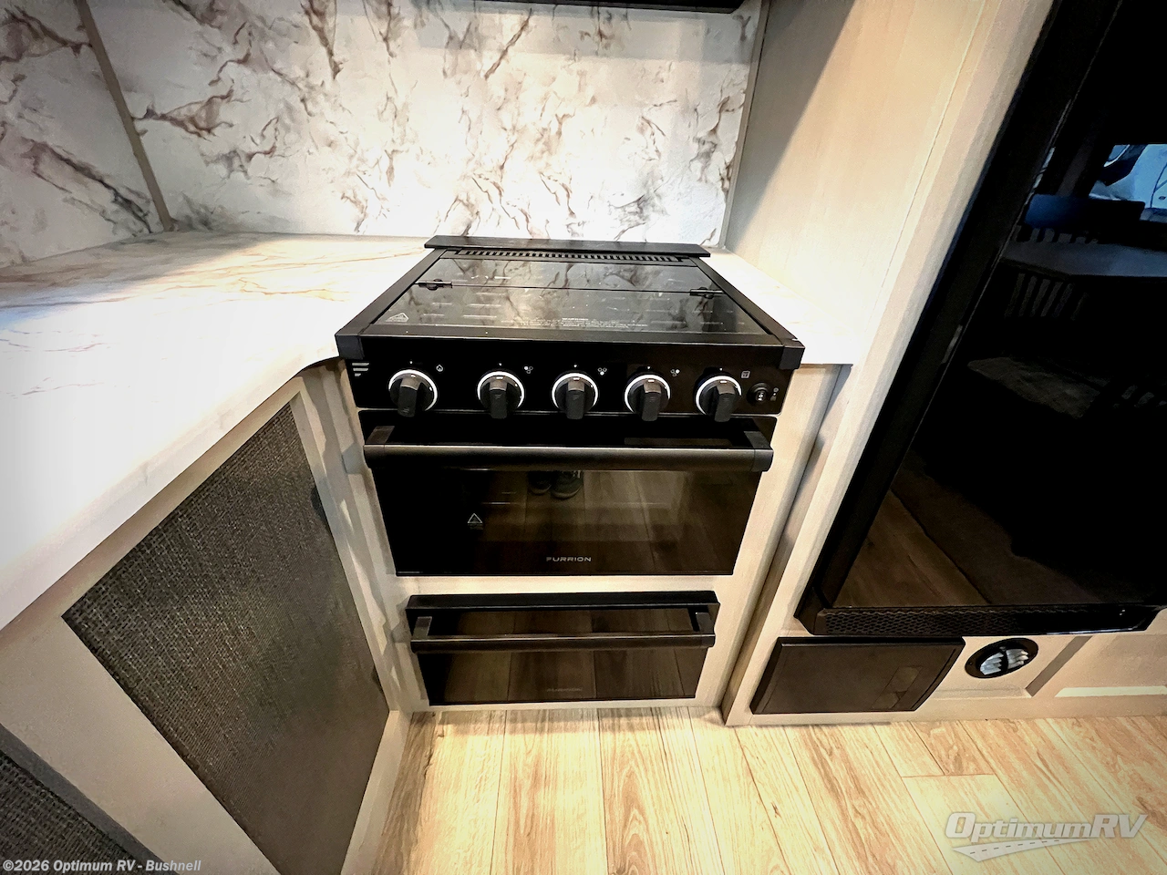 When you need to get away to the great outdoors, you won't be leaving creature comforts at home with this trailer in tow! Once you arrive at your campsite, set up the power awning, then make lunch on the exterior griddle with a refrigerator. After you've went on a hike to stretch your legs, you can get cleaned up in the full bath instead of using the camp's facilities. There is a rear kitchen with ample counter space, a three burner cooktop, plus a pantry and a 12V refrigerator for food. Your crew can get comfortable on the tri-fold sofa, booth dinette, or the two lounge chairs and watch a movie on the 40" LED TV. This model also includes a closet with washer and dryer prep to make full time RV living easier than ever!