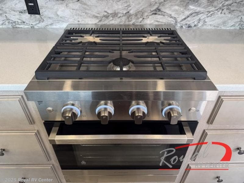 Weekend camping trips and full-time RV living is made complete in this quad slide out fifth wheel. Your crew can relax under the 15' electric awning, or head inside to enjoy the fireplace. There is also a 50" flat screen TV across from the theater seating, plus a free-standing dinette to dine at. There are two full baths with the front bath including a walk-in shower with a seat for your comfort, and the front private bedroom will feel just like home with its queen bed and large front wardrobe. There is even washer and dryer prep to make laundry day easier than ever. The master bedroom in back includes a second queen bed slide out, and the rear full bath has another convenience with it's exterior entry door, and