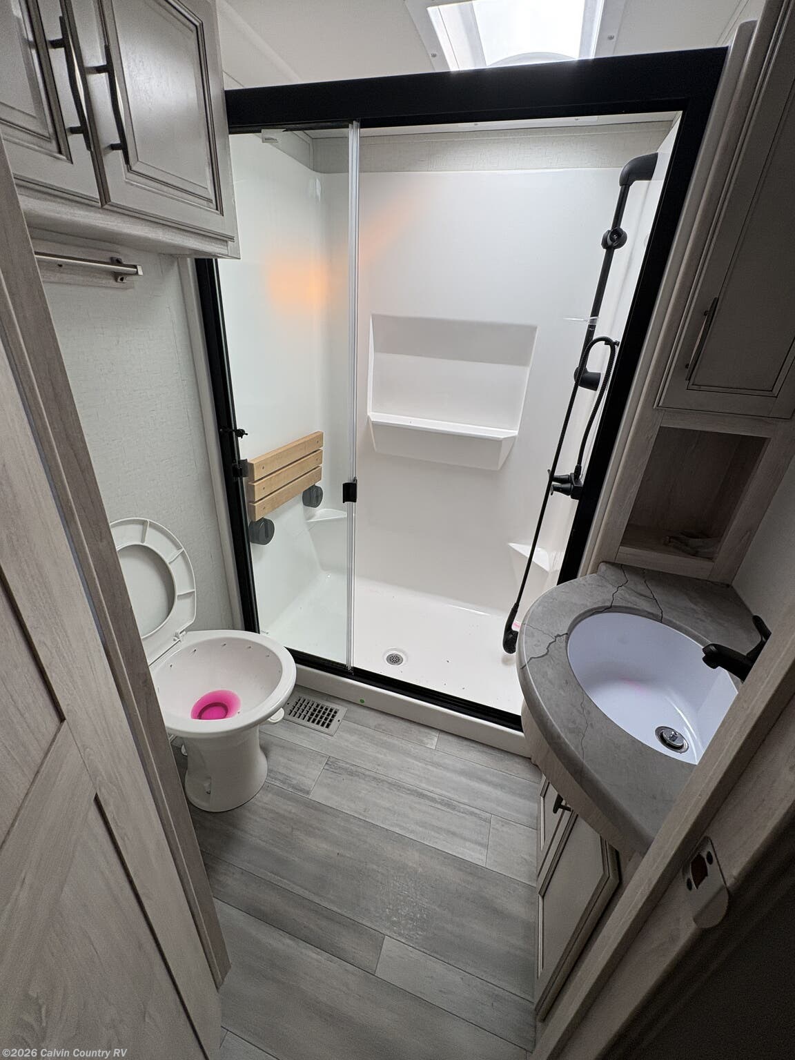 Ceiling Fan, Dinette, Hide-A-Bed, Kitchen Sink, Shower, Solid Surface Countertops, Theater Seating, Toilet -