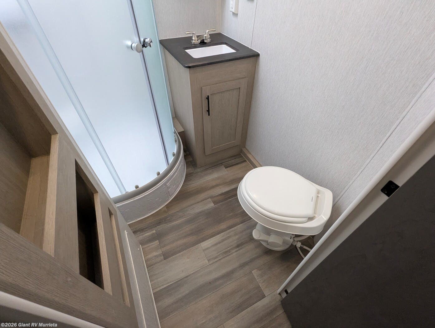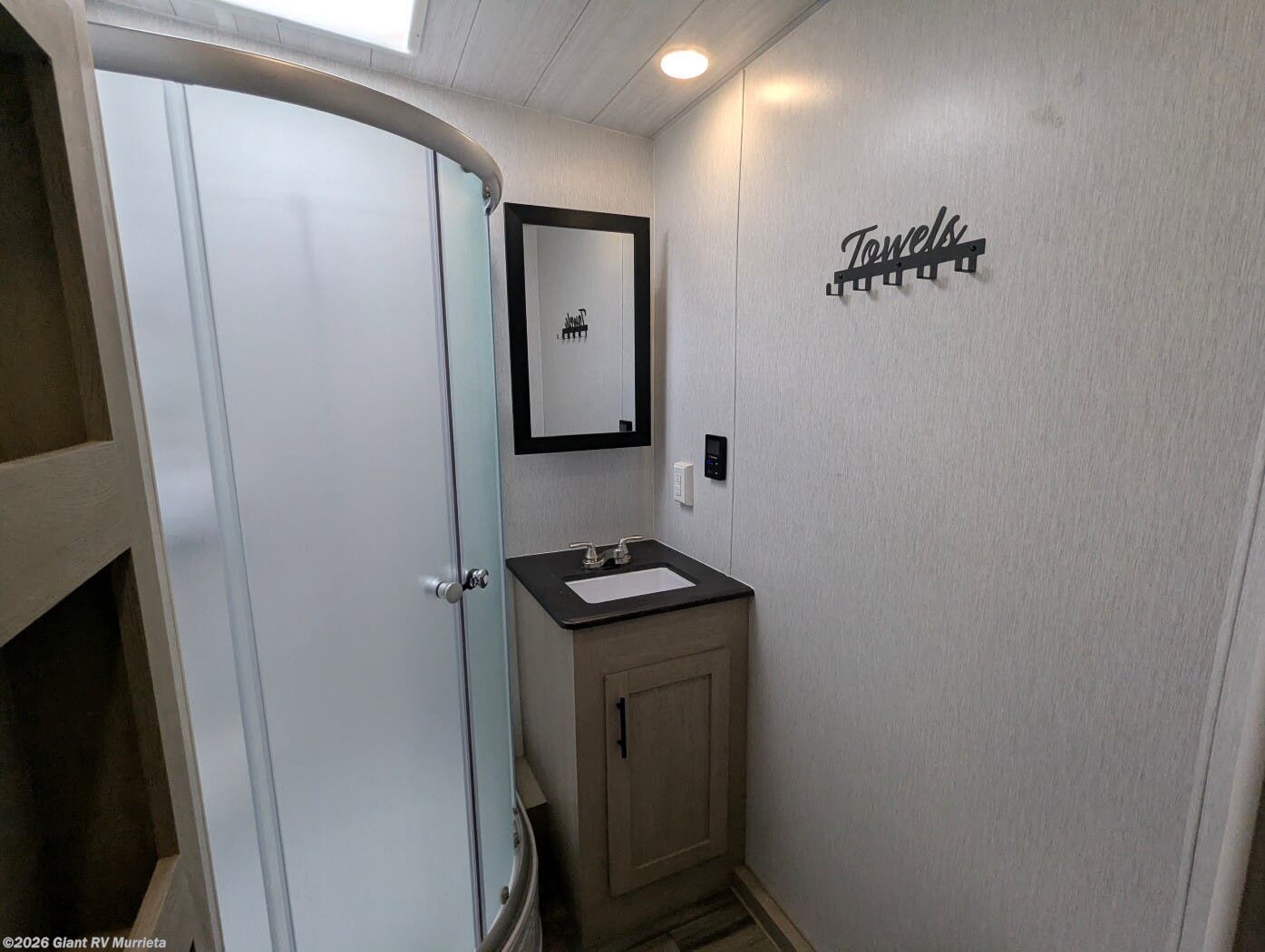 - Private Sleeping & Bath with a comfortable queen bed up front, wardrobe storage, and a full bathroom for everyday convenience on the road.