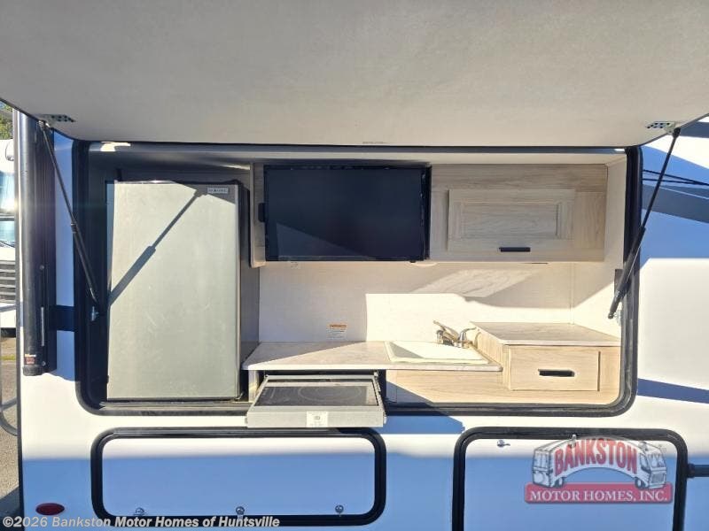 Grab your sunhat and your adventurous spirit and head out with this Sunseeker Classic Class C gas motorhome! There is a rear private bedroom to change your clothes and sleep soundly, and the RV queen bed slide adds more space to this area. The split-style bathroom has a 24" x 36" shower on one side of the coach while the lavatory and vanity stay secluded on the other side. If you don't need the extra sleeping space from the bunk over the cab, you can choose to add the optional Trekker cap with a built-in entertainment center and storage in its place. Sit back with a big bowl of cereal at the booth dinette, or get a little more comfortable on the sofa. You can also go outside to prepare some heartier food at the outdoor kitchen.