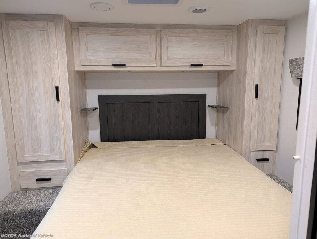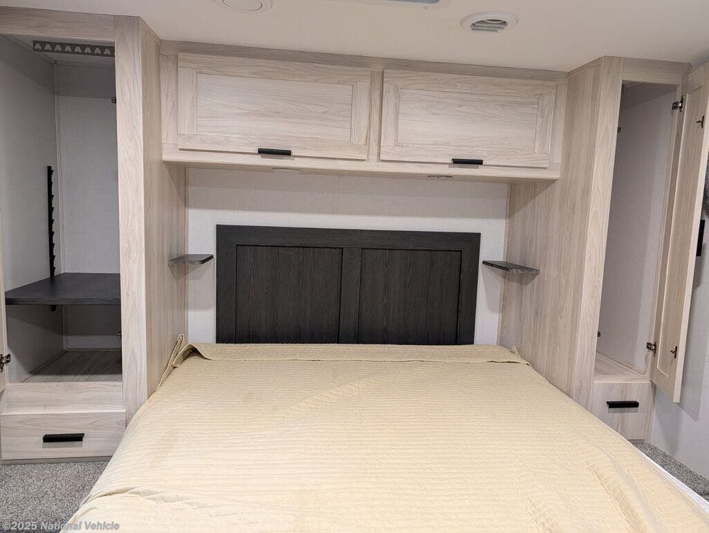The cab-over bunk adds even more room for guests or extra storage, making this coach perfect for couples, families, or full-time travelers.